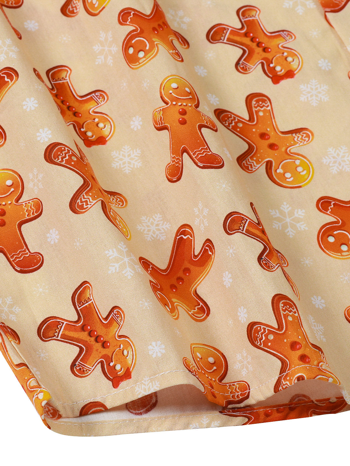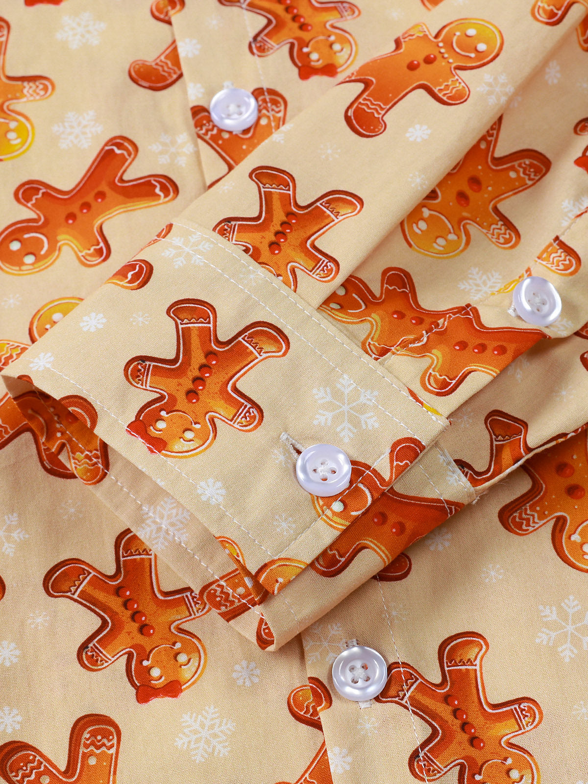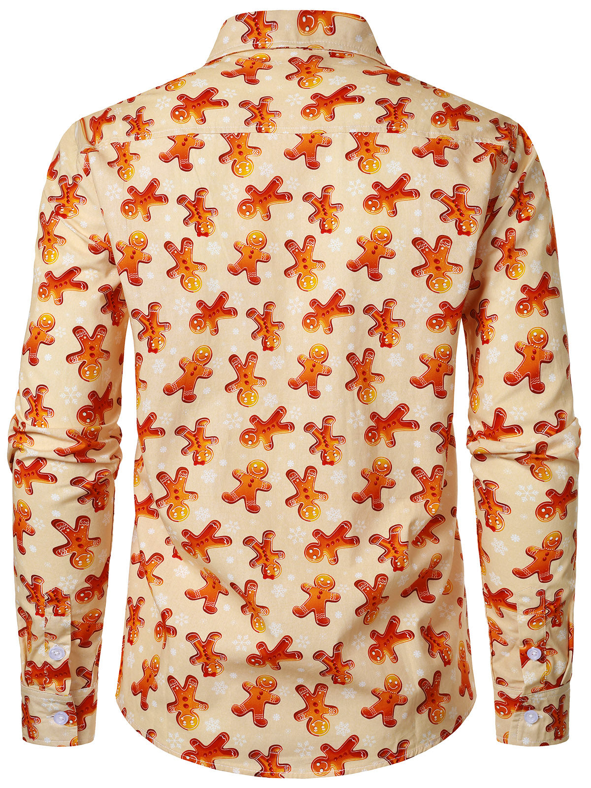 Men's Cotton Christmas Gingerbread Man Long Sleeve Shirt