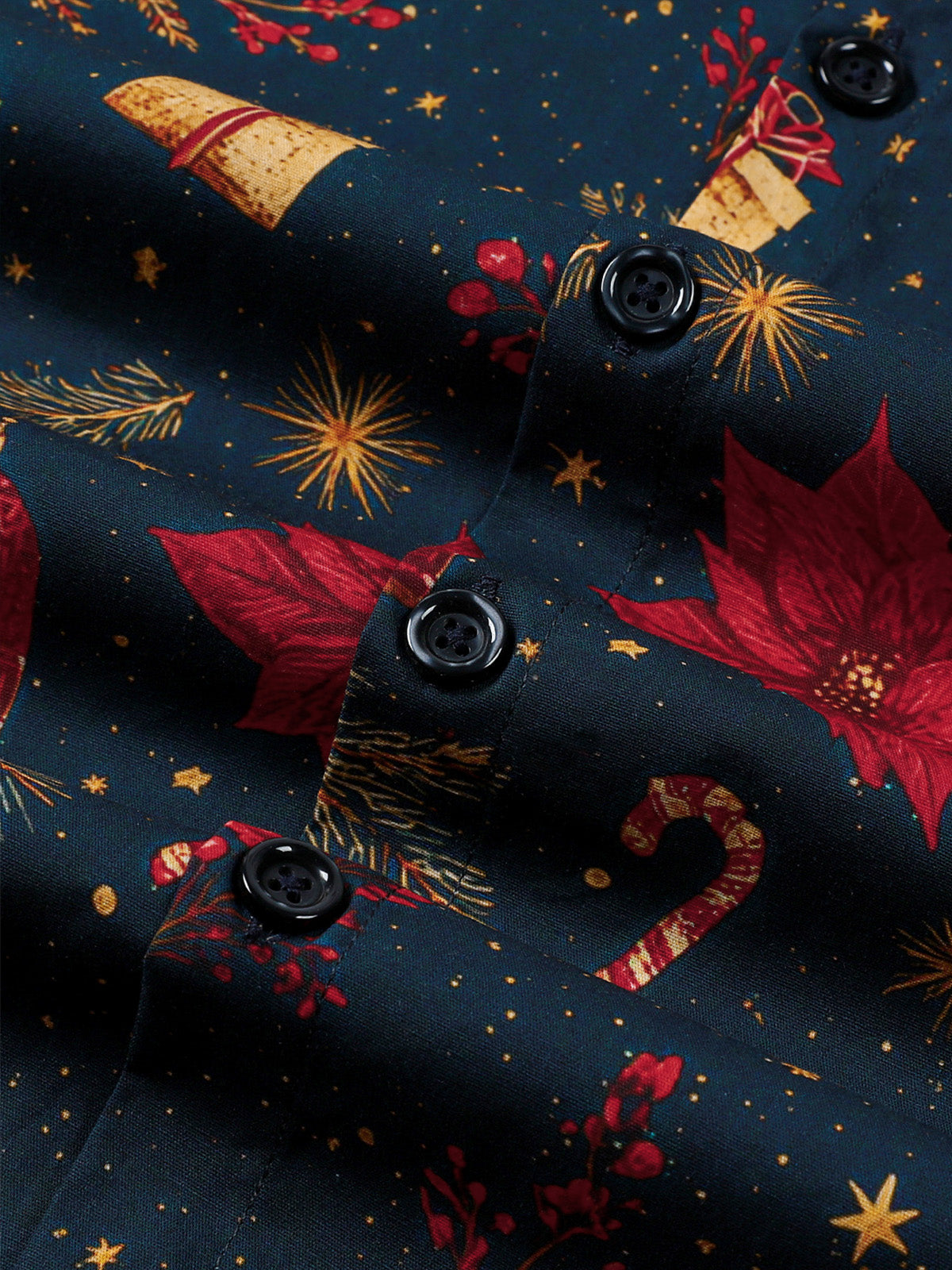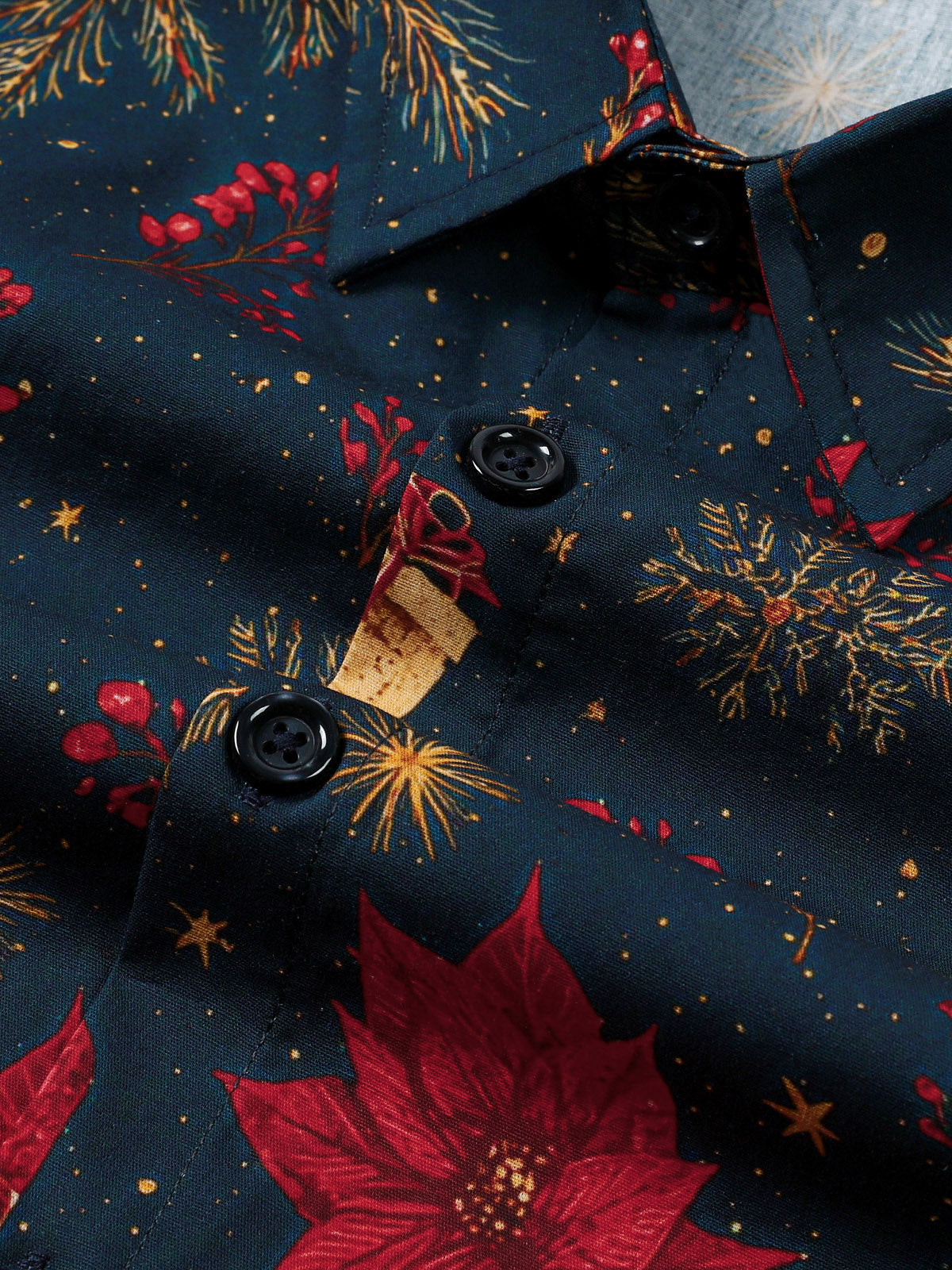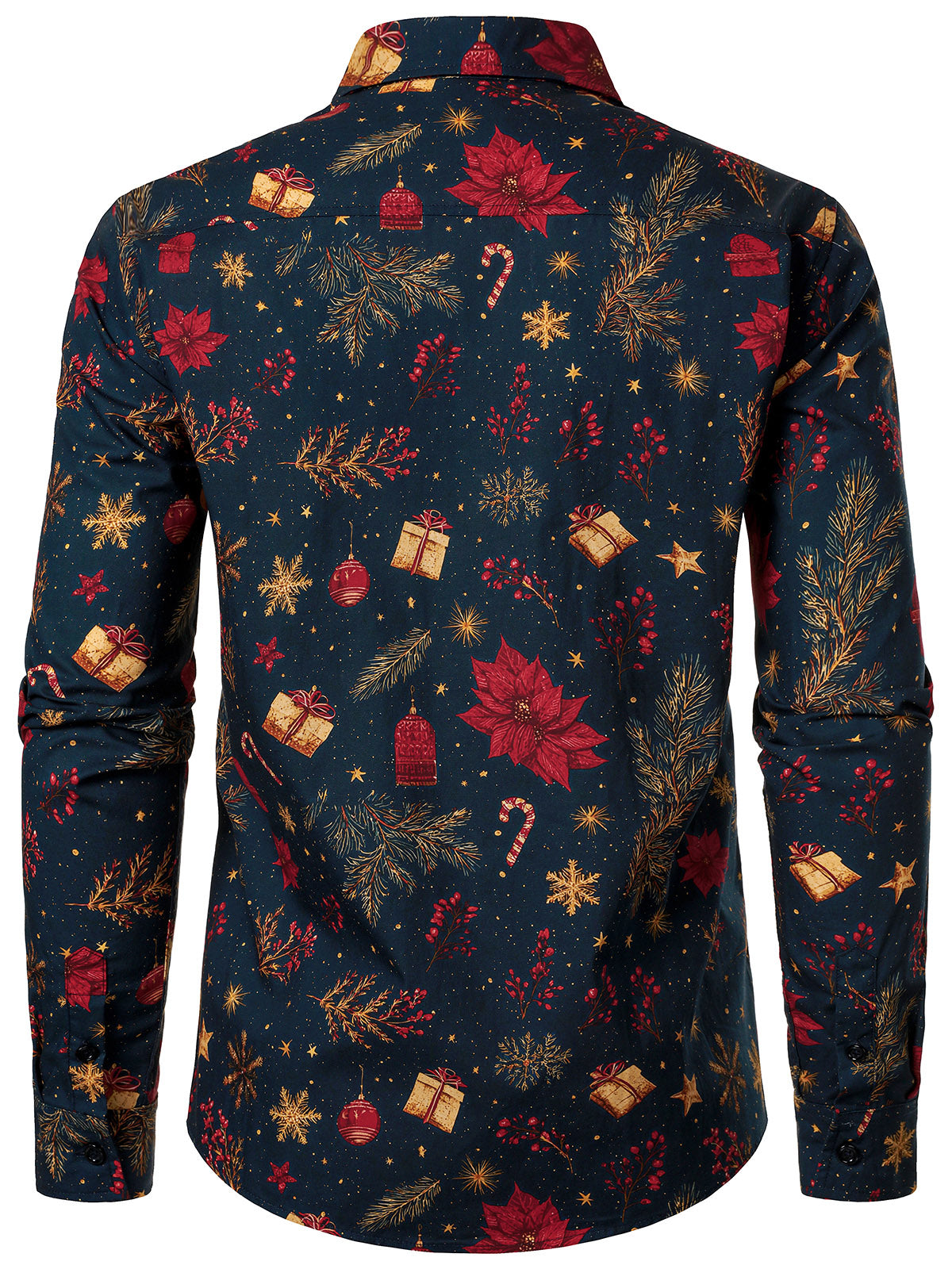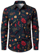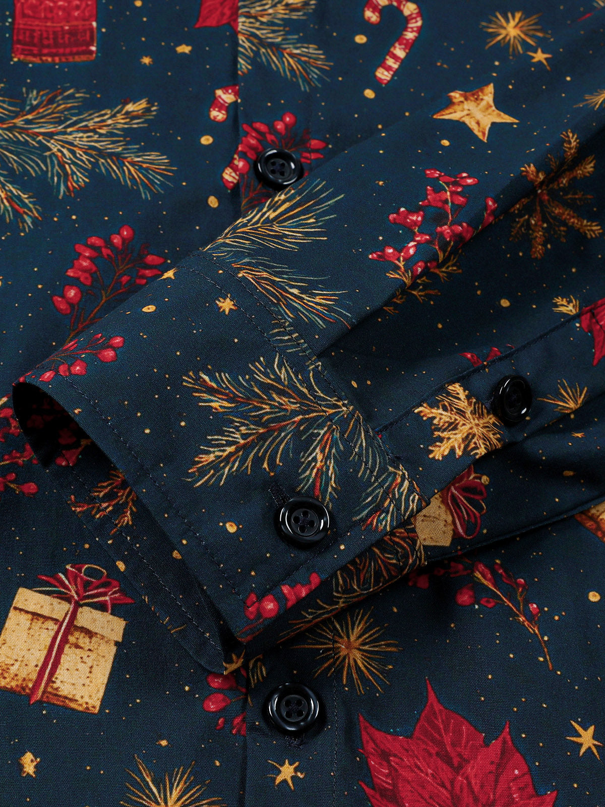 Men's Cotton Navy Blue Christmas Long Sleeve Shirt