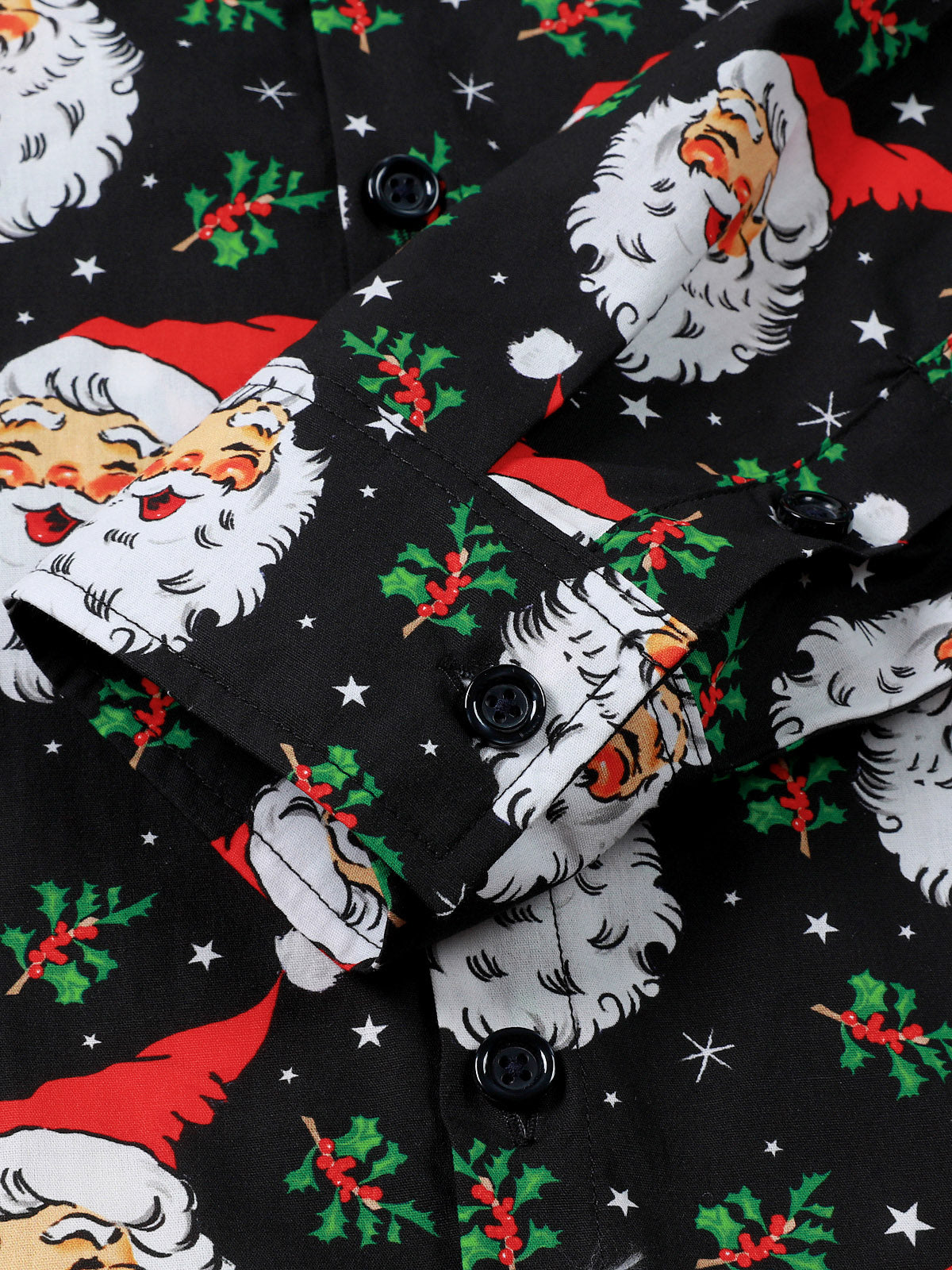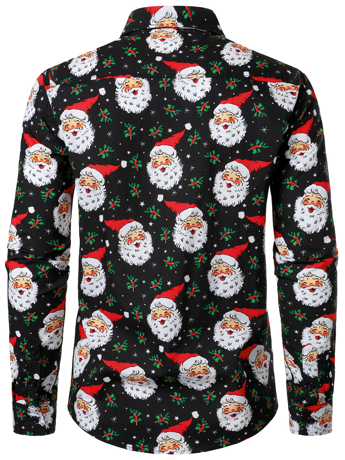 Men's Cotton Santa Claus Pattern Long Sleeve Shirt