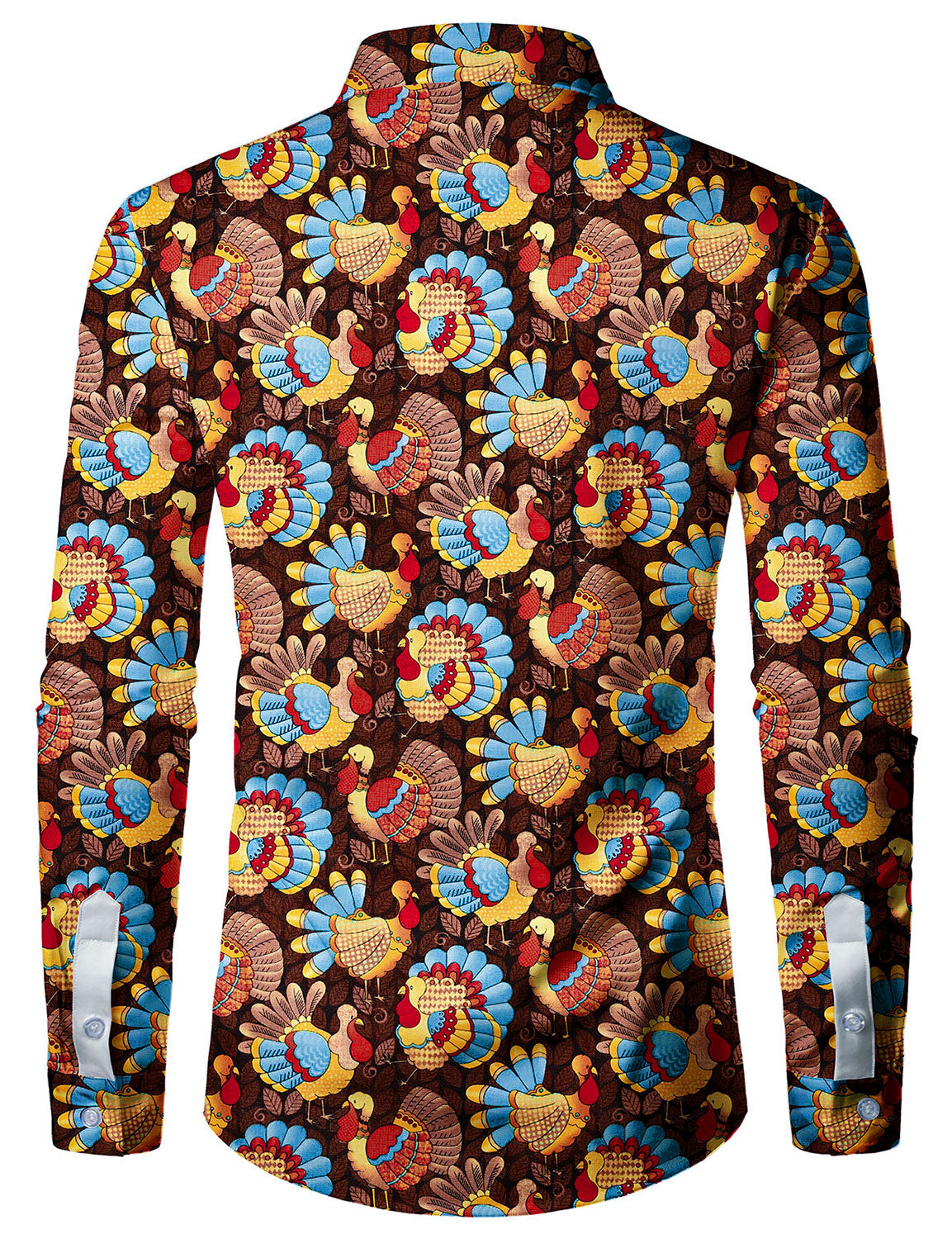 Men's Cute Turkey Thanksgiving Holiday Vintage Button Up Long Sleeve Shirt