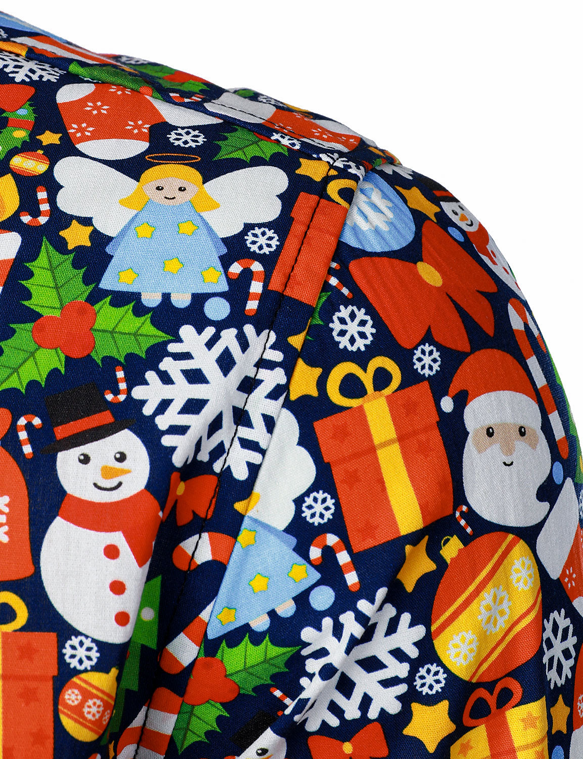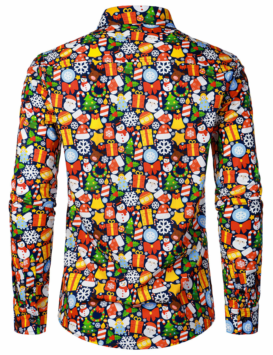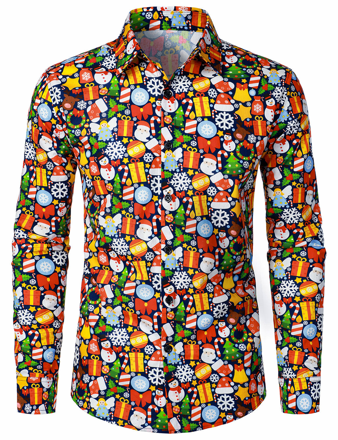 Men's Funny Christmas Santa Claus Cotton Holiday Long Sleeve Shirt