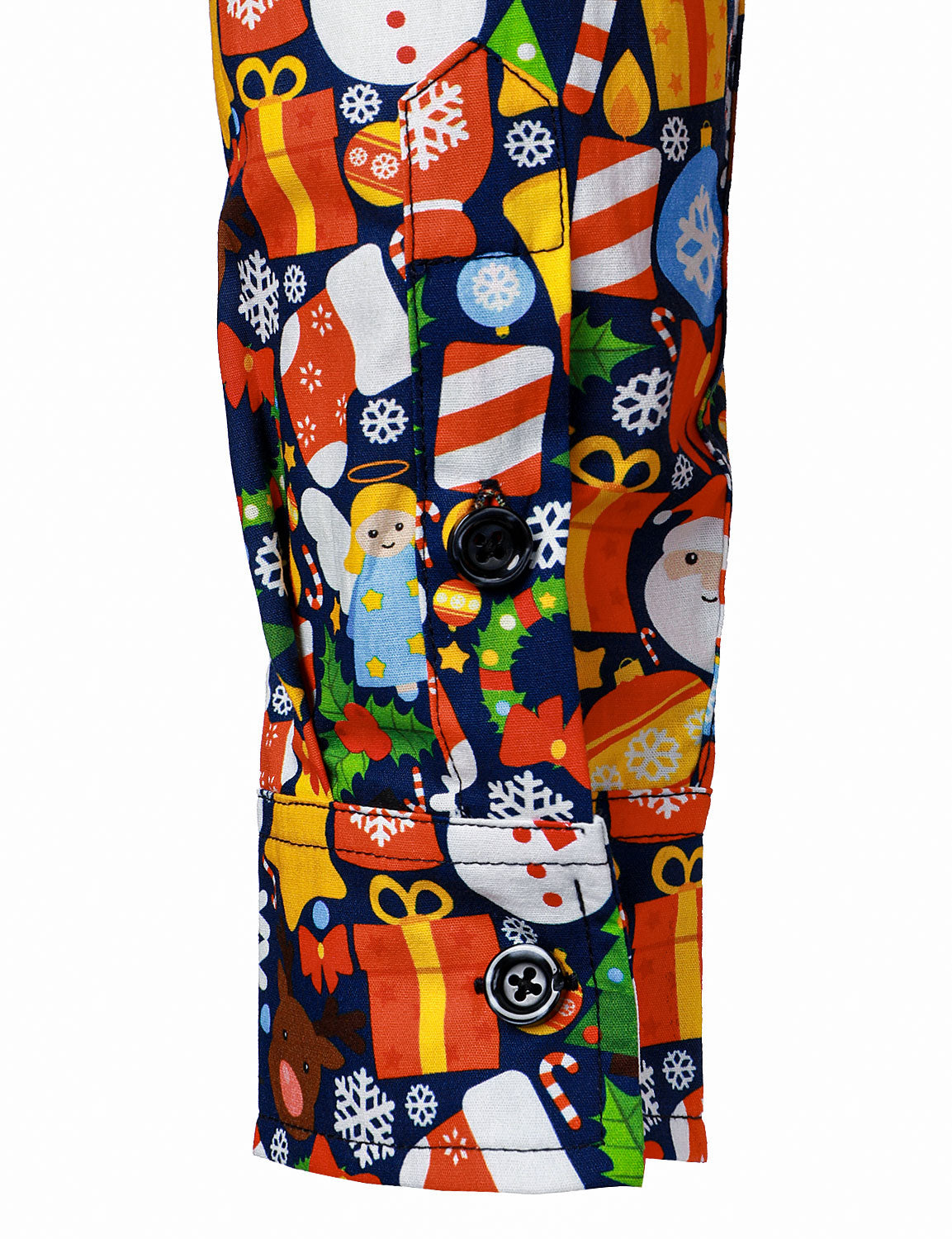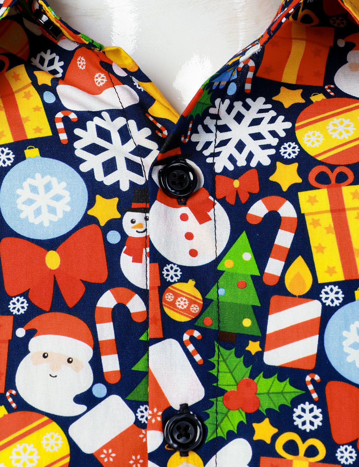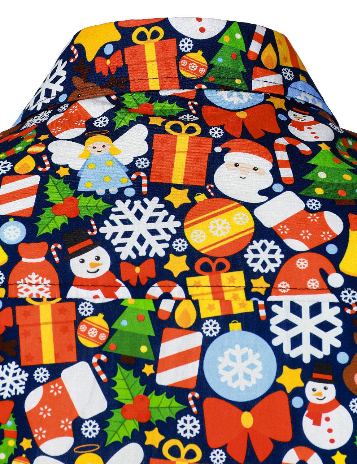 Men's Funny Christmas Santa Claus Cotton Holiday Long Sleeve Shirt