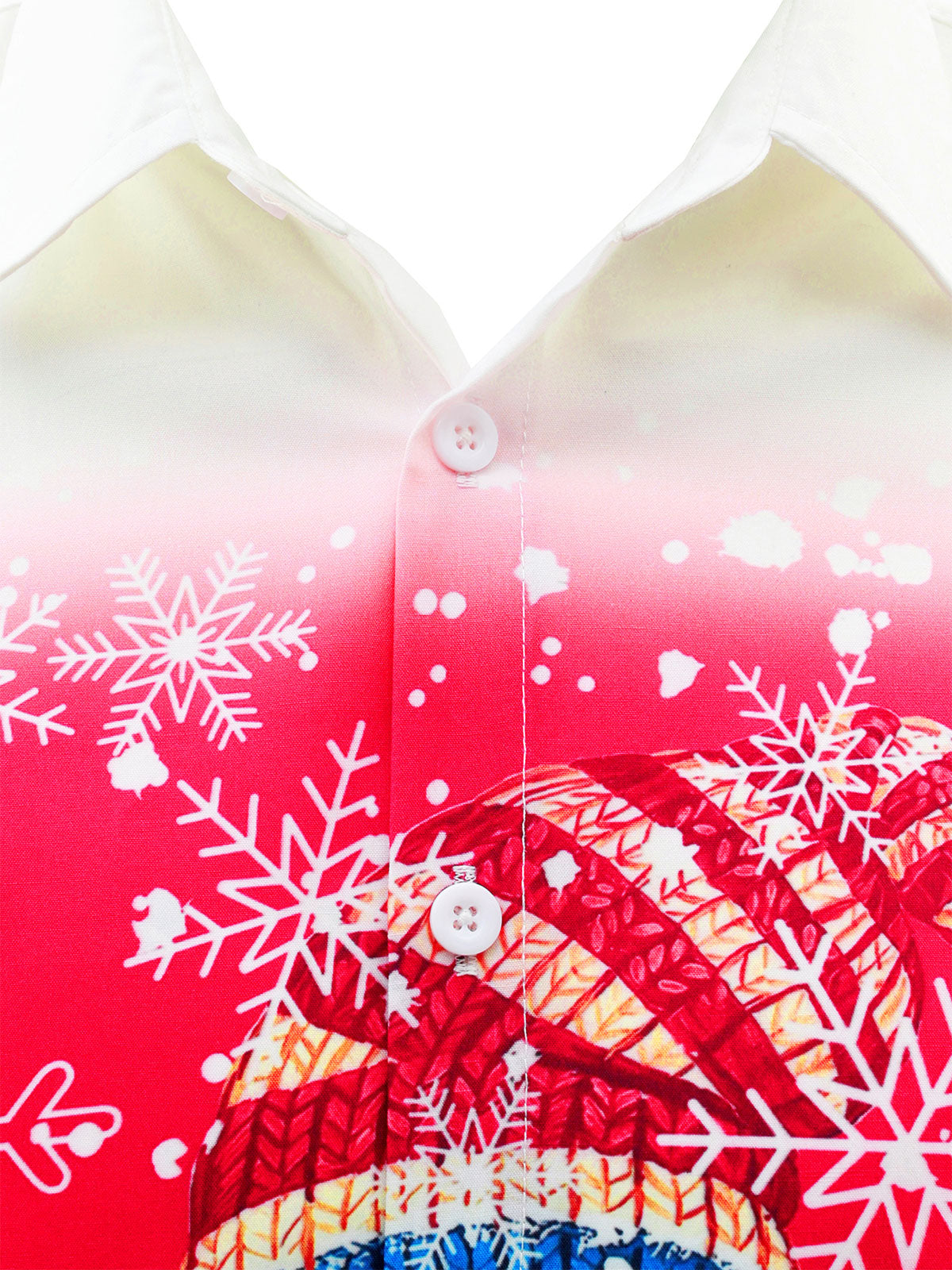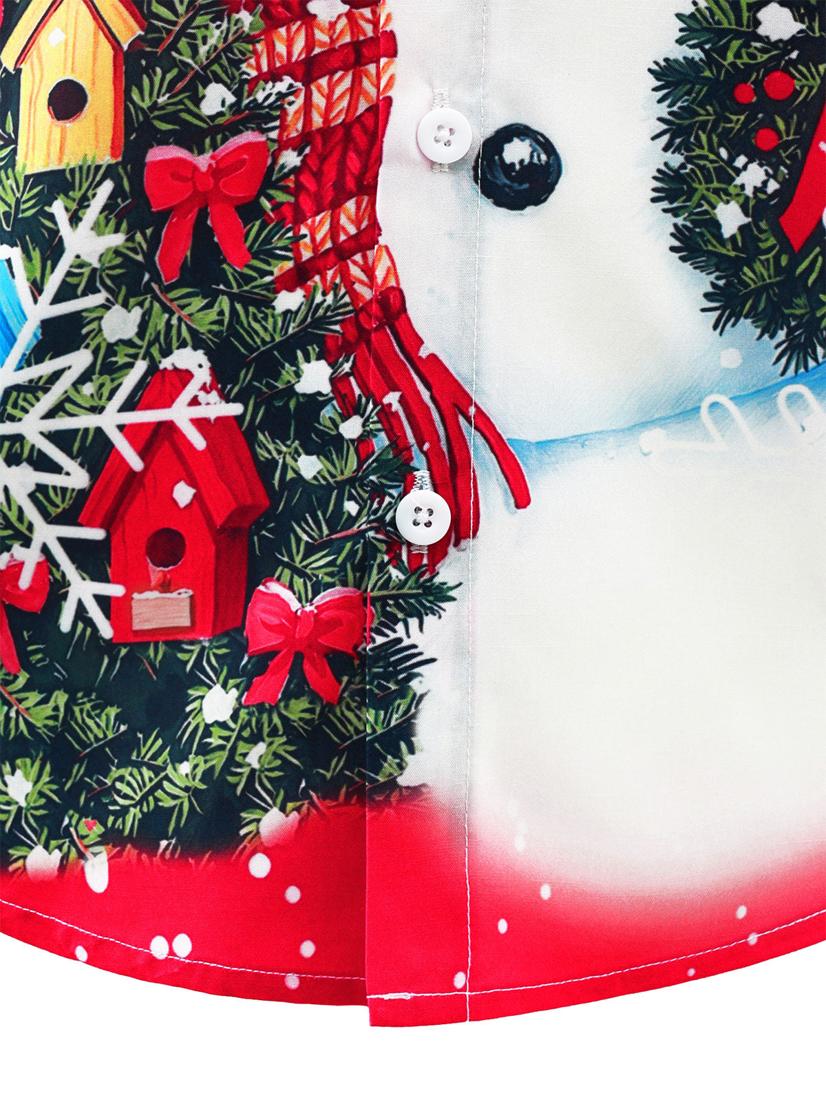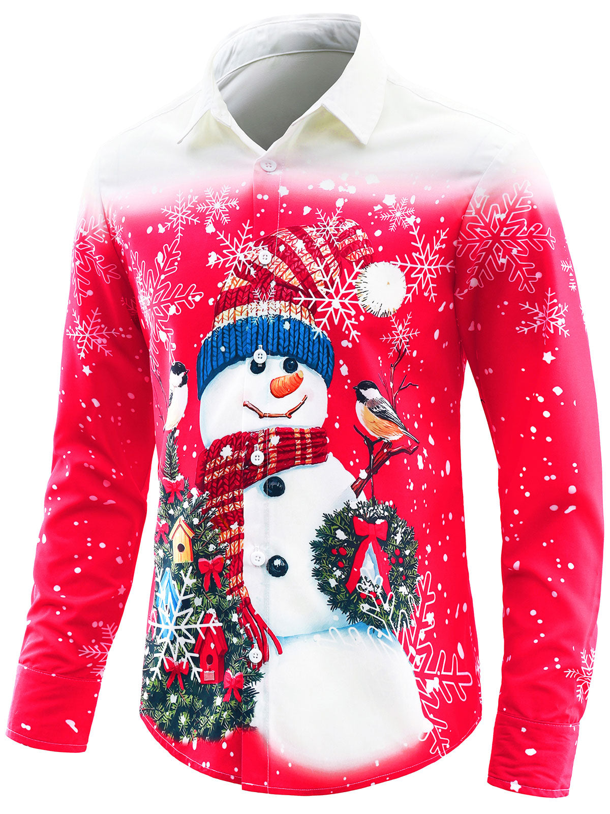 Men's Funny Snowman Christmas Holiday Button Long Sleeve Shirt