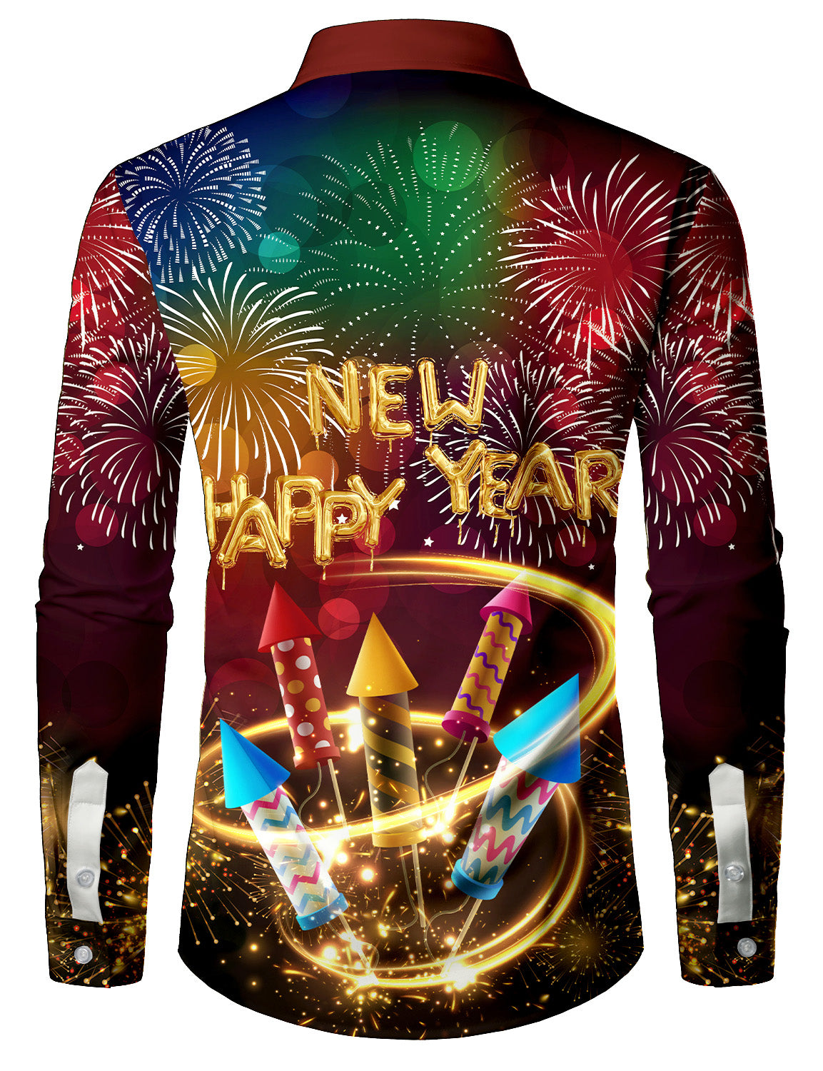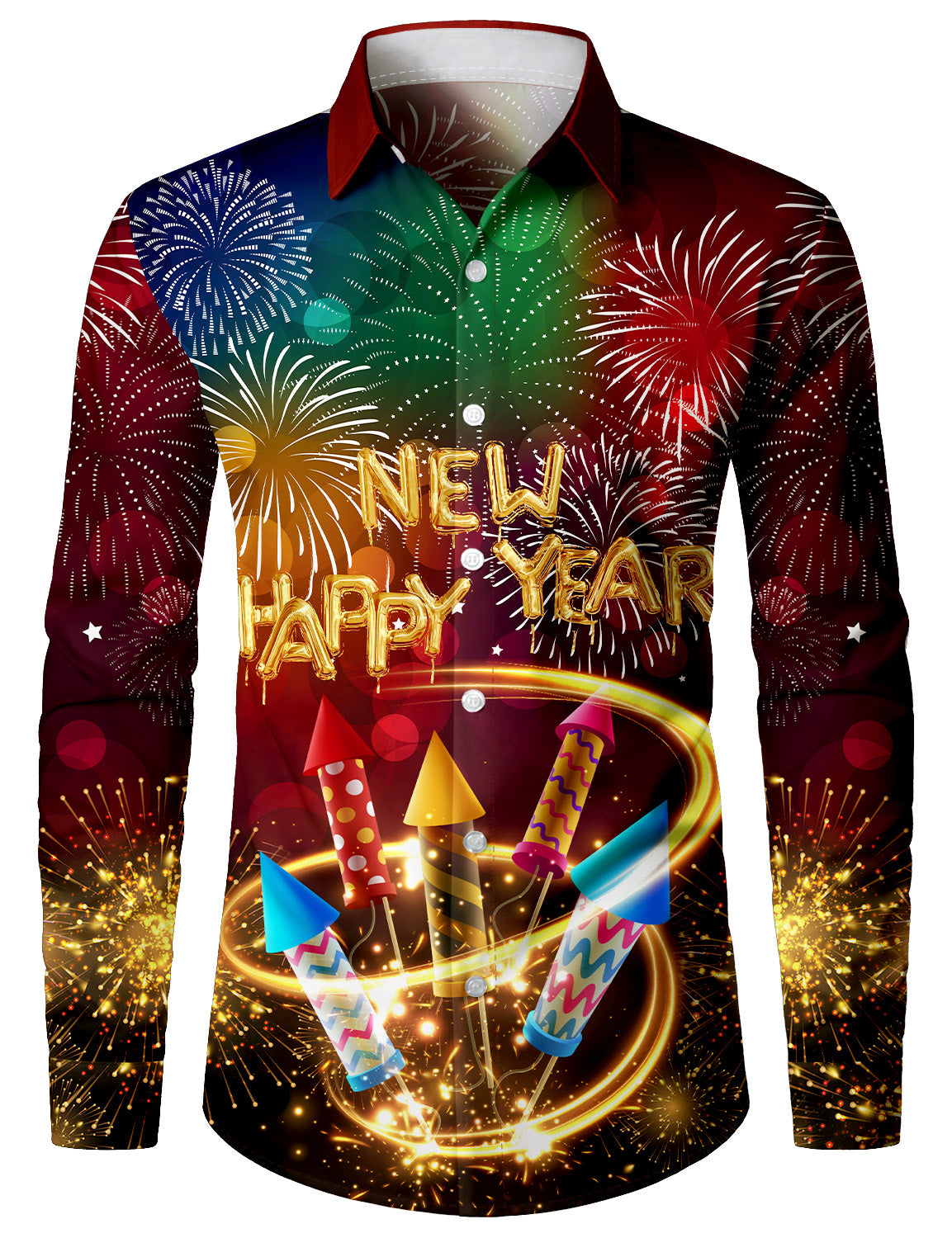Men's Holiday Happy New Year Print Button Long Sleeve Shirt