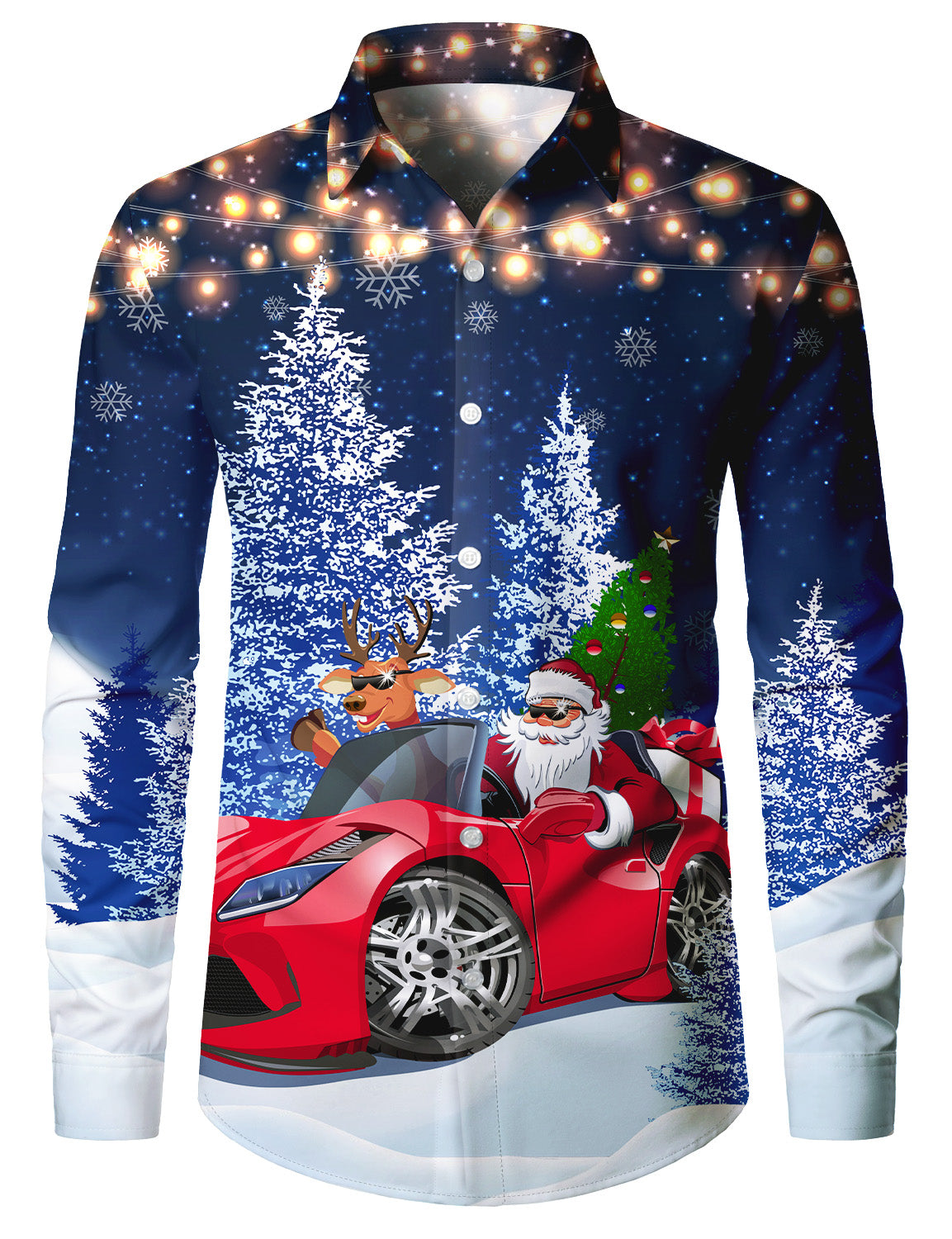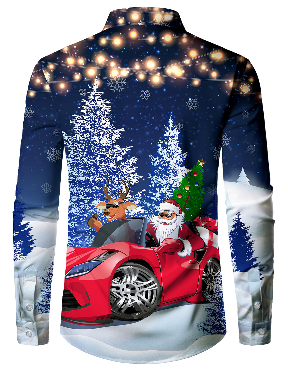 Men's Santa Claus Sports Car Cool Long Sleeve Shirt