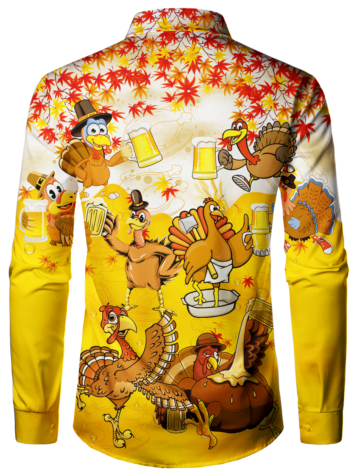 Men's Thanksgiving Beer Cute Turkey Button Up Funny Animal Maple Leaf Long Sleeve Shirt