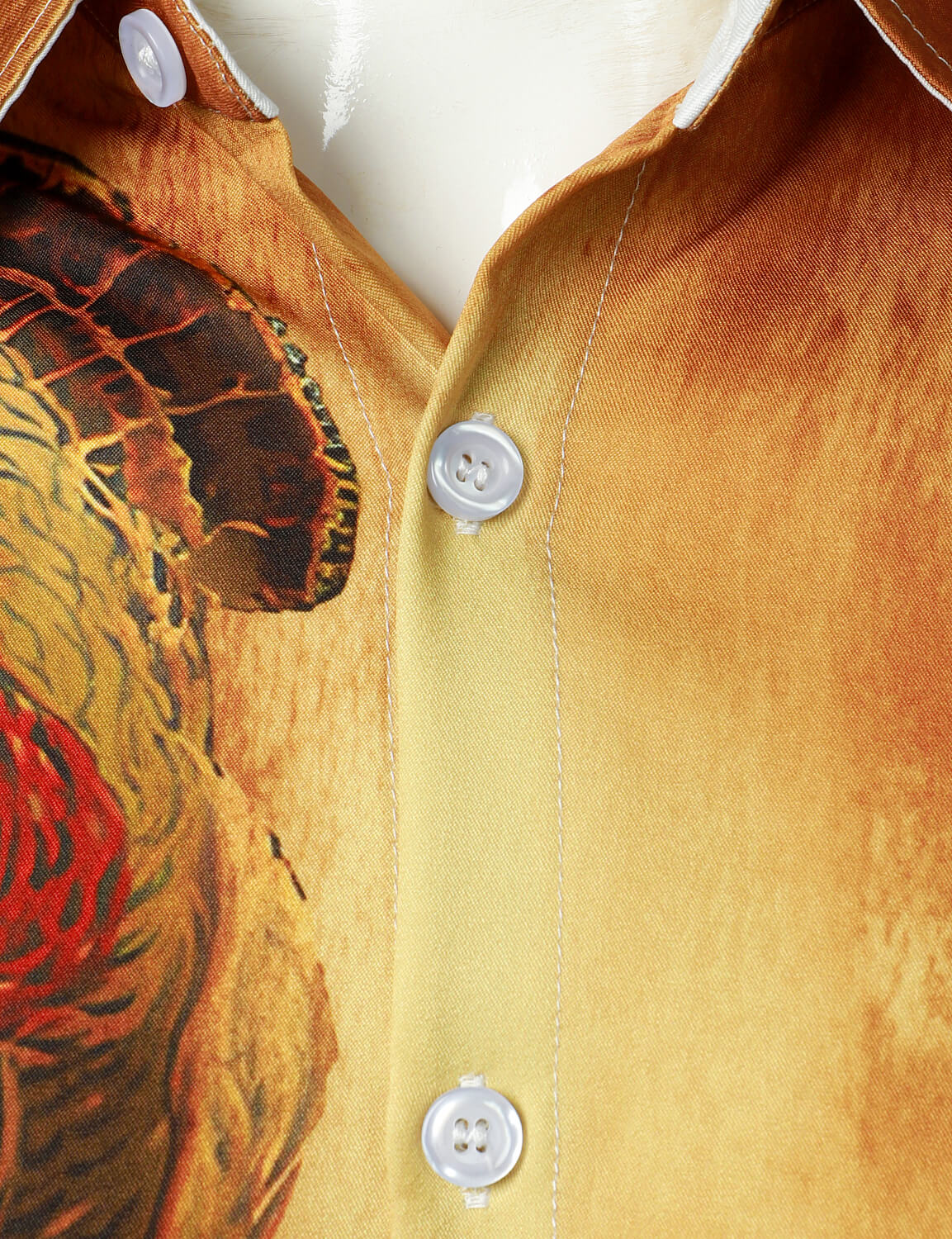 Men's Thanksgiving Funny Turkey Cartoons Print Button Cute Animal Long Sleeve Shirt