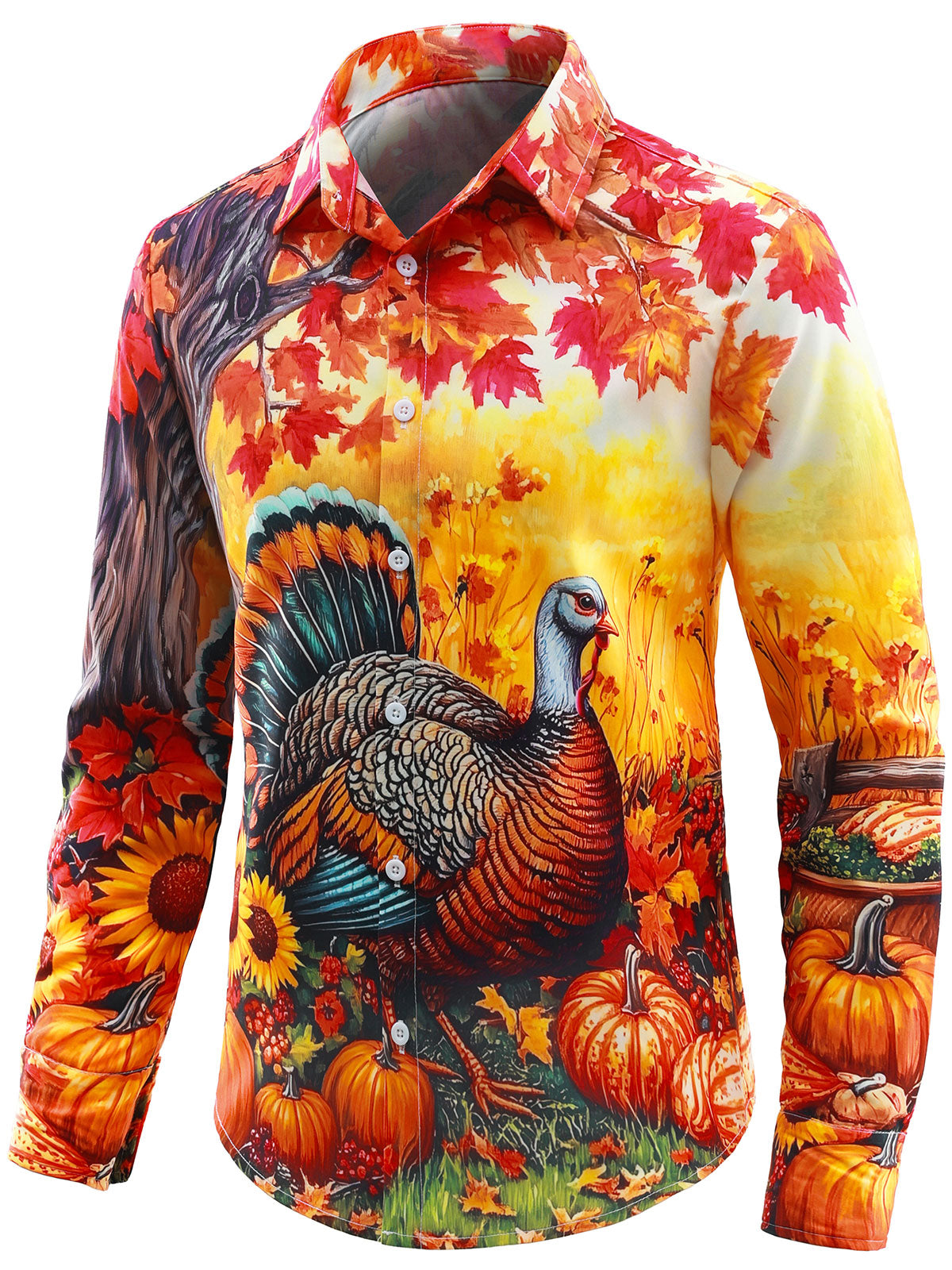 Men's Thanksgiving Pumpkin Turkey Holiday Button Long Sleeve Shirt