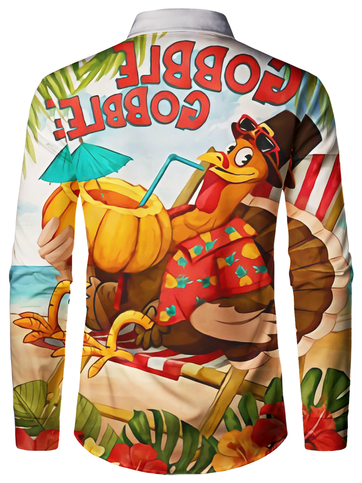 Men's Thanksgiving Turkey Button Up Cute Animal Hawaiian Thankful Vacation Long Sleeve Shirt