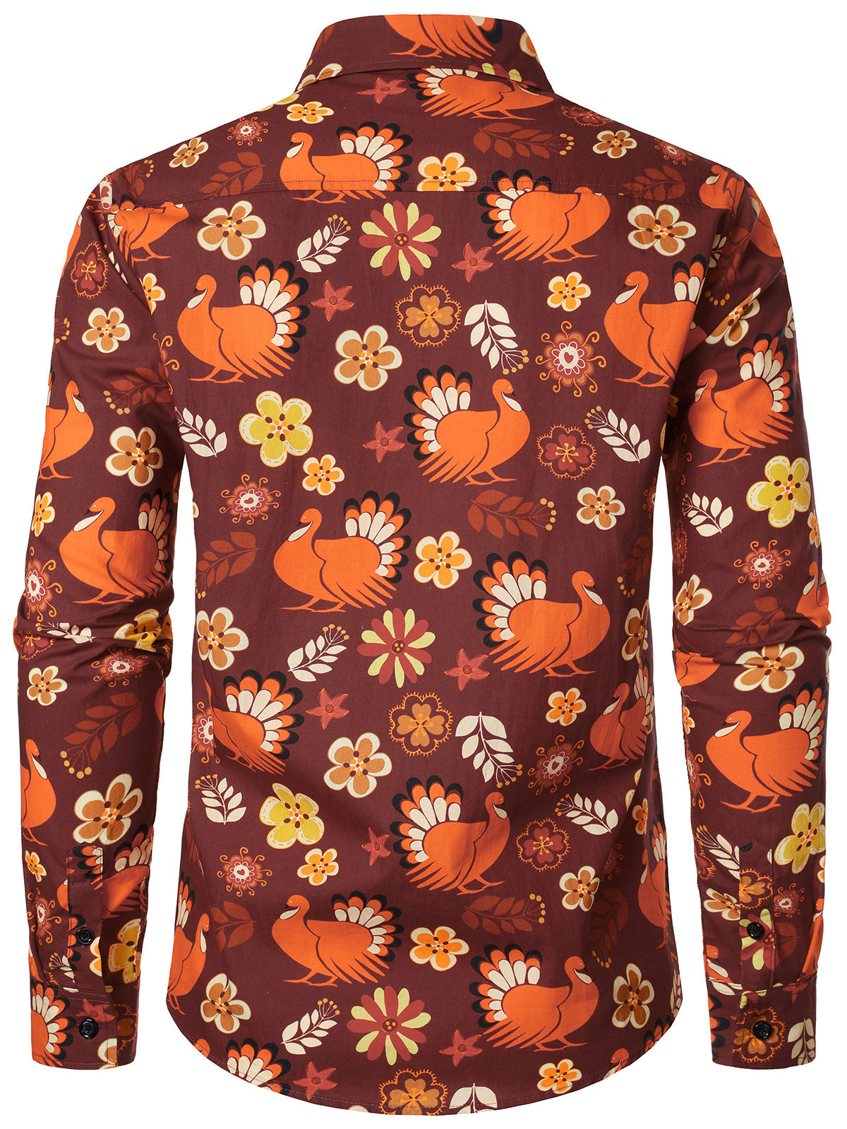 Men's Thanksgiving Turkey Funny Cotton Long Sleeve Shirt