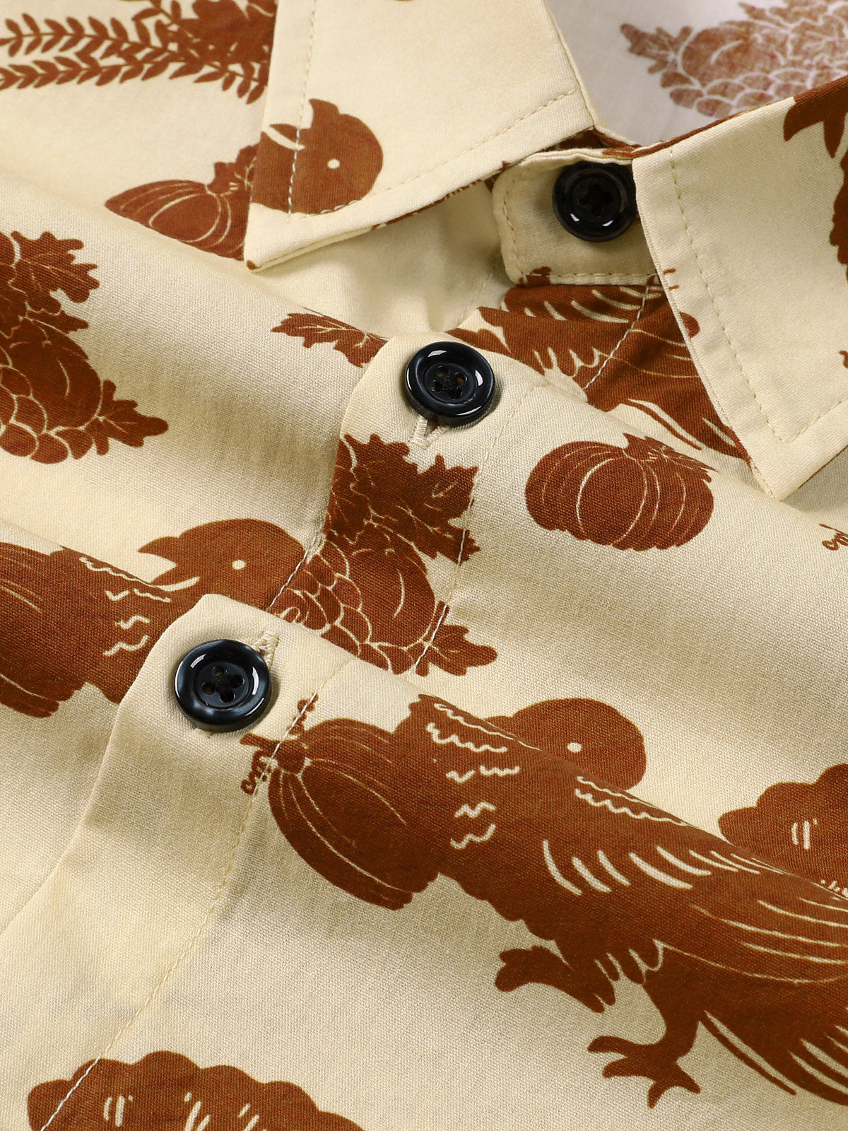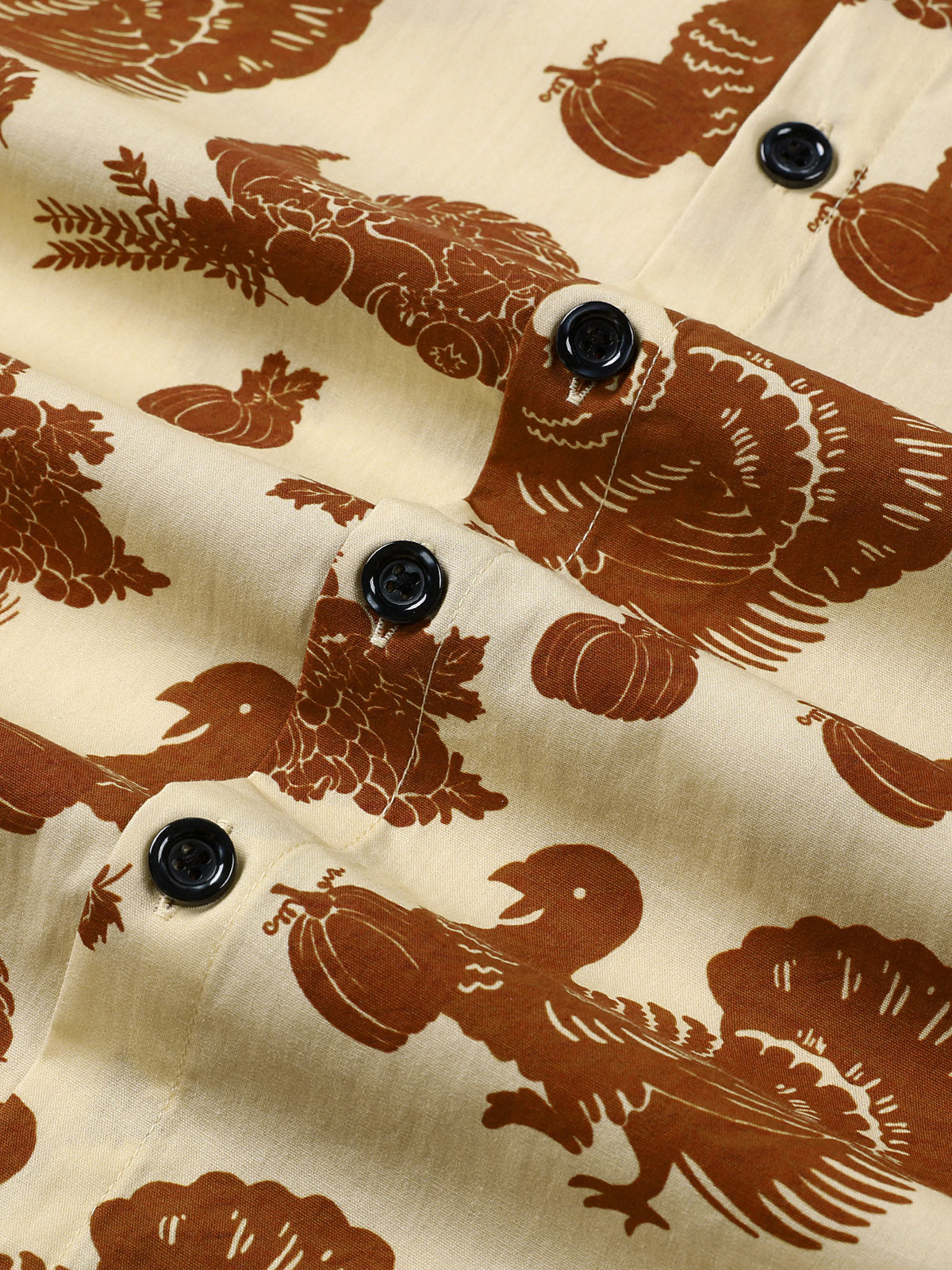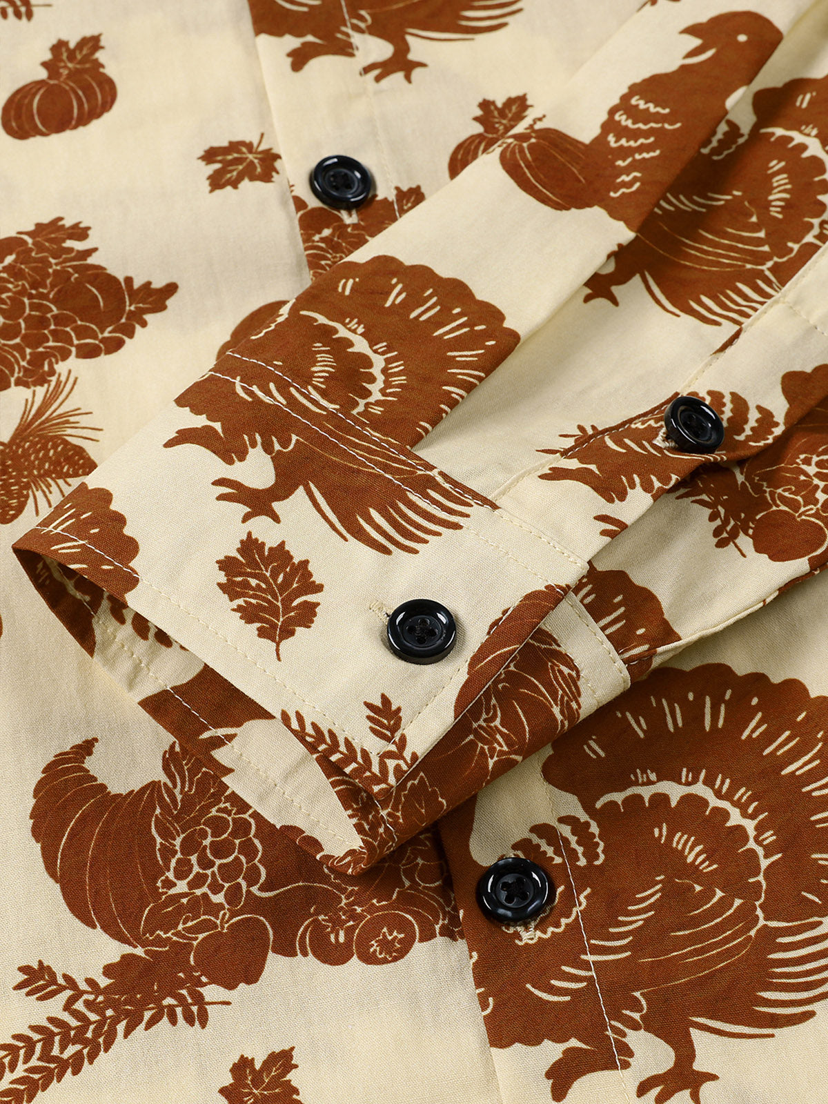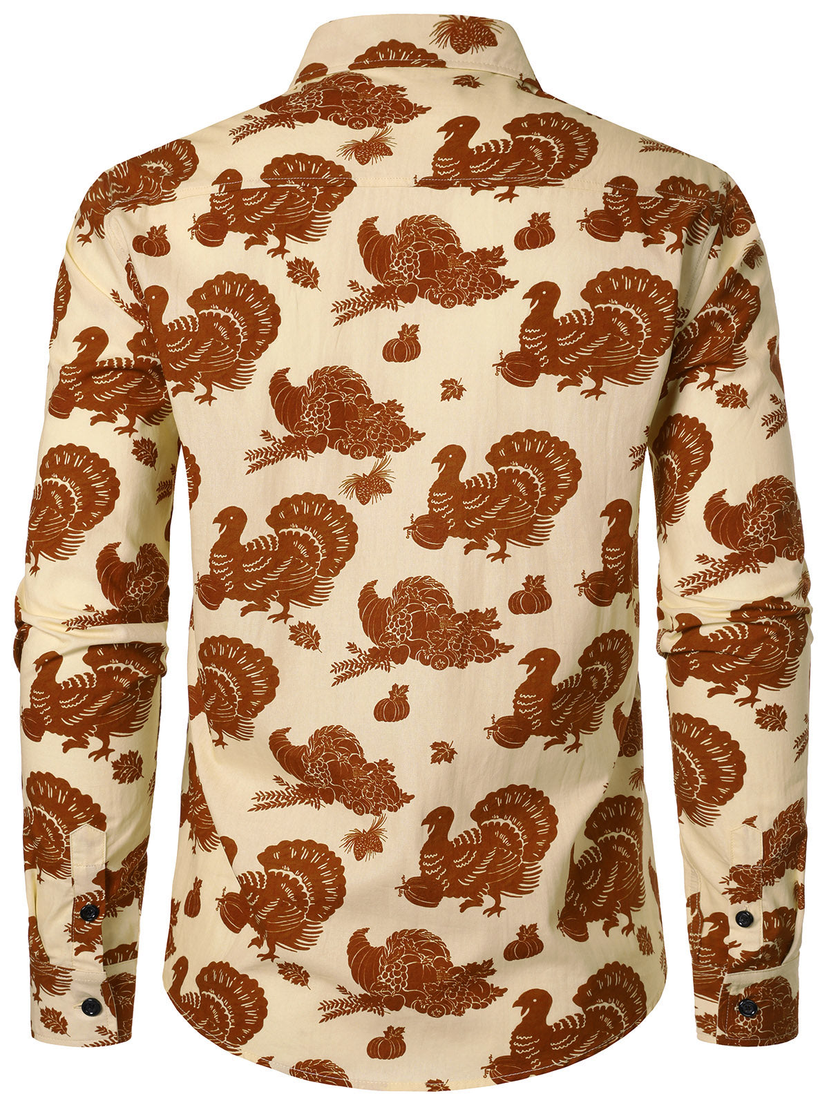 Men's Thanksgiving Turkey Khaki Cotton Long Sleeve Shirt