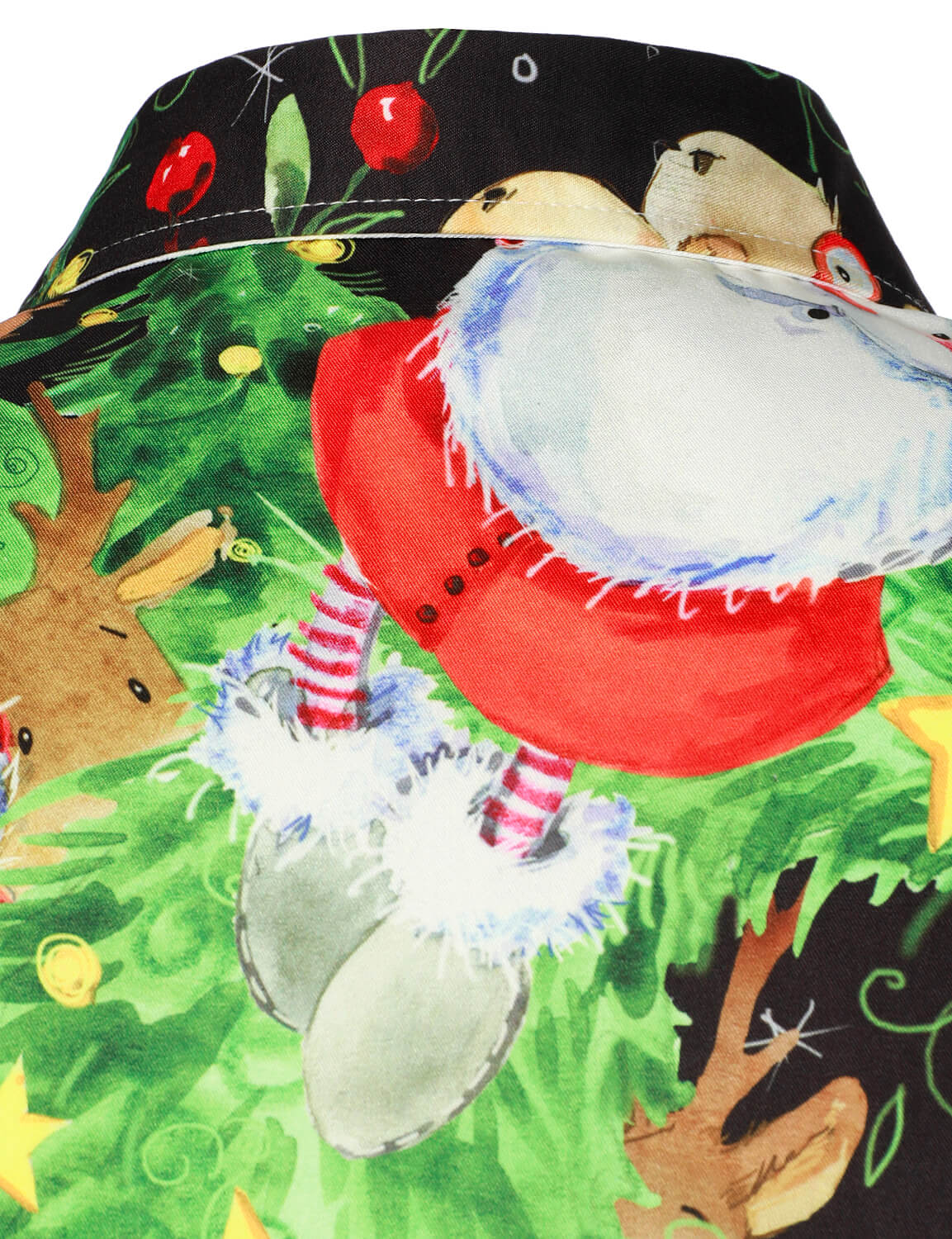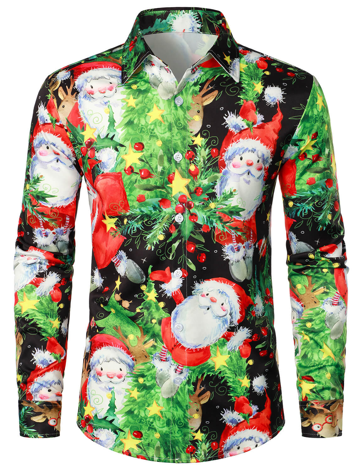 Men's Vintage Santa Reindeer Elk Christmas Tree Holiday Party Long Sleeve Button Up Shirt