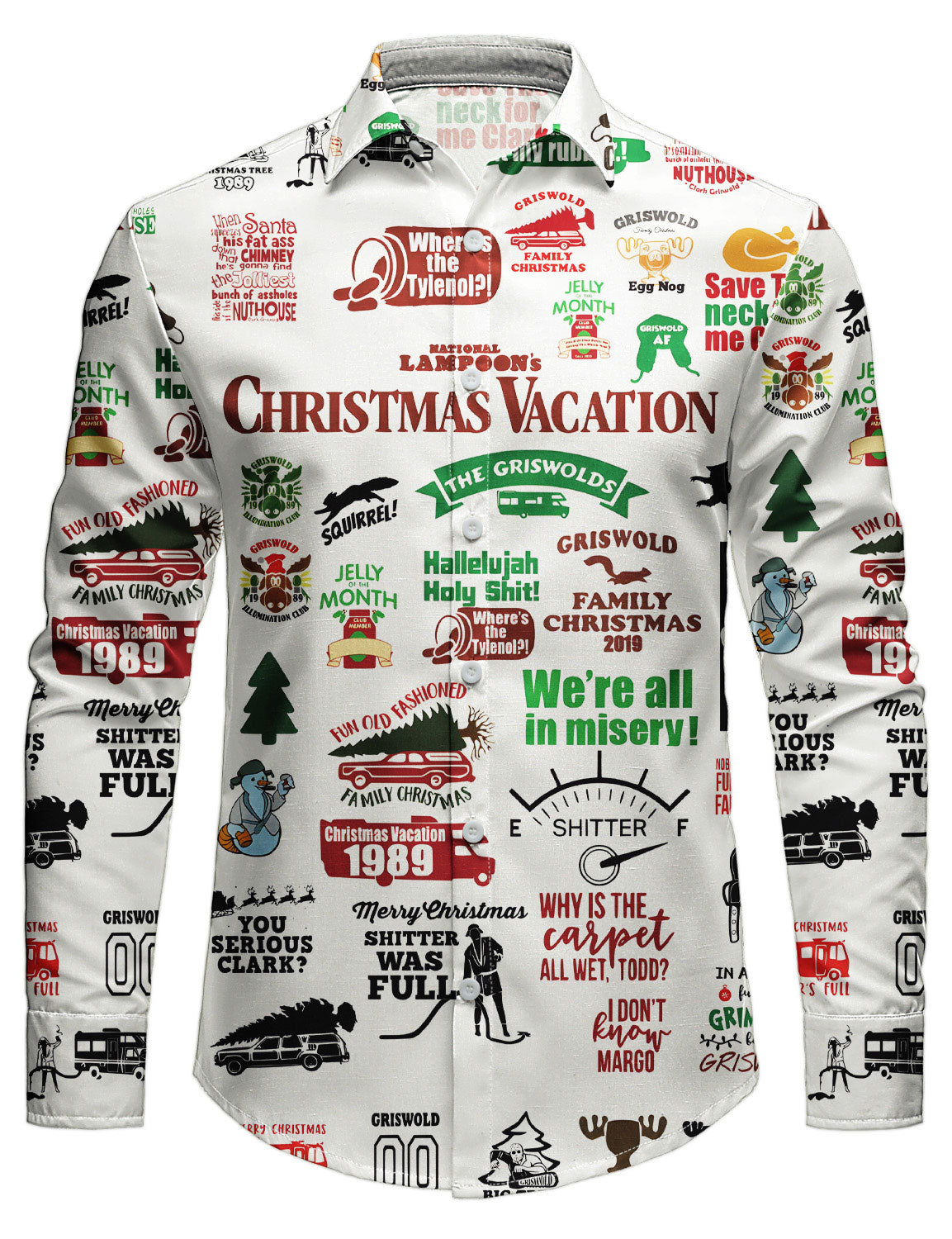 Men's Christmas Vacation Funny Print Long Sleeve Button Shirt