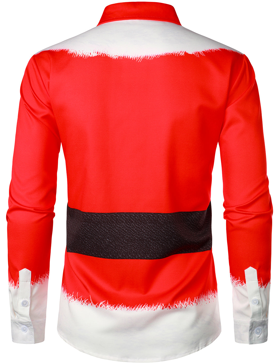 Men's Christmas Santa Claus Xmas Costume Red Funny Outfit Long Sleeve Shirt