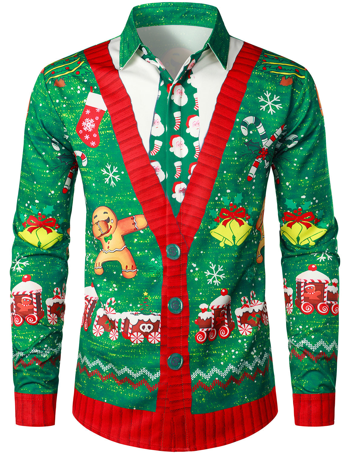 Men's Christmas Funny Outfit Holiday Party Ugly Long Sleeve Shirt
