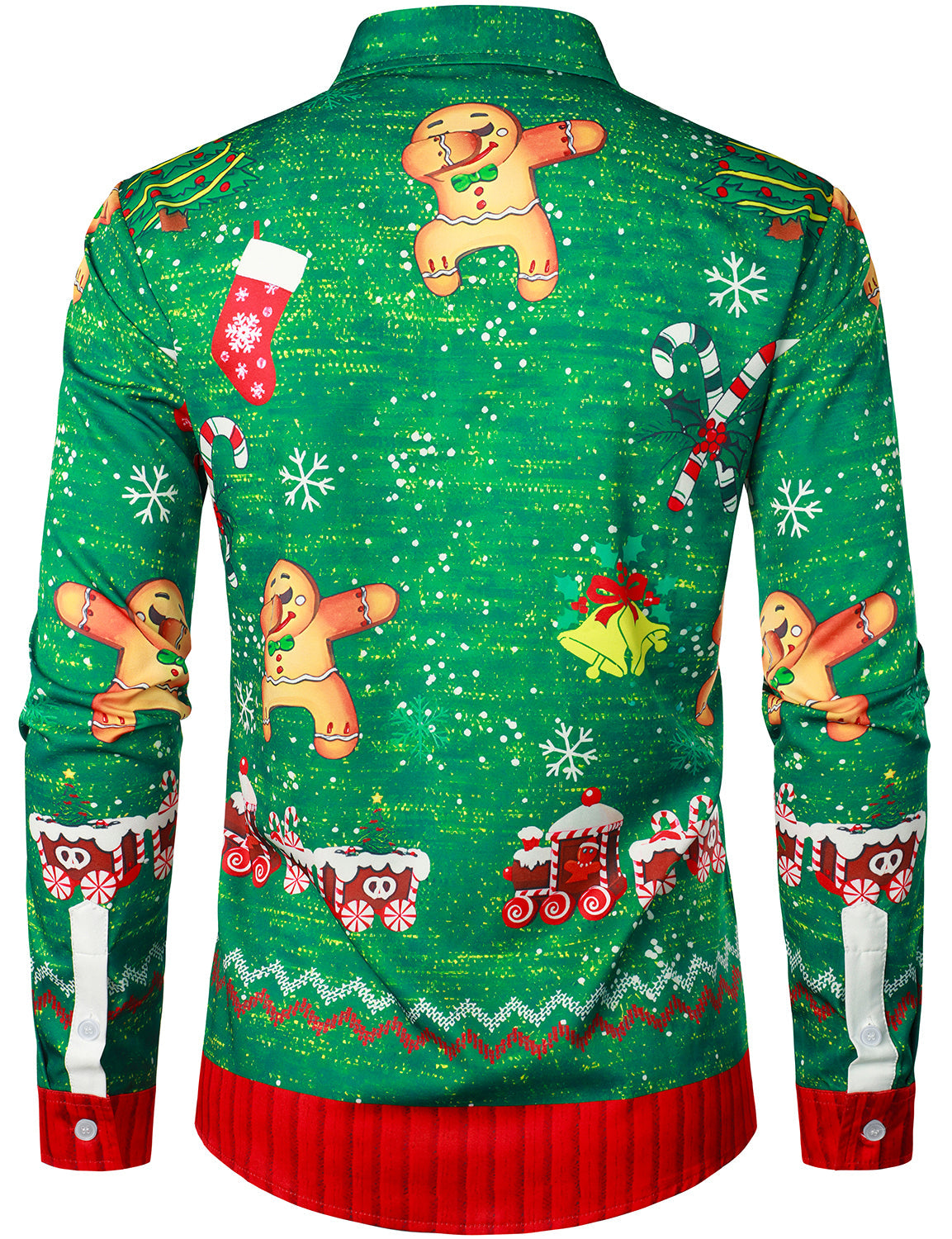 Men's Cotton Christmas Gingerbread Man Long Sleeve Shirt