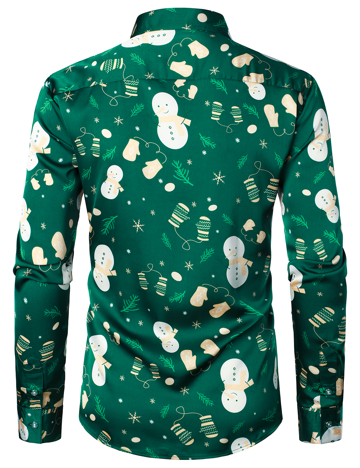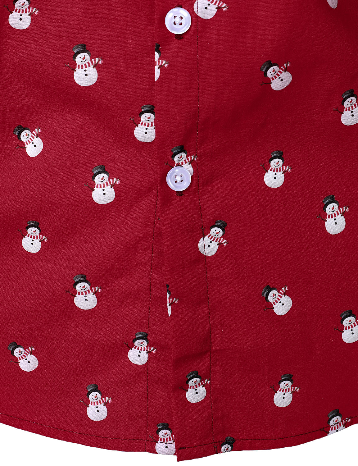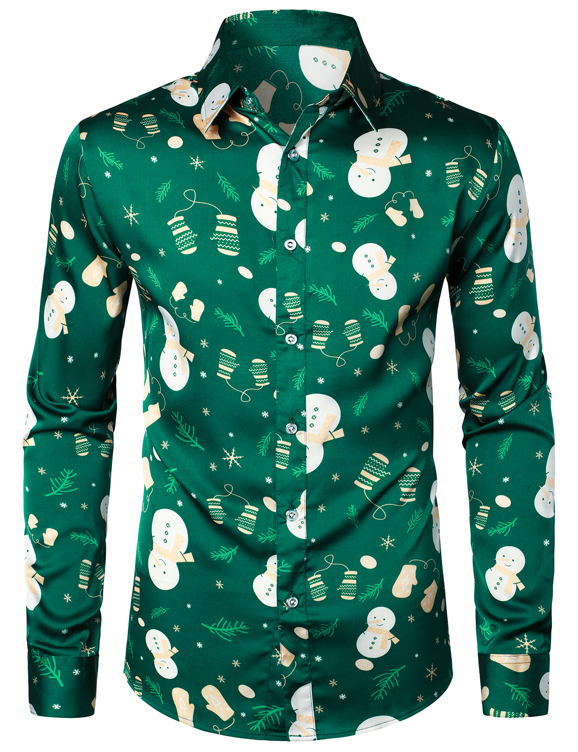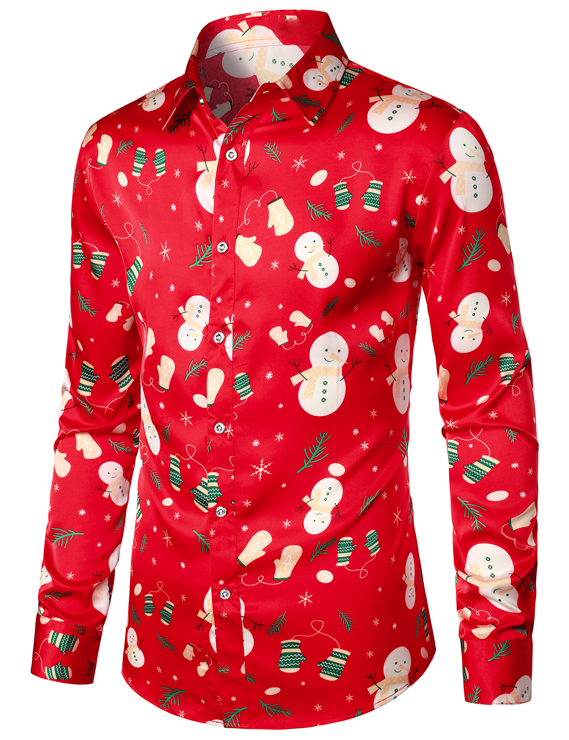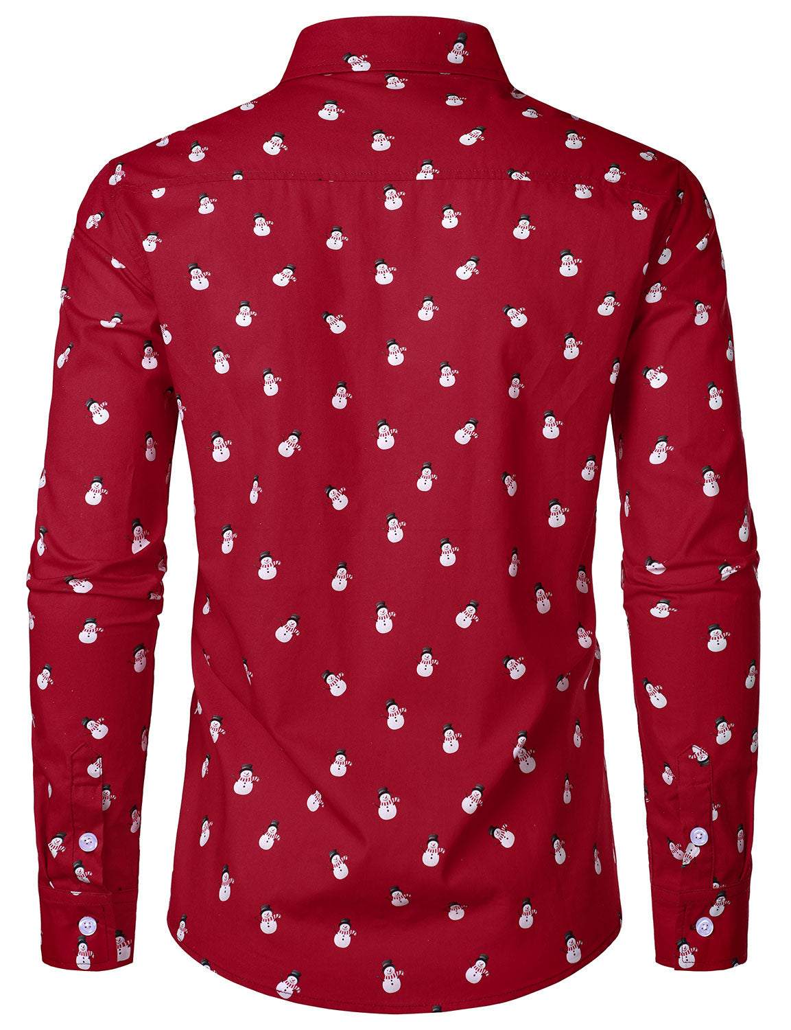 Men's Christmas Snowman Print Xmas Party Holiday Button Up Long Sleeve Shirt