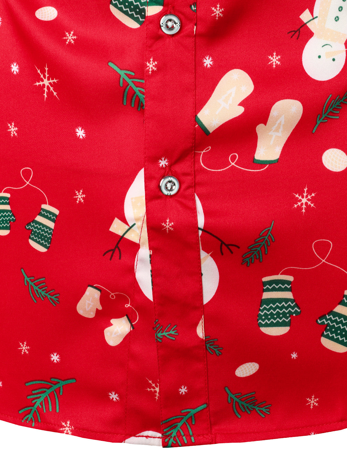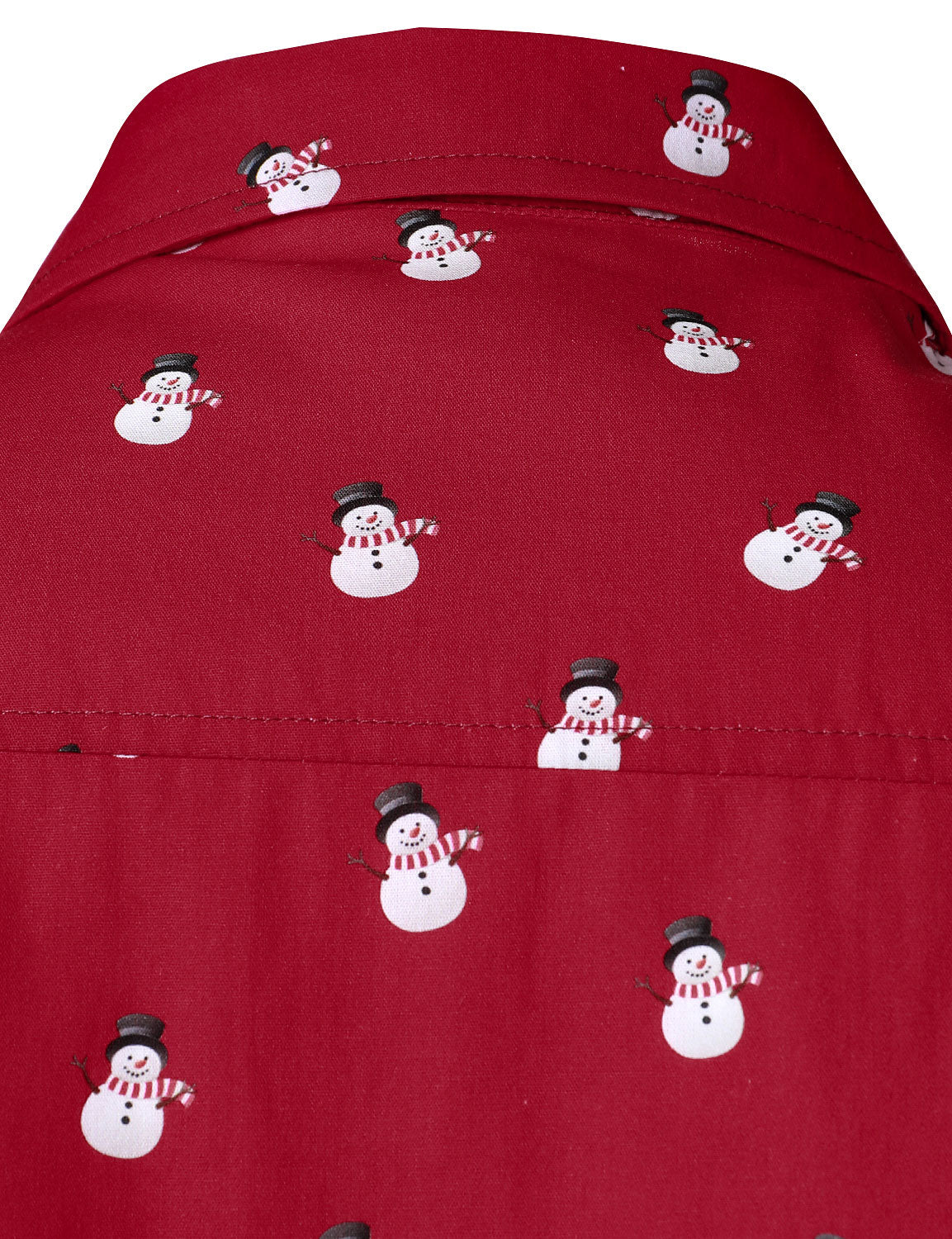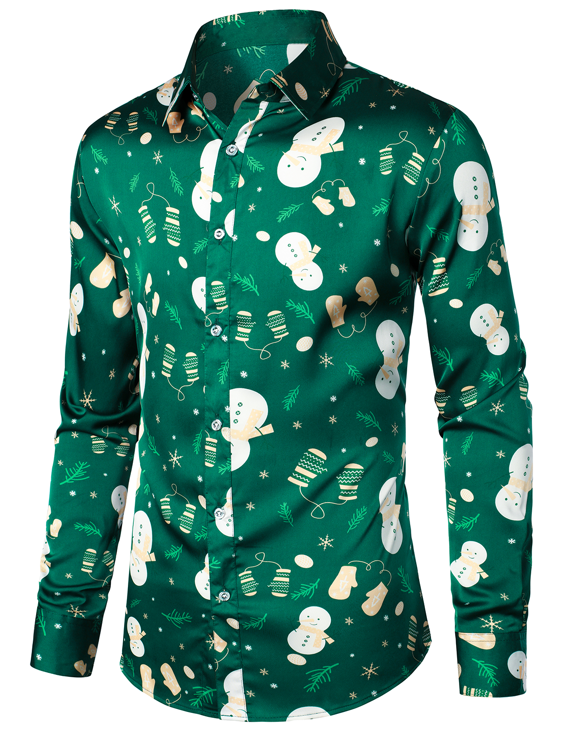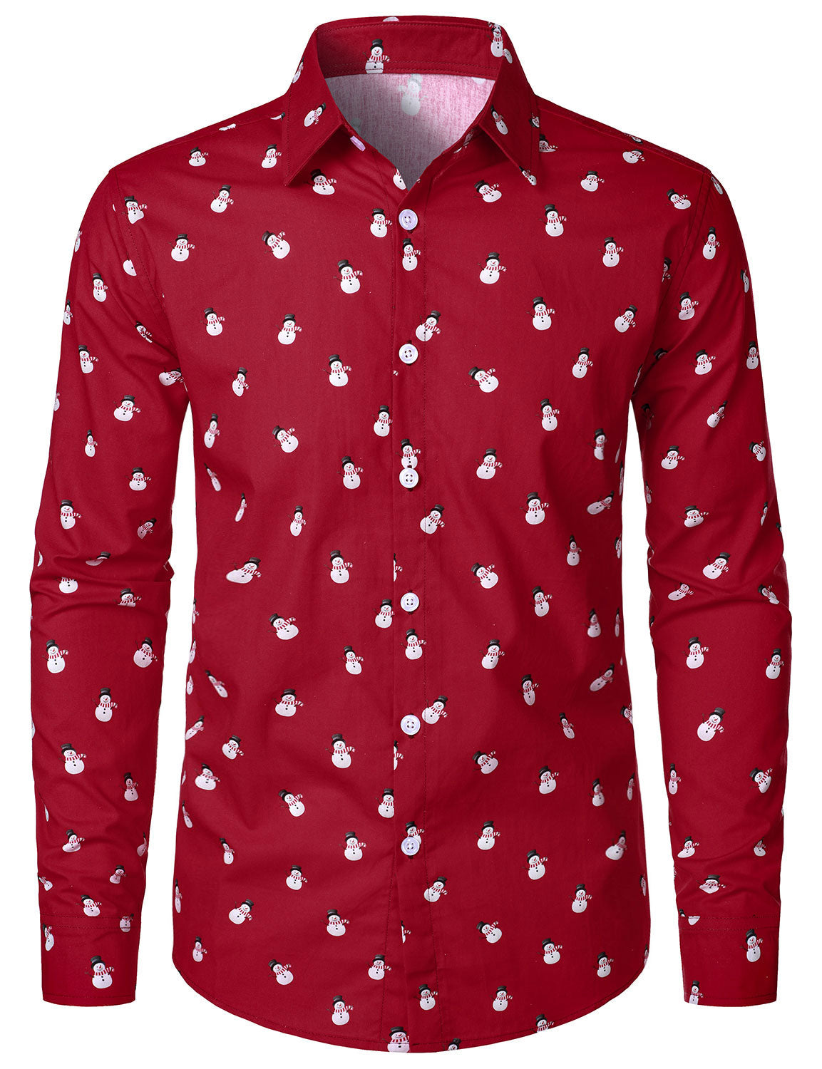 Men's Christmas Snowman Print Xmas Party Holiday Button Up Long Sleeve Shirt