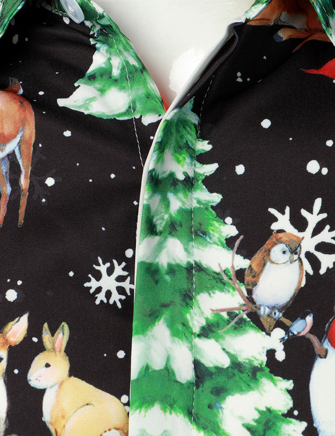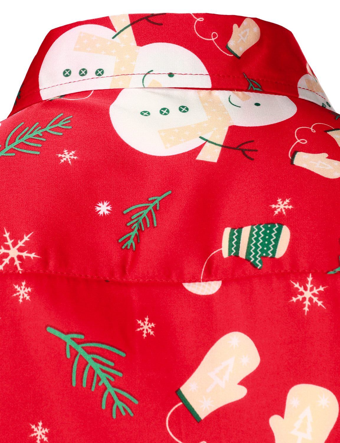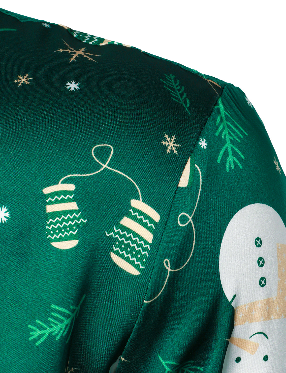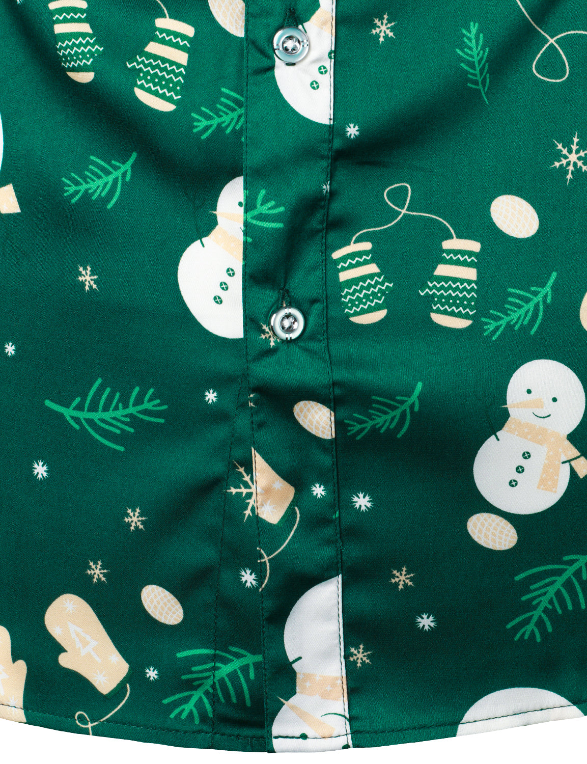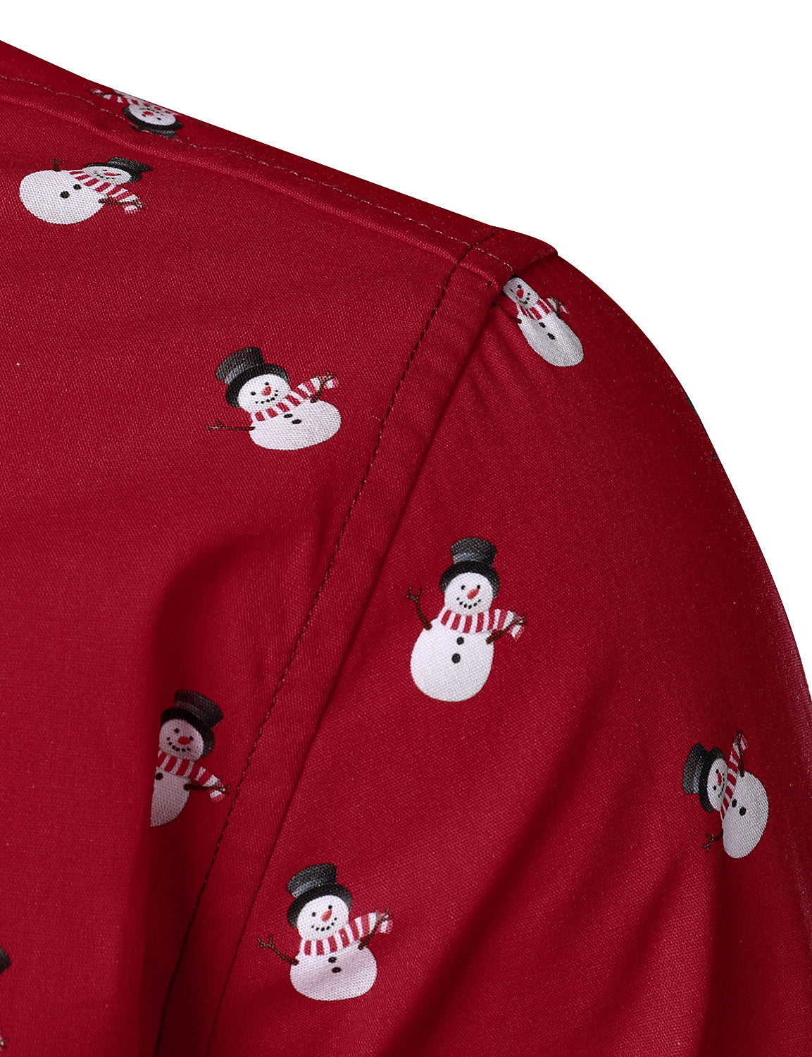 Men's Christmas Snowman Print Xmas Party Holiday Button Up Long Sleeve Shirt