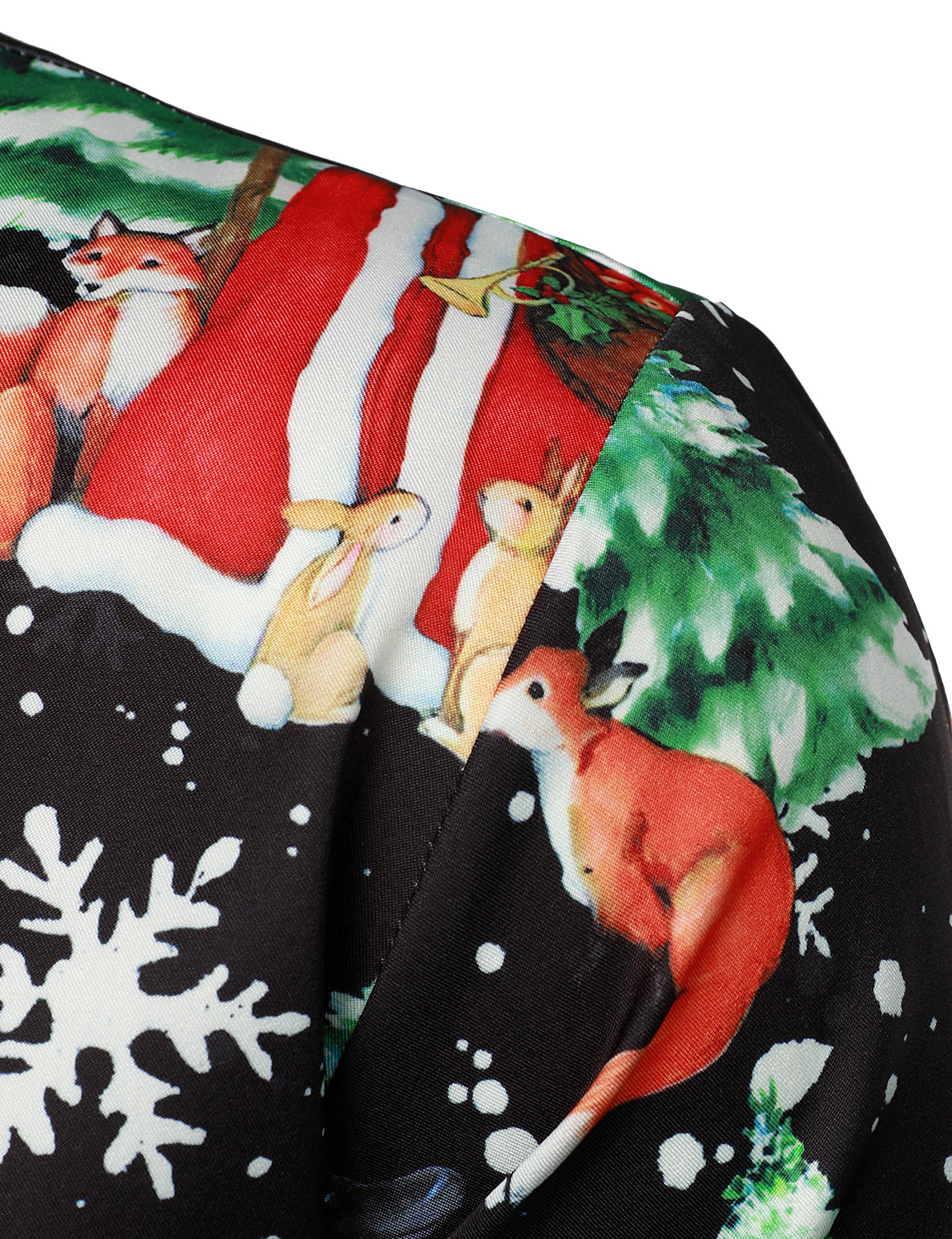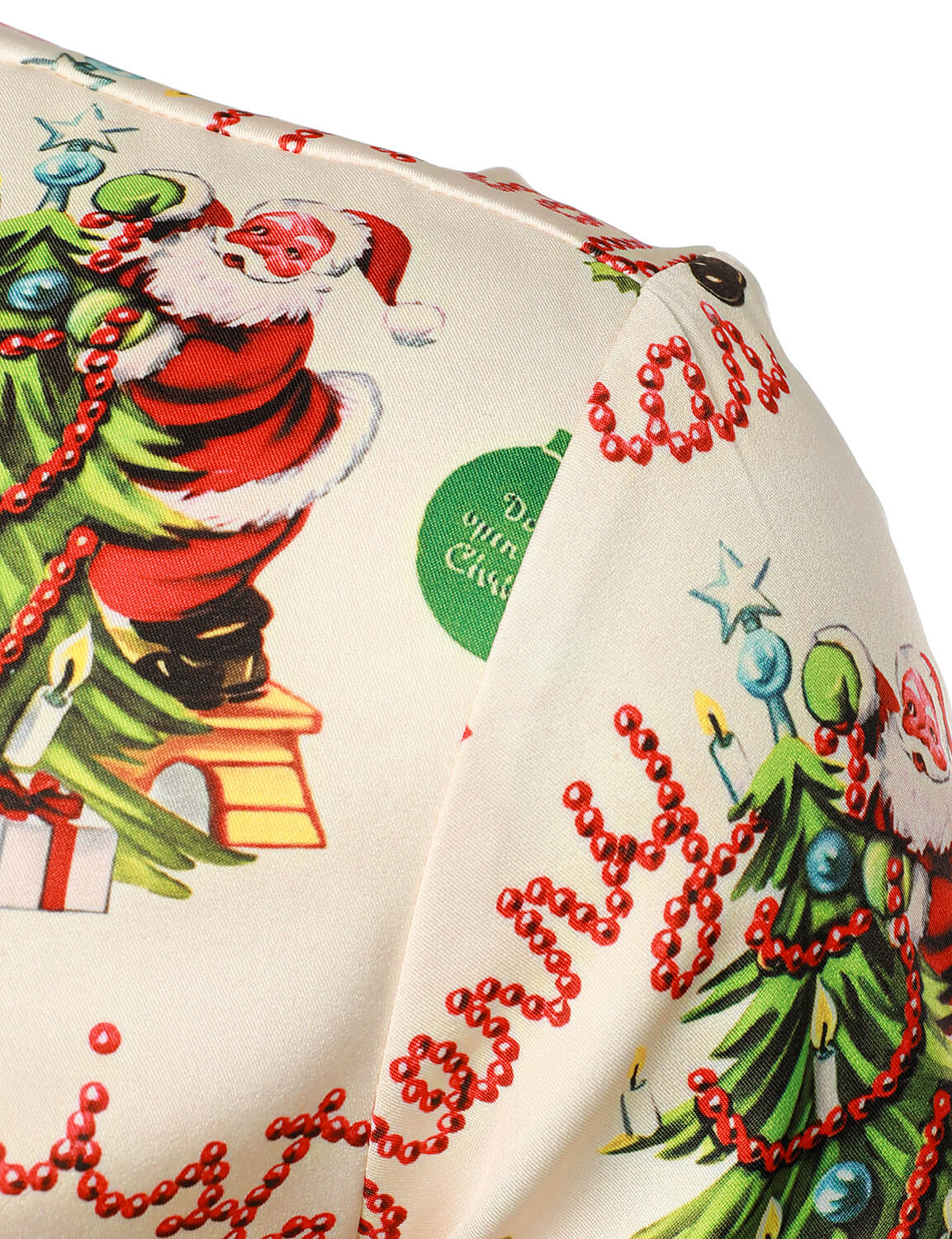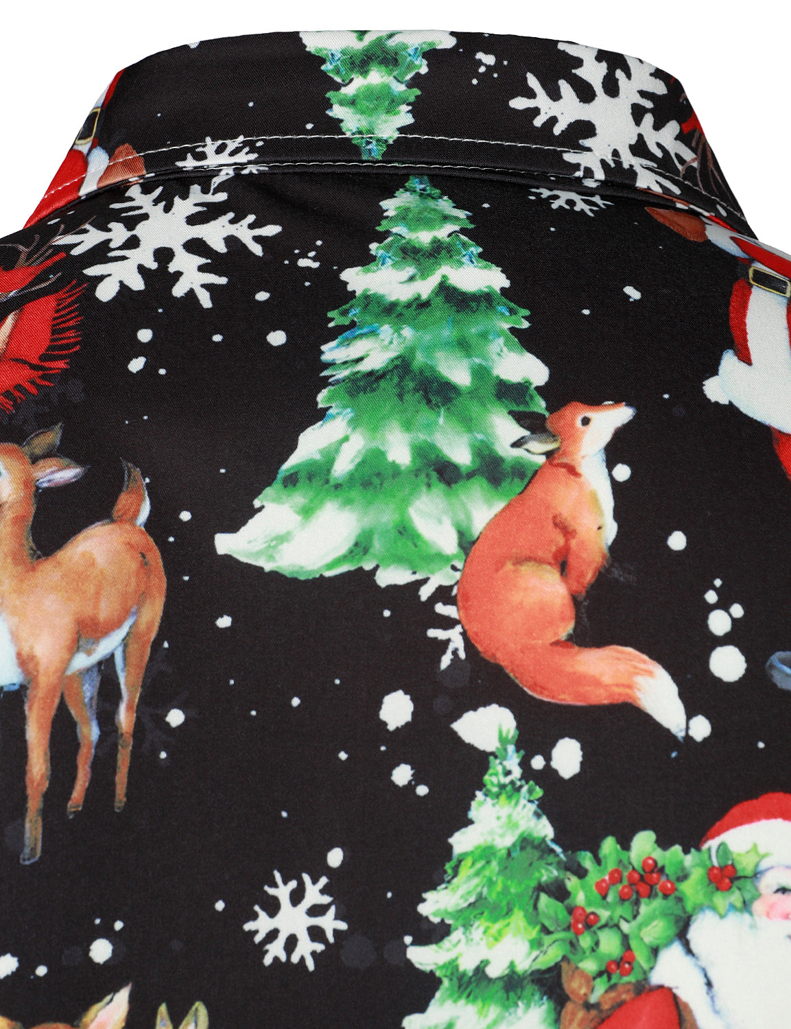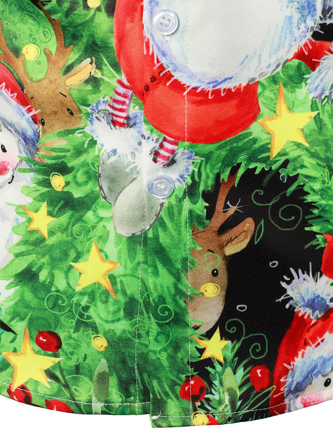 Men's Vintage Santa Reindeer Elk Christmas Tree Holiday Party Long Sleeve Button Up Shirt