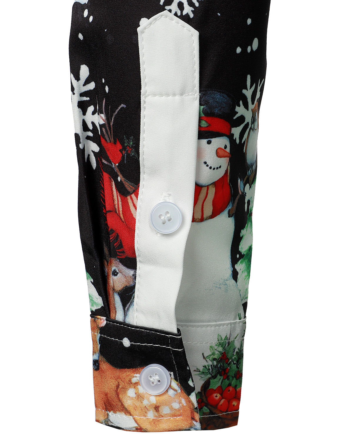 Men's Christmas Snowman Print Casual Button Long Sleeve Shirt
