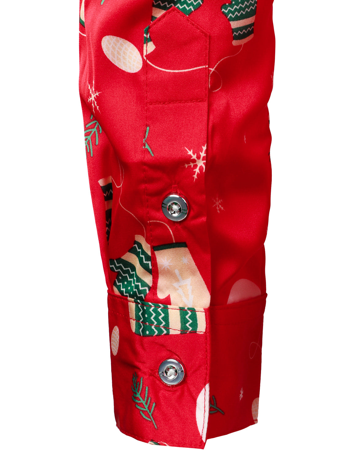 Men's Family Christmas Funny Print Red Long Sleeve Button Shirt