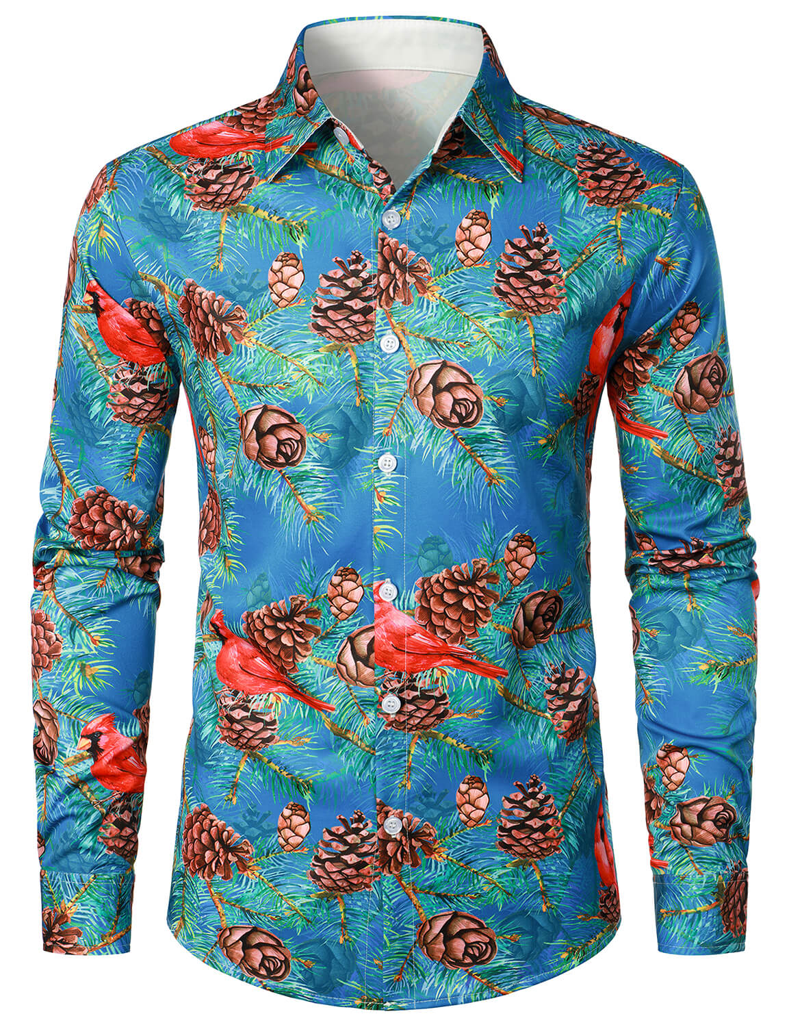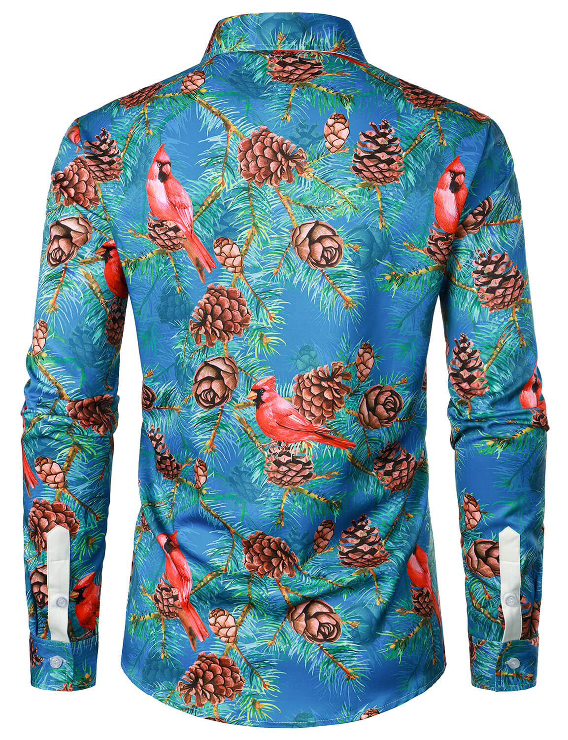 Men's Christmas Cardinals Birds Print Long Sleeve Shirt