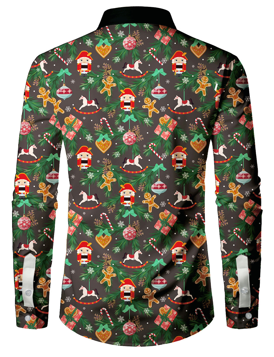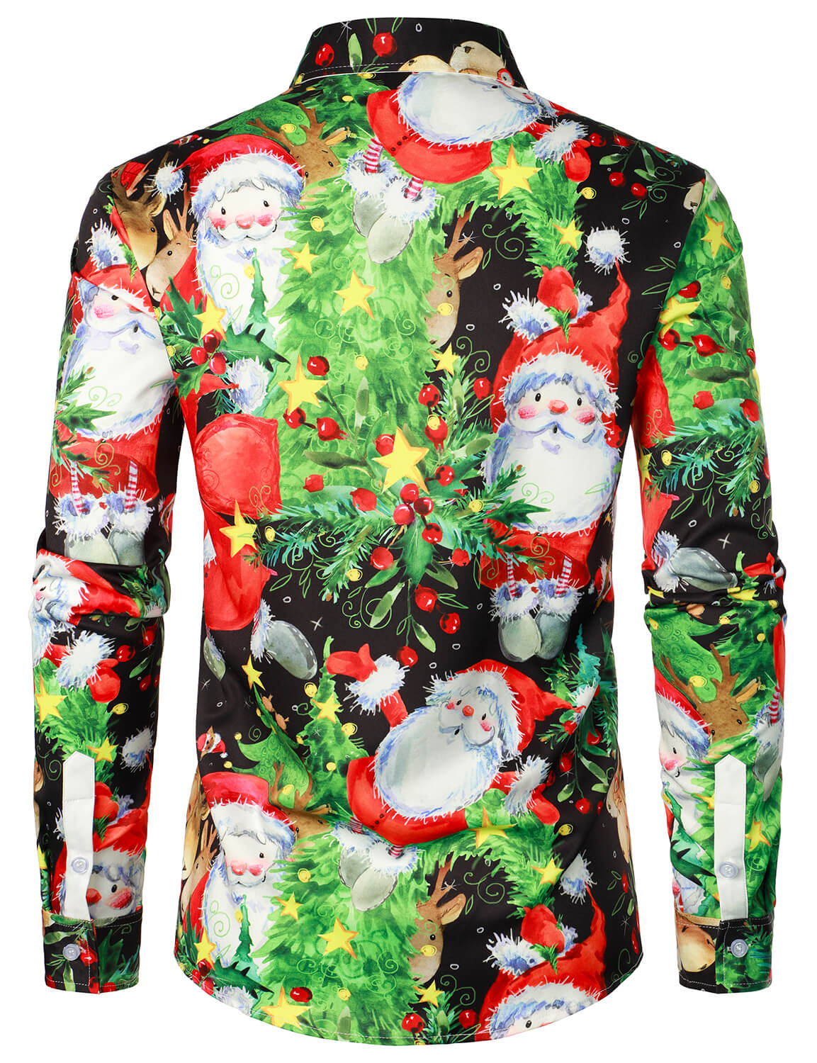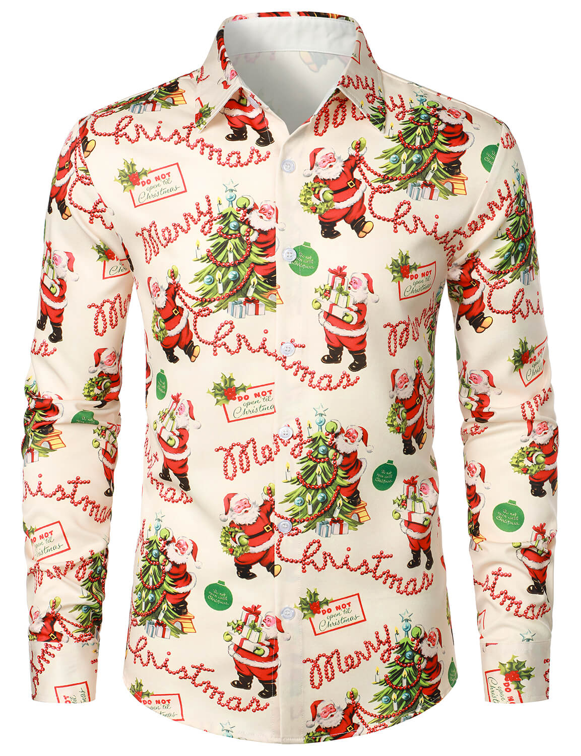 Men's Christmas Funny Holiday Button Up Long Sleeve Shirt