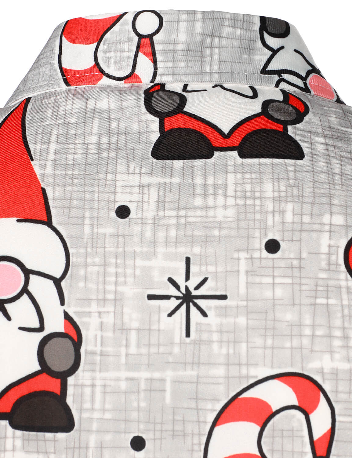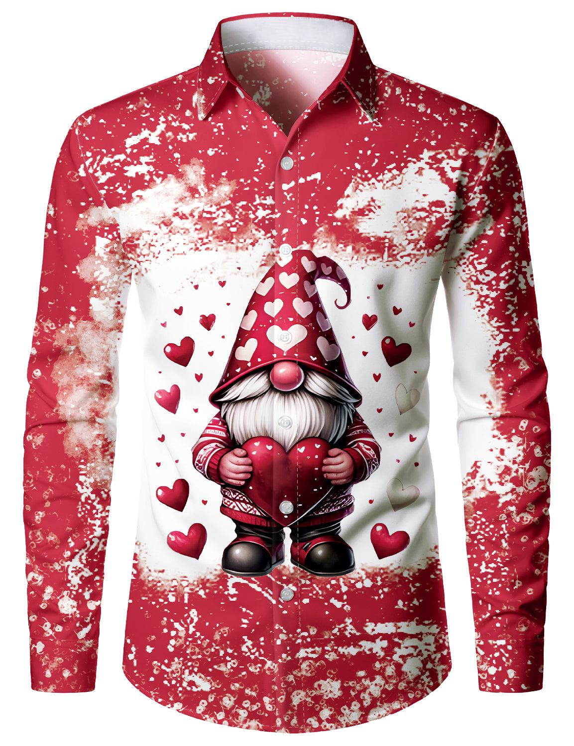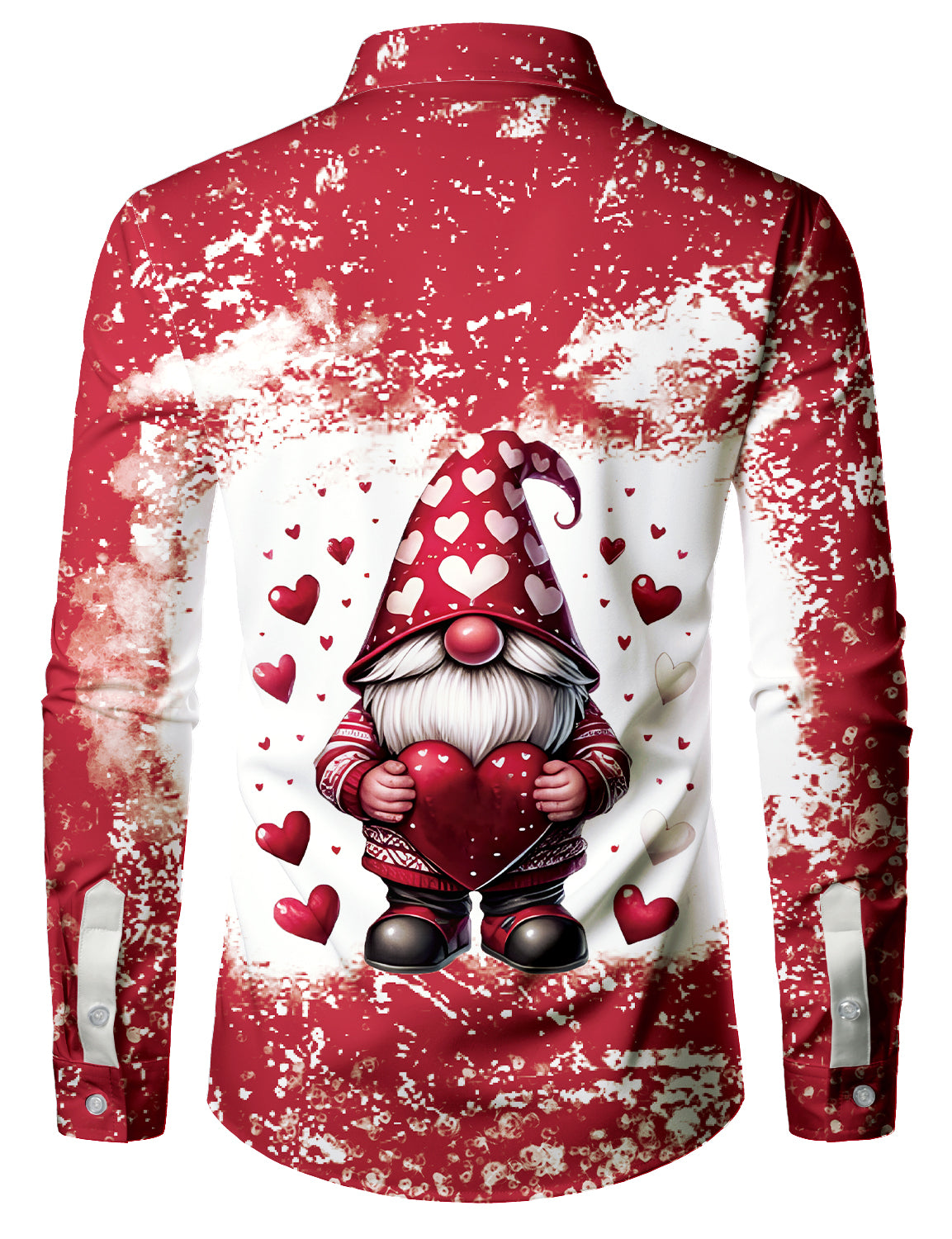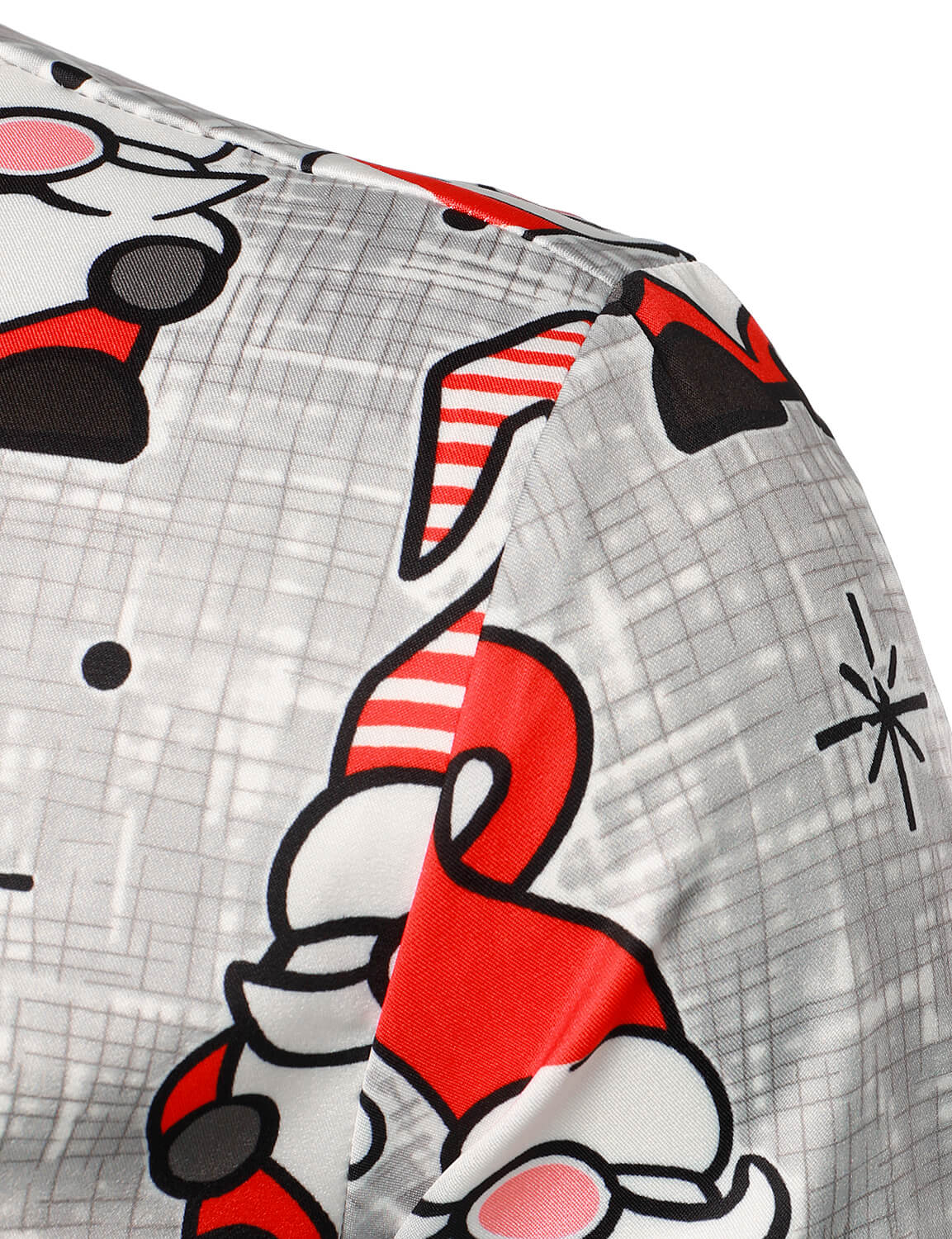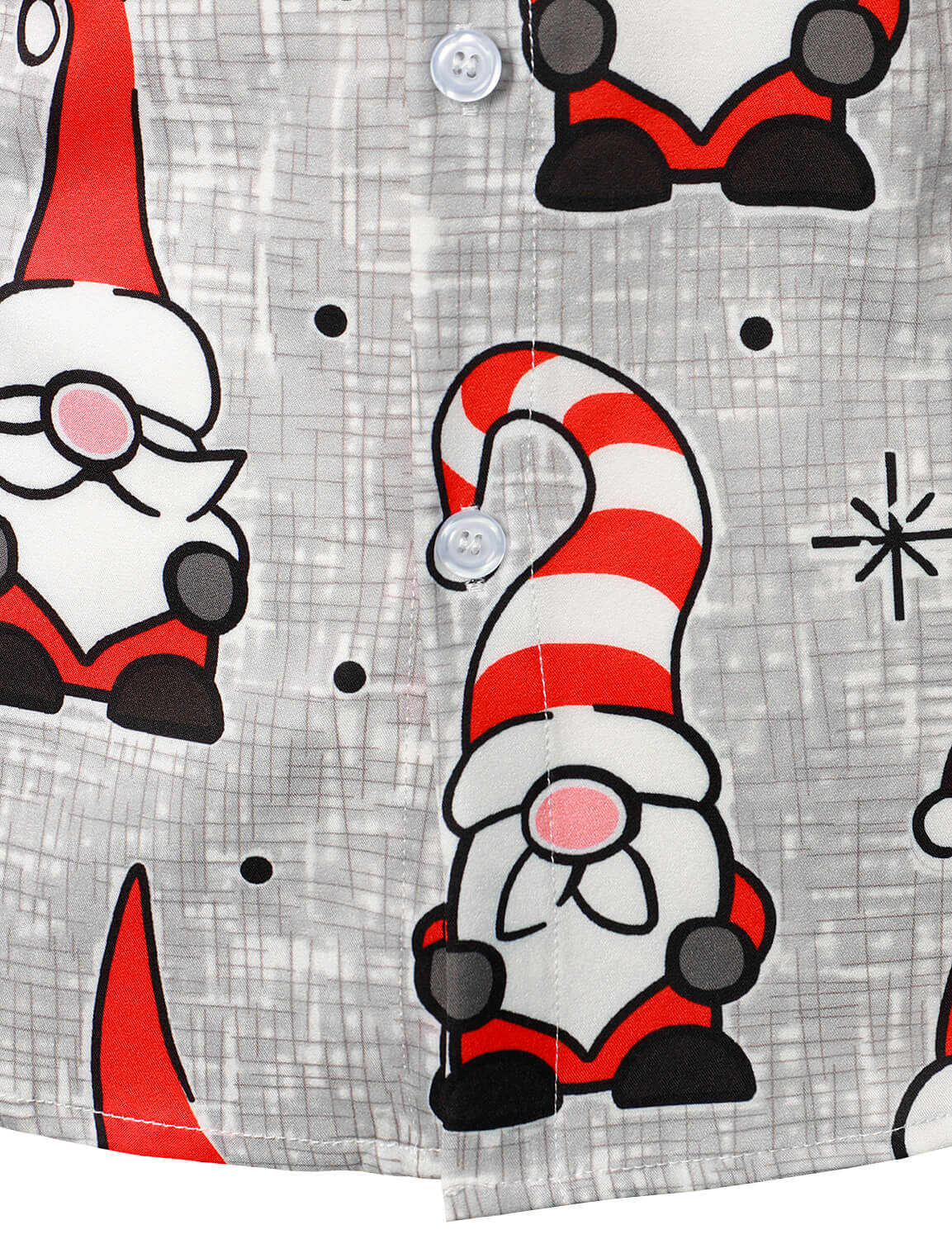 Men's Christmas Holiday Cute Gnome Print Funny Long Sleeve Shirt