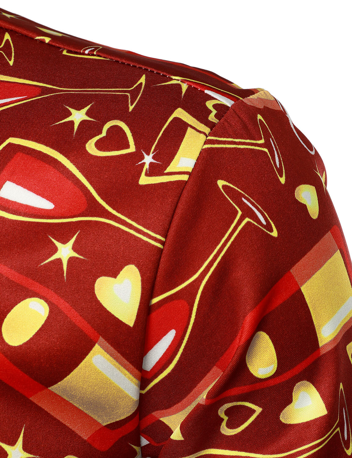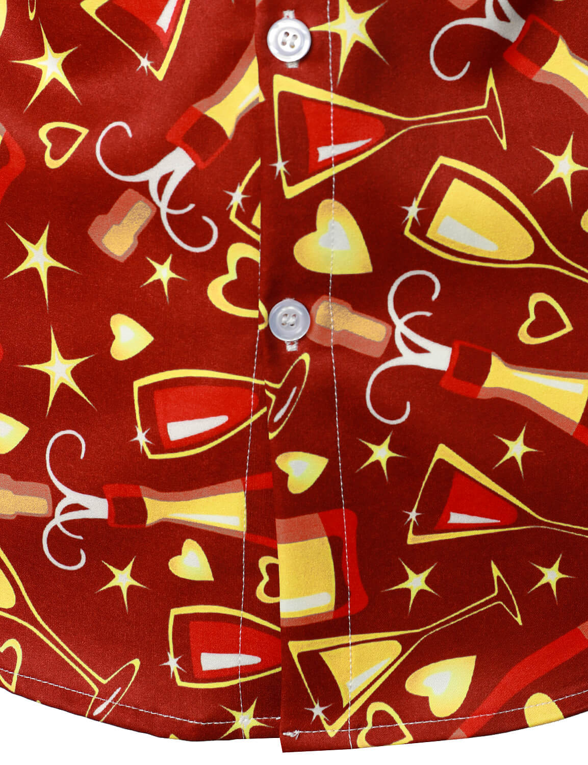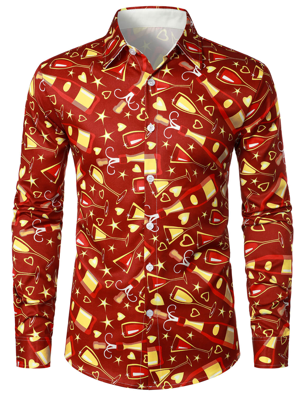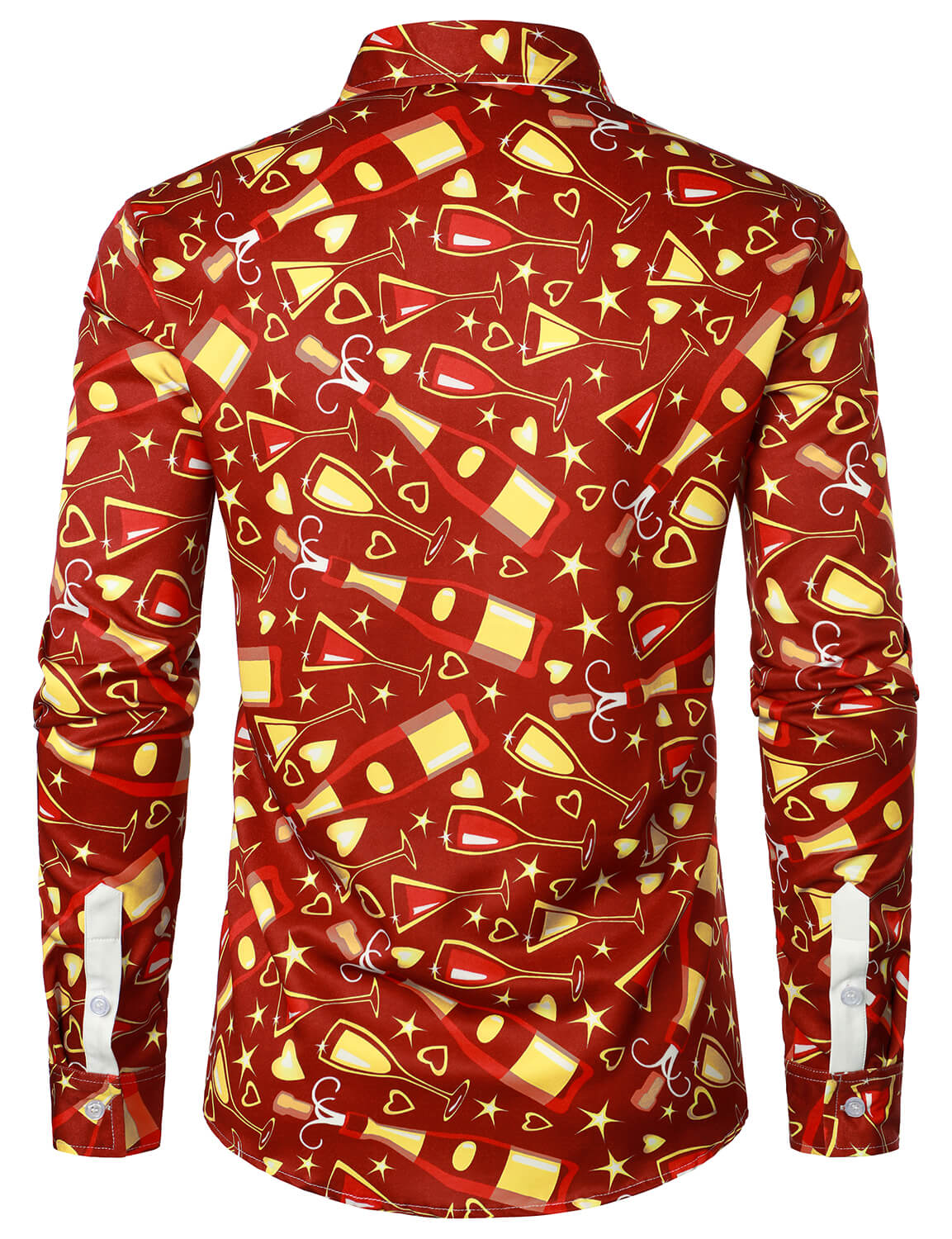 Men's Party Funny Holiday Christmas Champagne Cocktails New Year Eve Red Long Sleeve Shirt