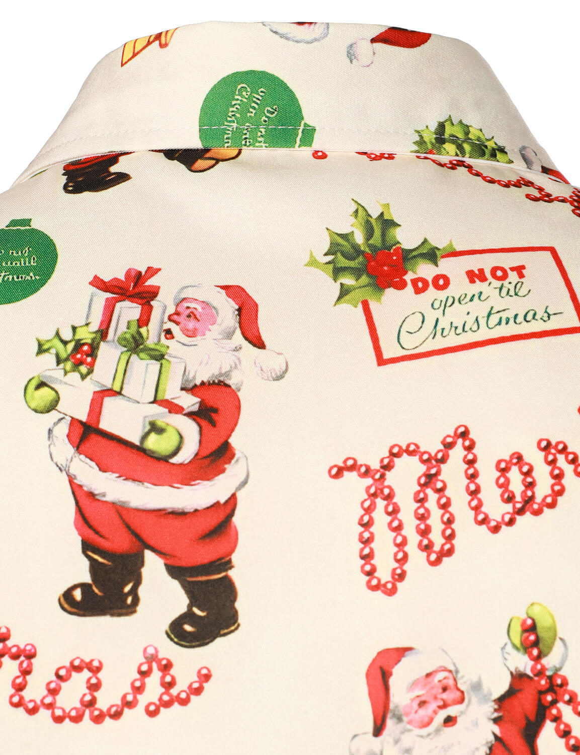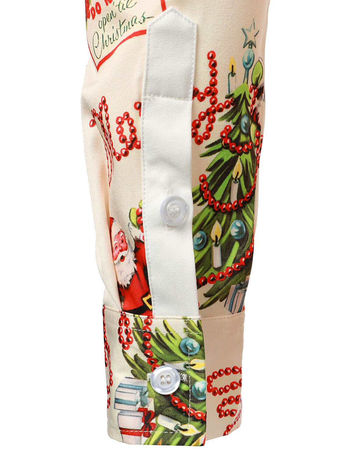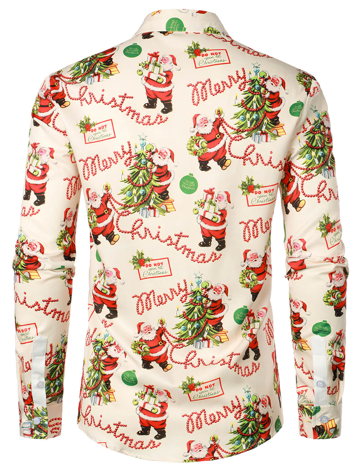 Men's Merry Christmas Holiday Cute Santa Claus Vintage Button Long Sleeve Shirt