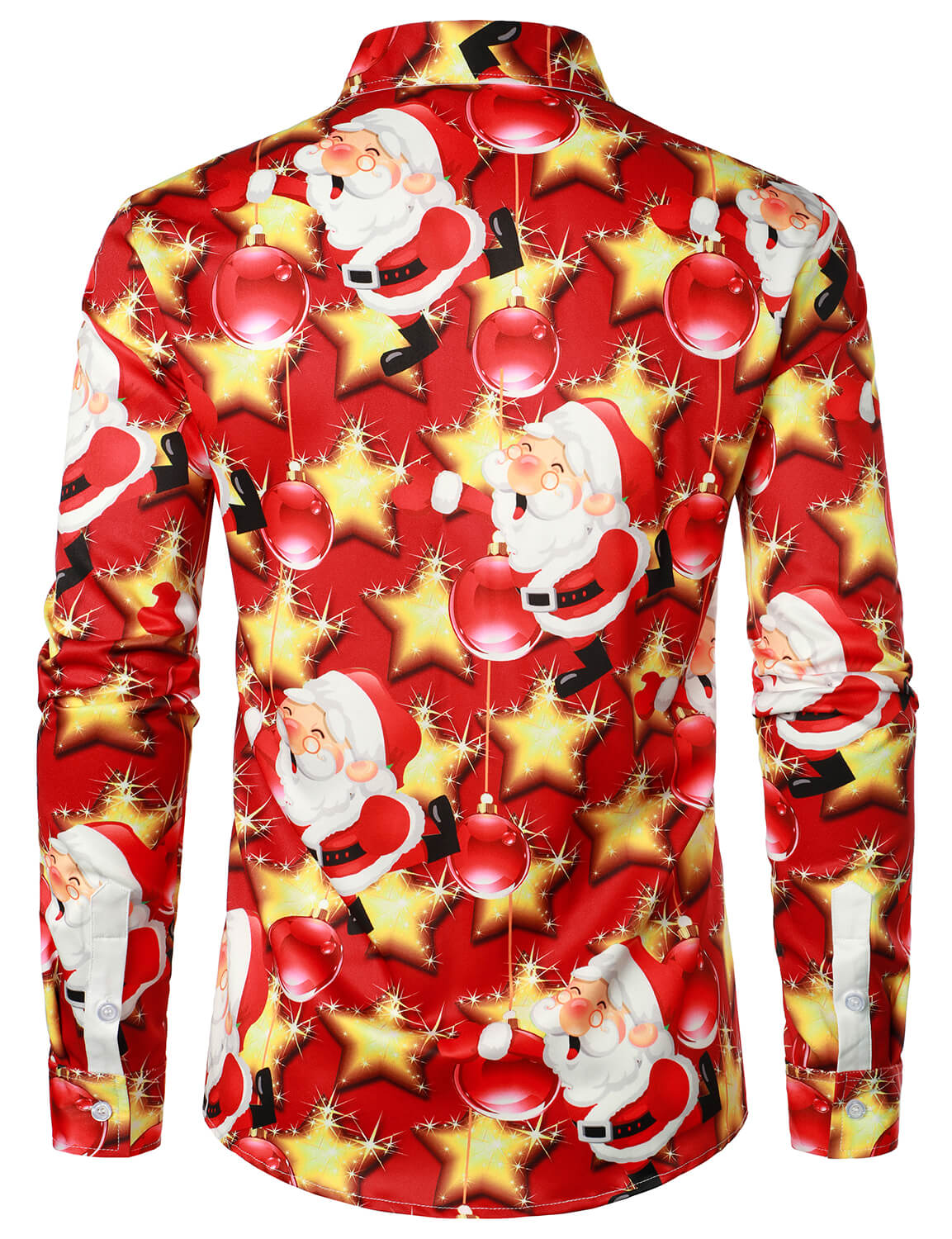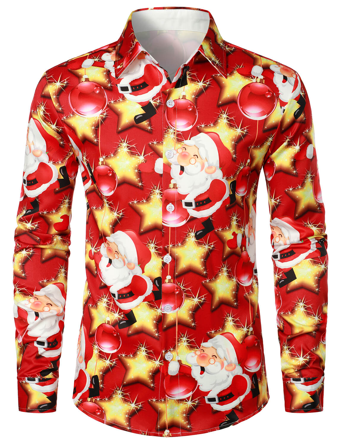 Men's Santa Claus Shiny Stars Christmas Party Funny Long Sleeve Shirt