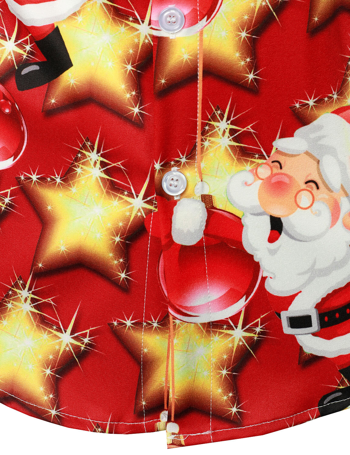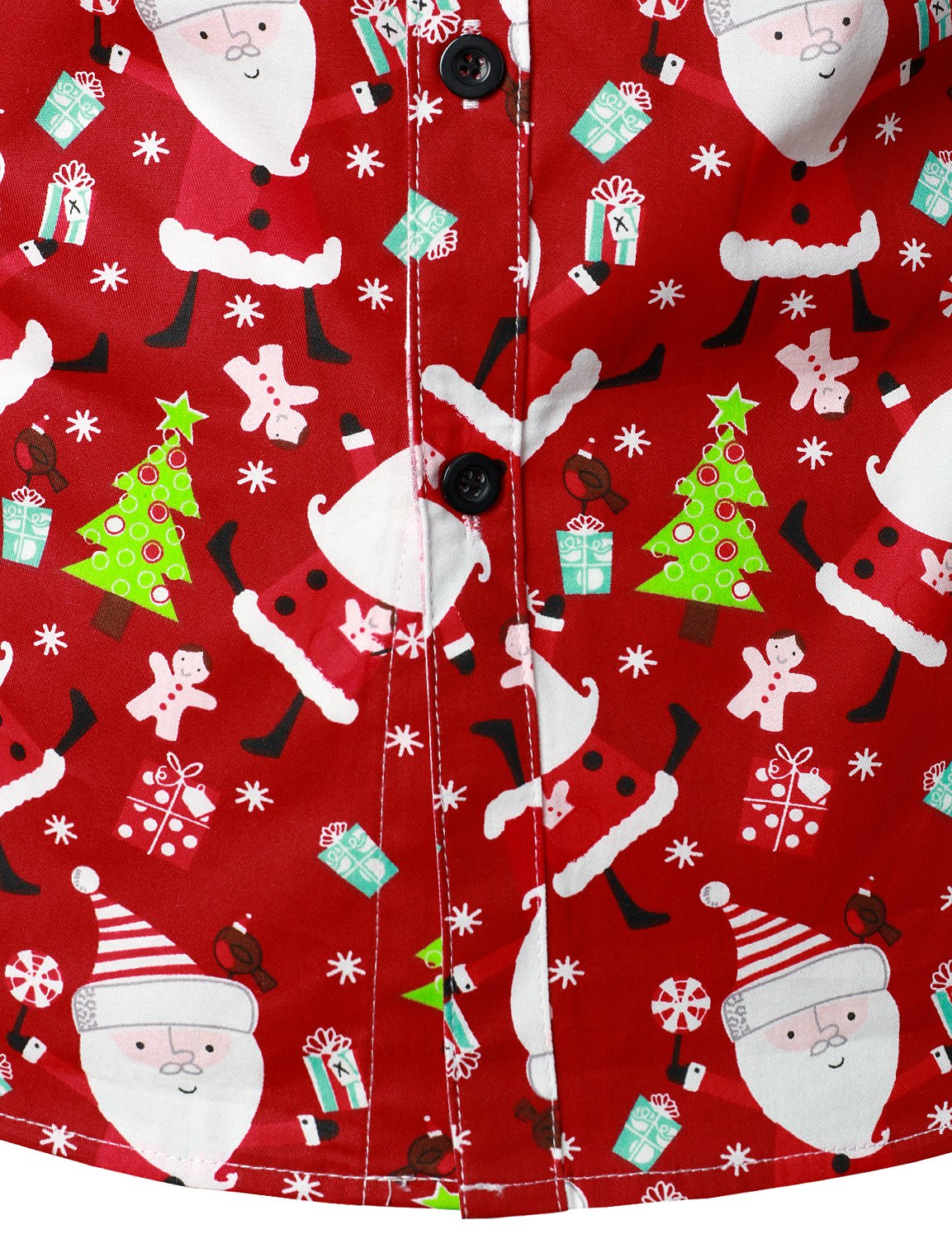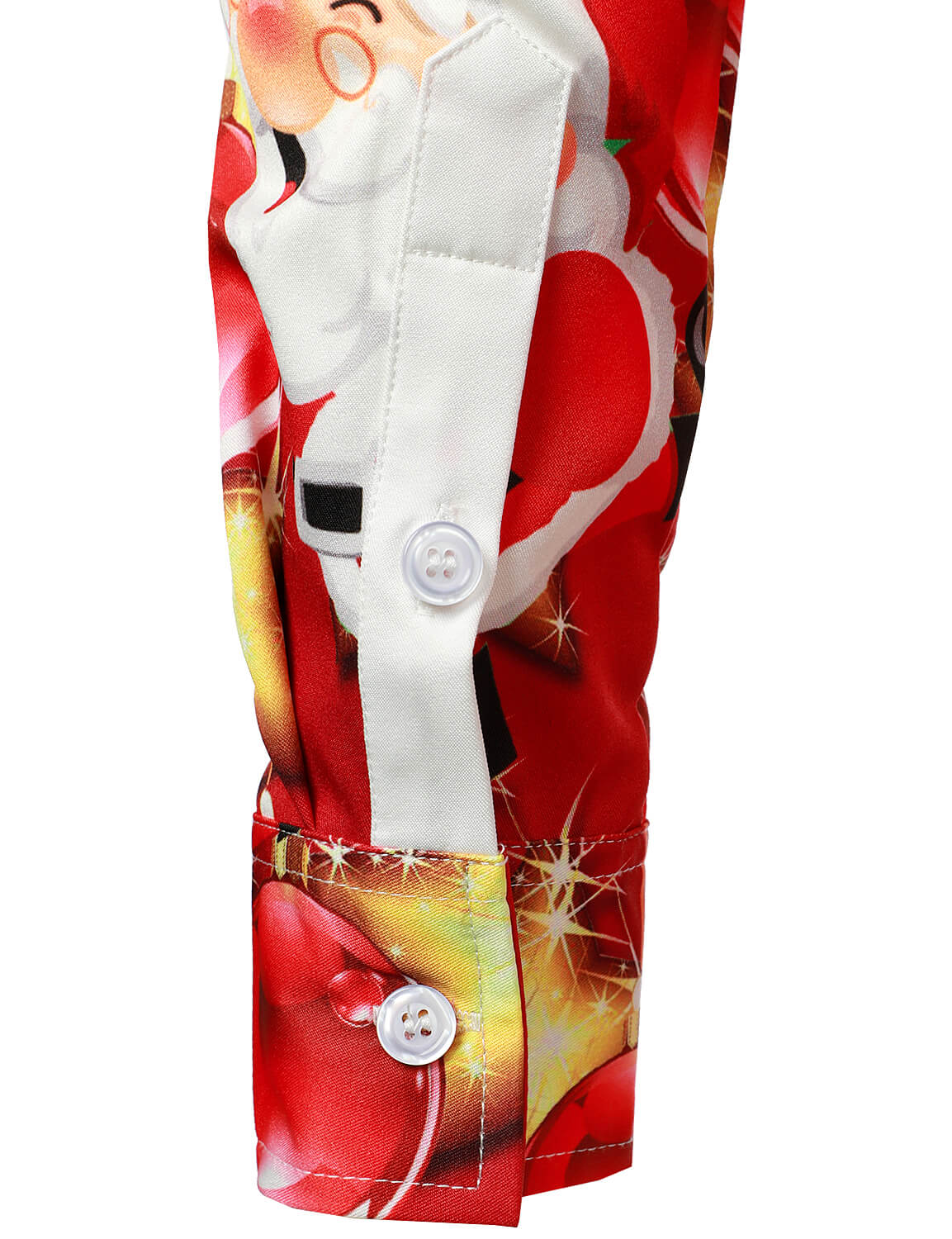 Men's Christmas Santa Print Regular Fit Red Long Sleeve Dress Shirt