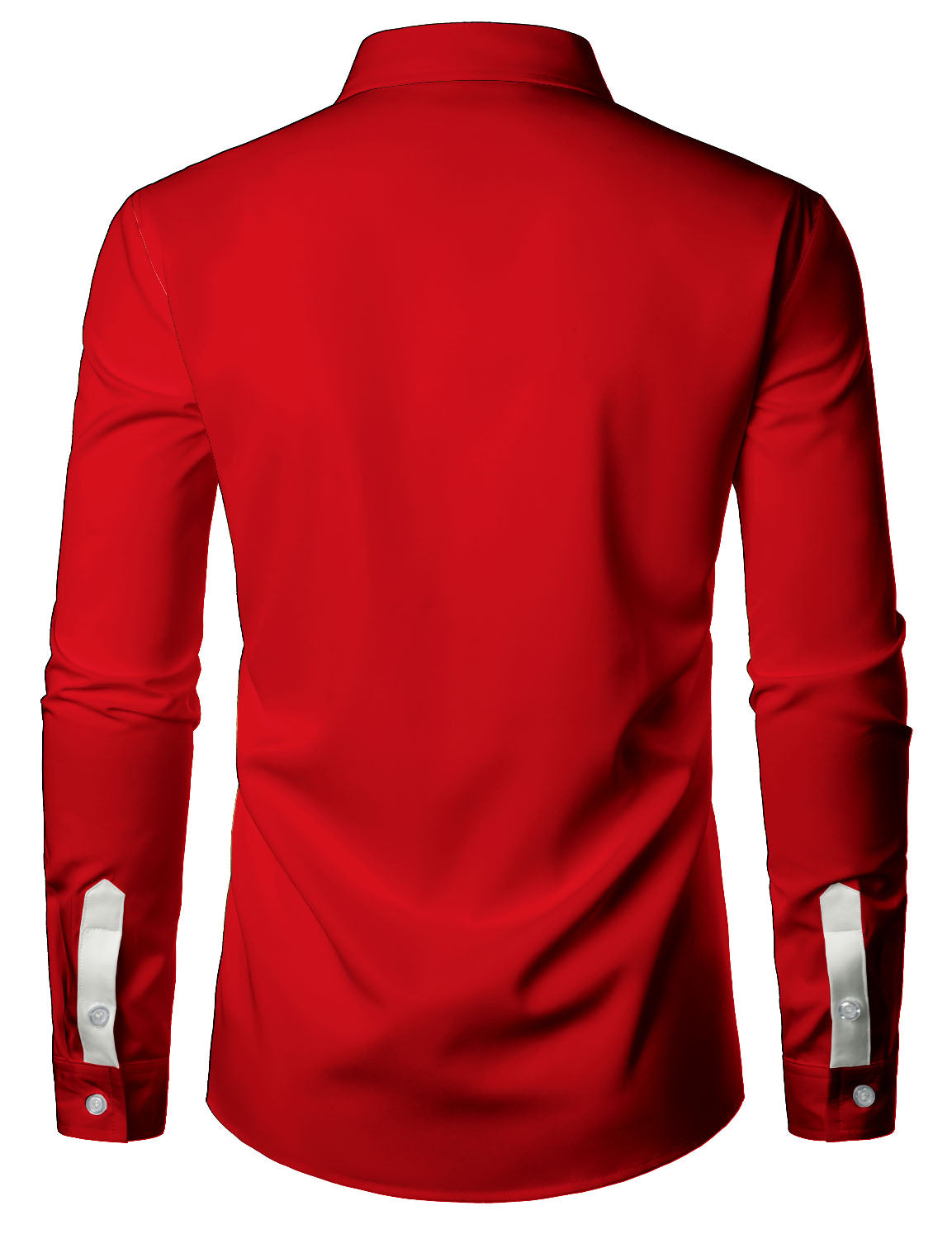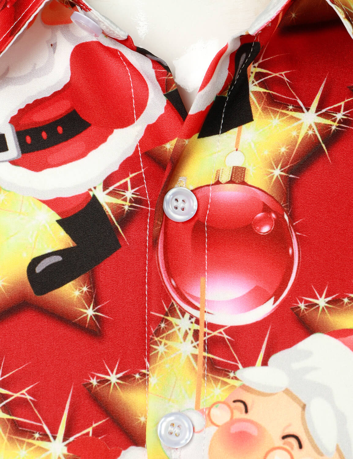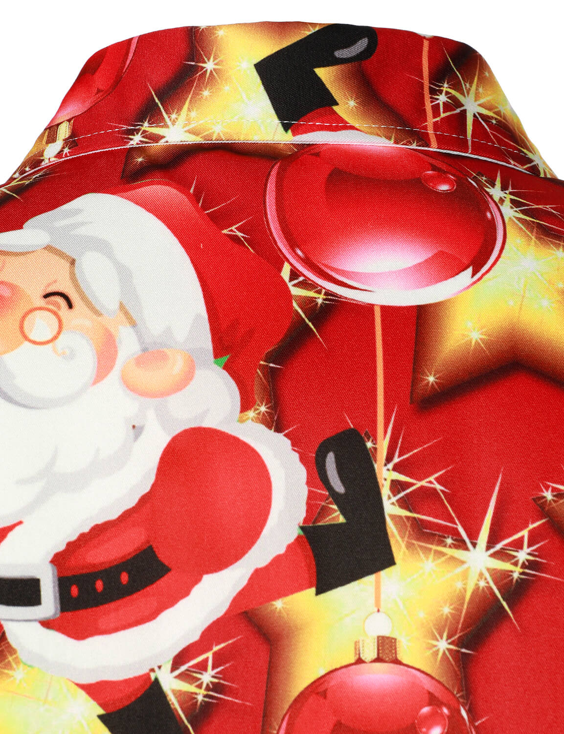 Men's Christmas Santa Print Regular Fit Red Long Sleeve Dress Shirt