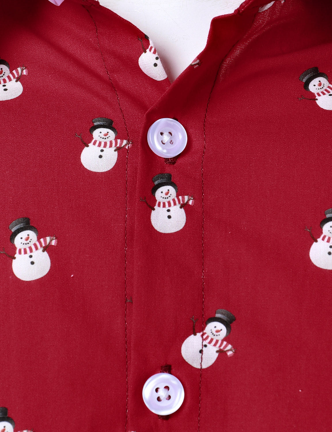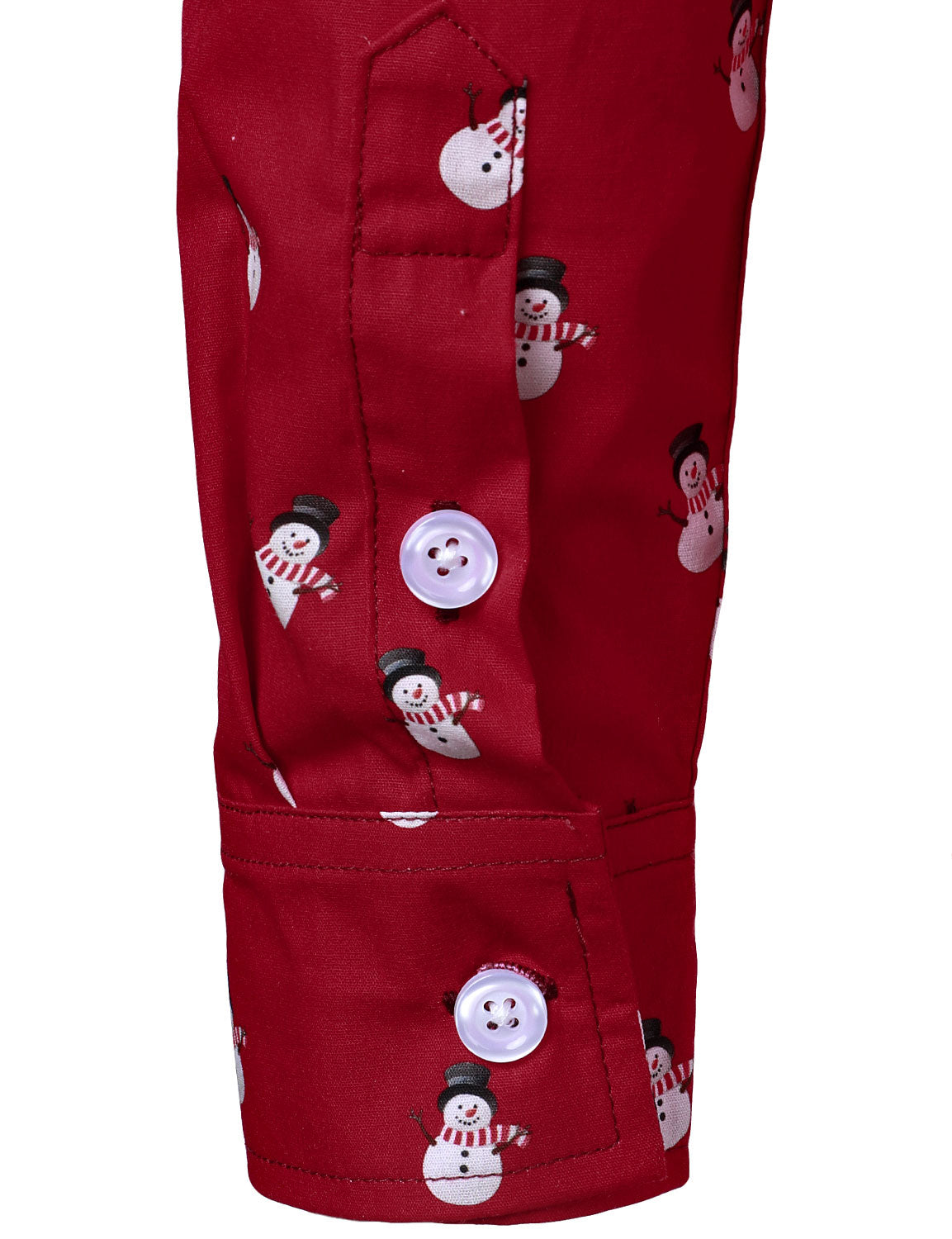 Men's Snowman Christmas Print Red Long Sleeve Shirt