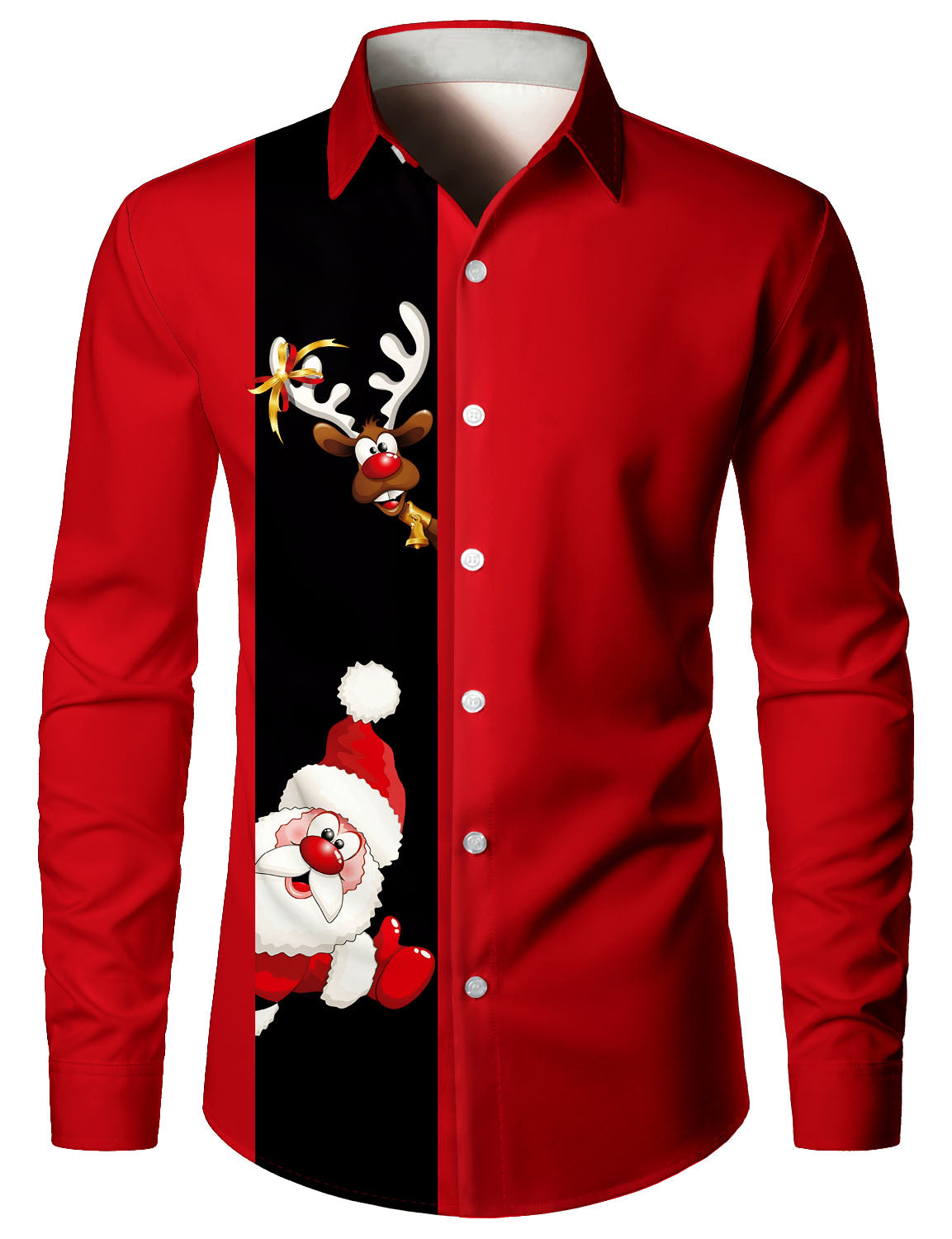 Men's Christmas Santa Claus Reindeer Funny Holiday Long Sleeve Shirt