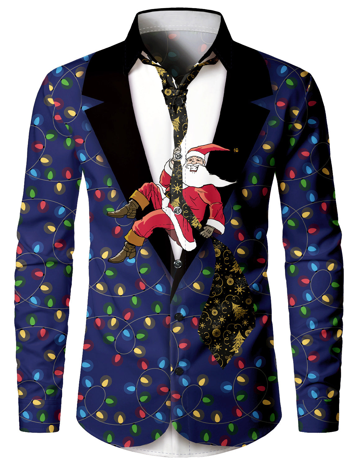 Men's Christmas Santa Claus Blue Festival Long Sleeve Shirt