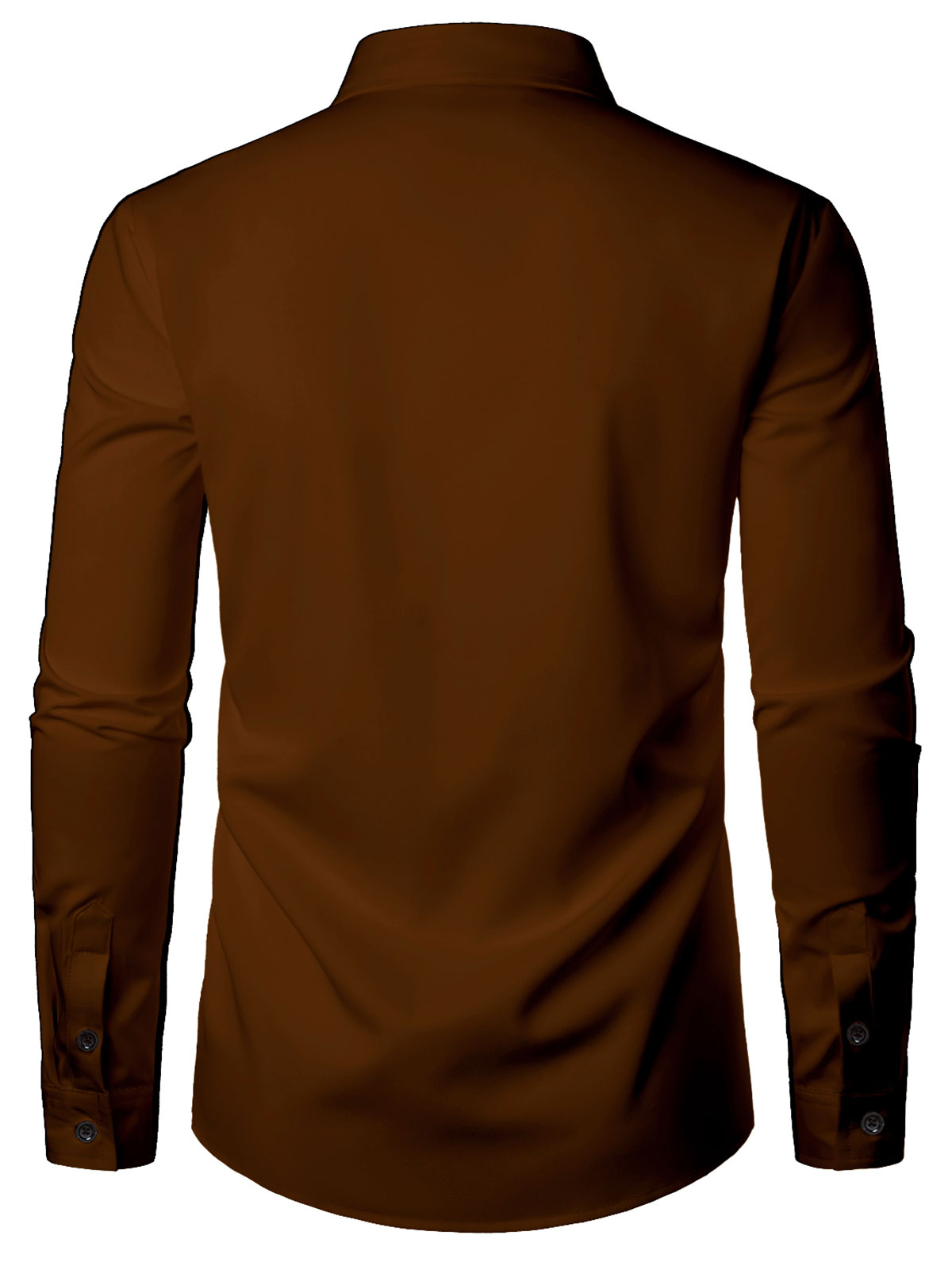 Men's Funny Holiday Vintage Christmas Print Brown Long Sleeve Shirt
