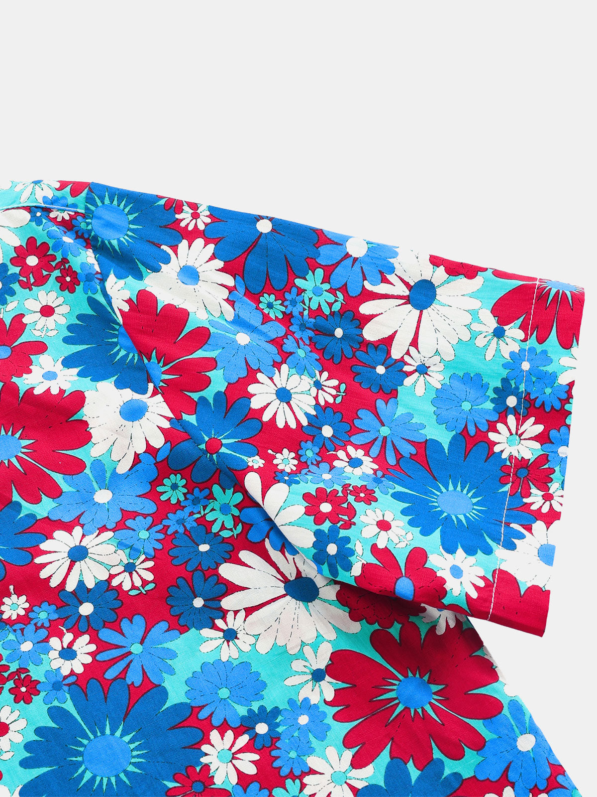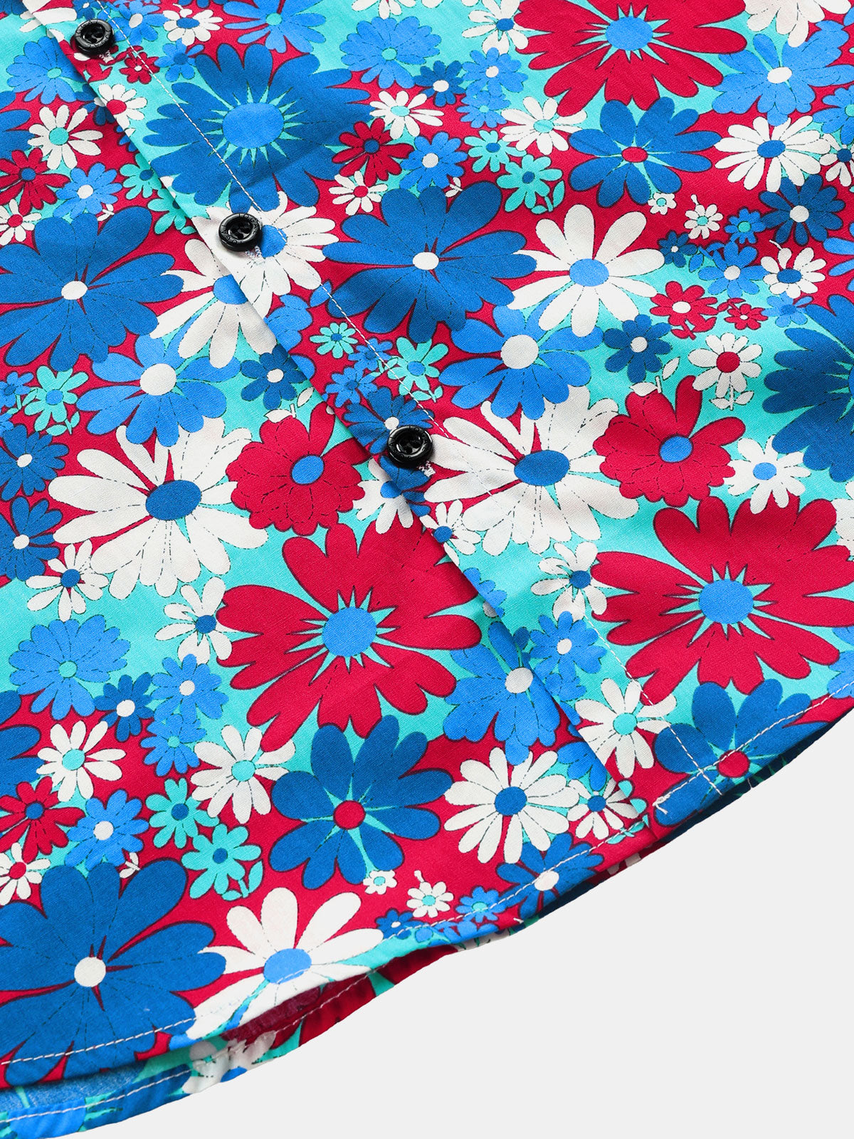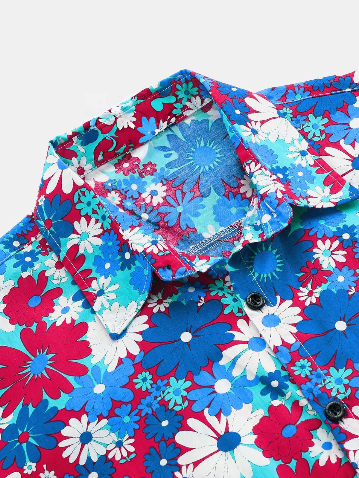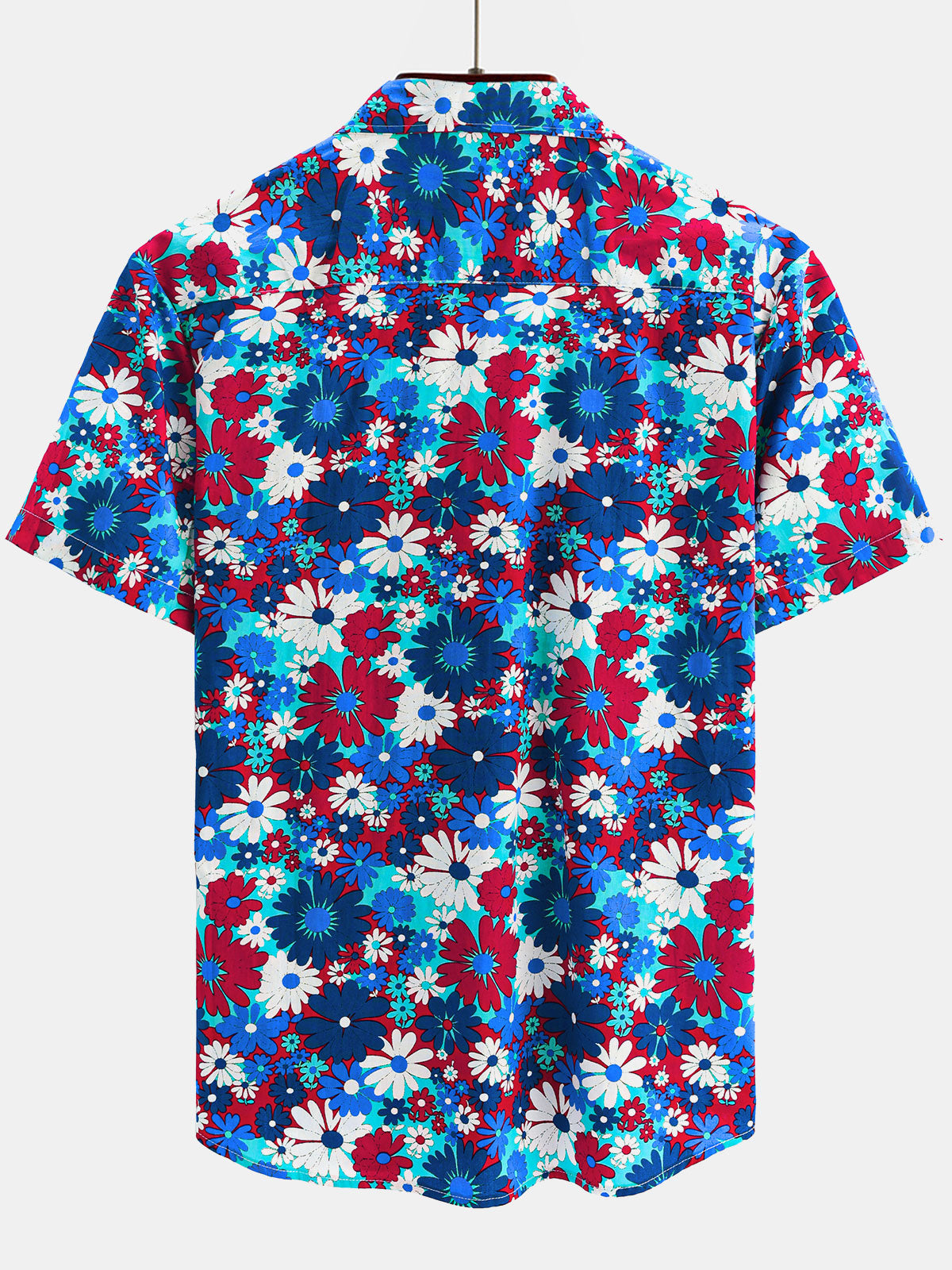 Men's Casual Cotton Floral Blue Short Sleeve Hawaiian Shirt