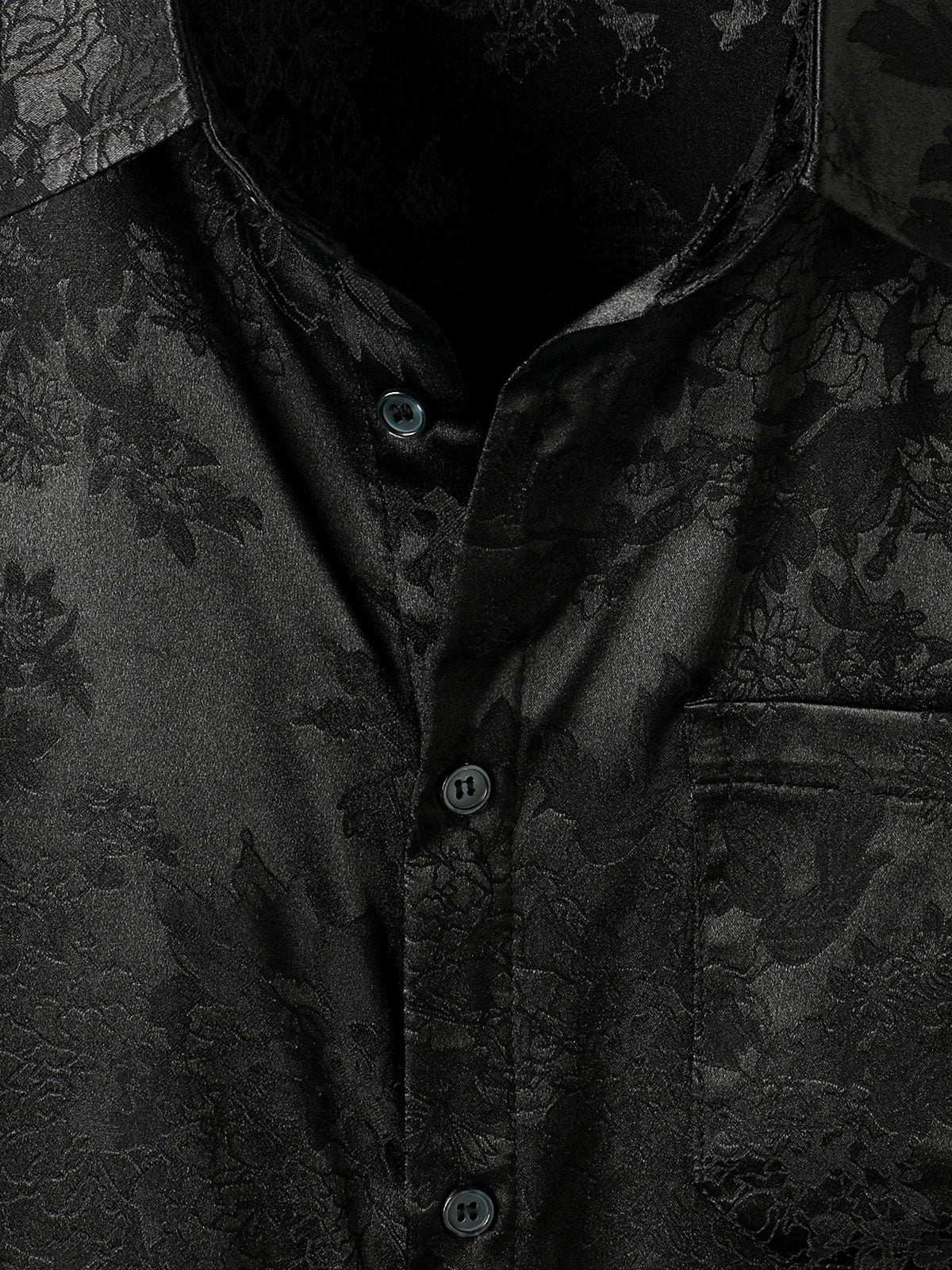 Regular Fit, chest pocket - Unique Design: Floral Jacquard, Satin texture, High Quality Smooth Fabric paired with same color buttons