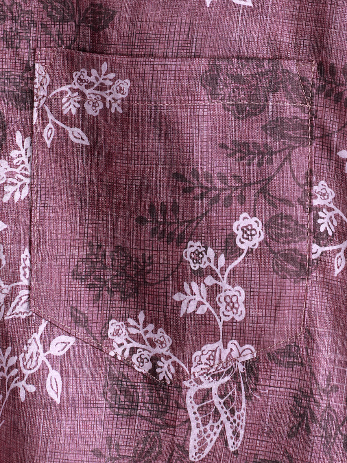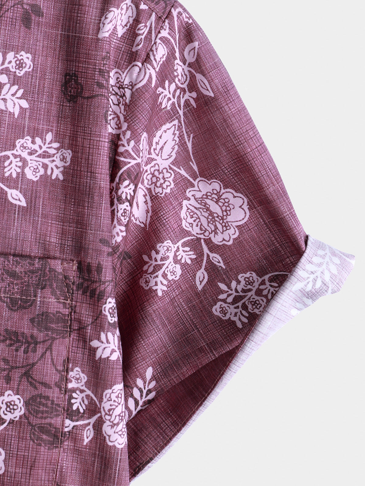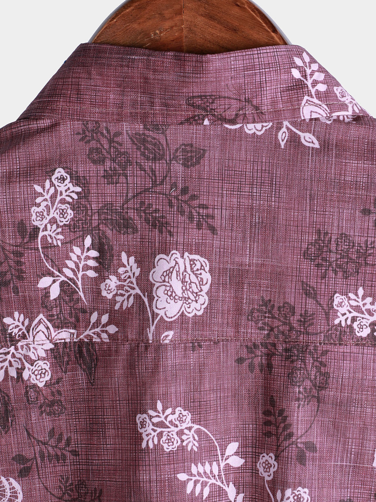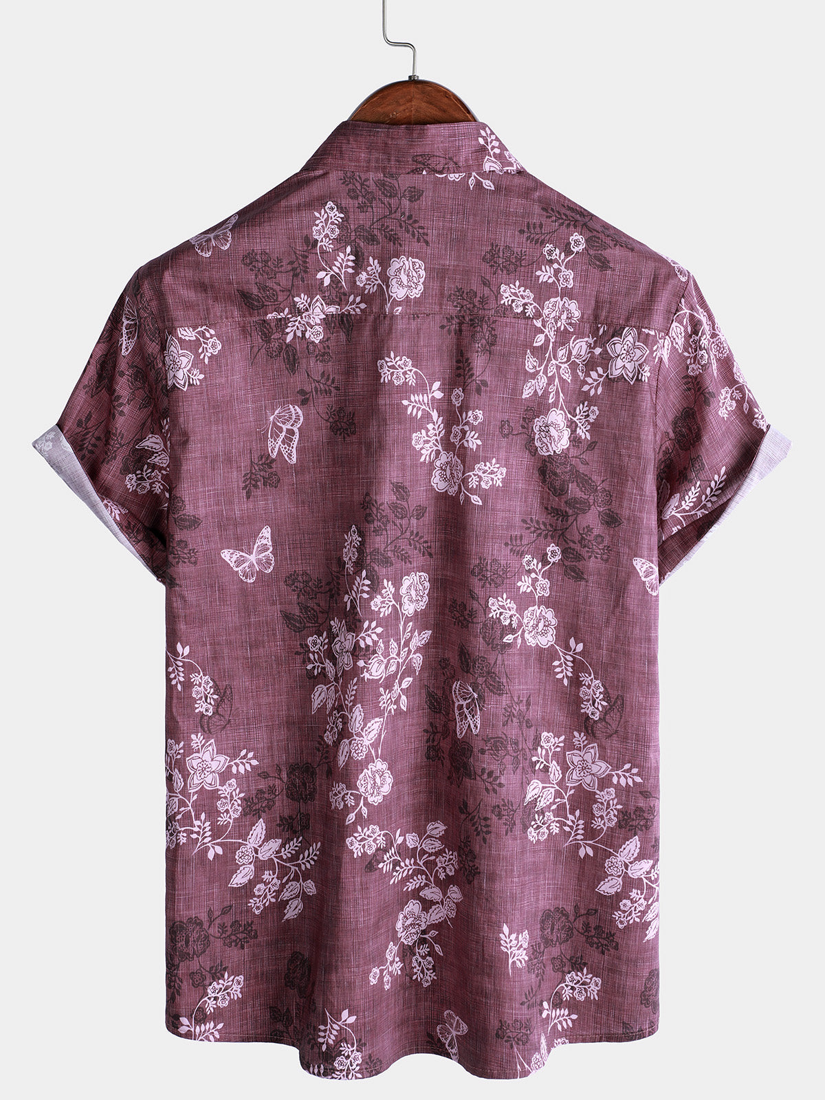 Men's Floral Print Hawaiian Button Holiday Short Sleeve Shirt