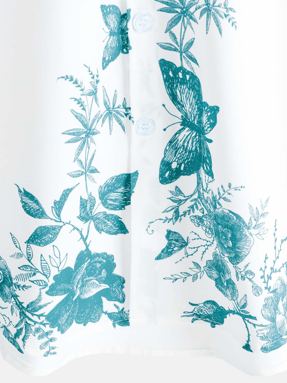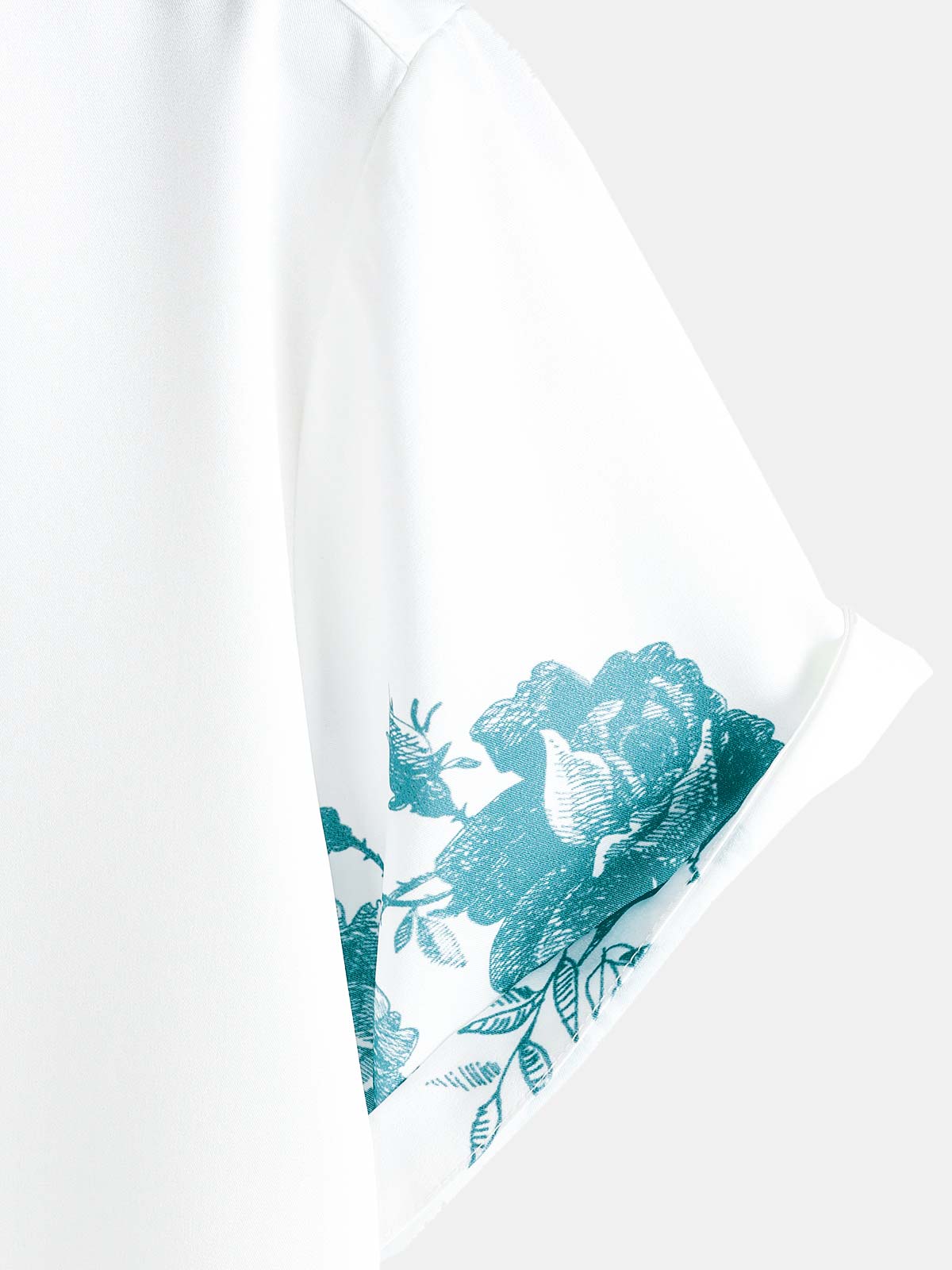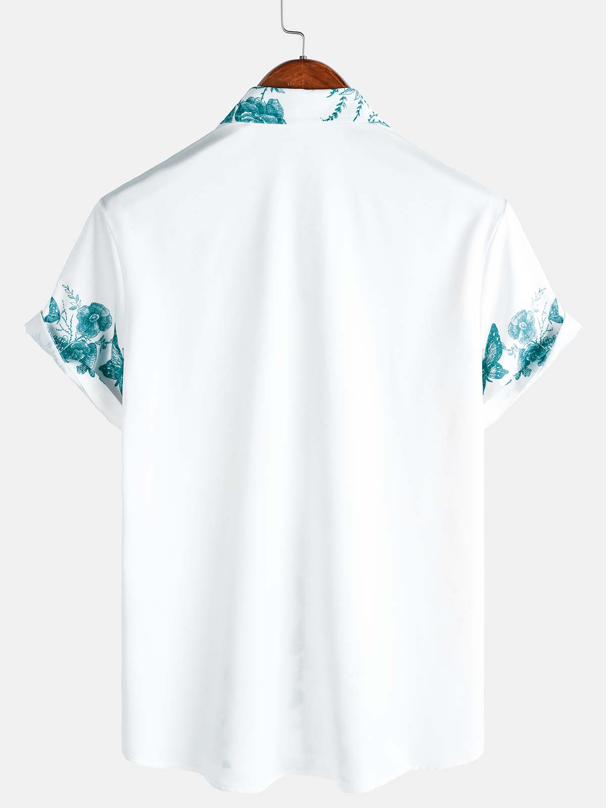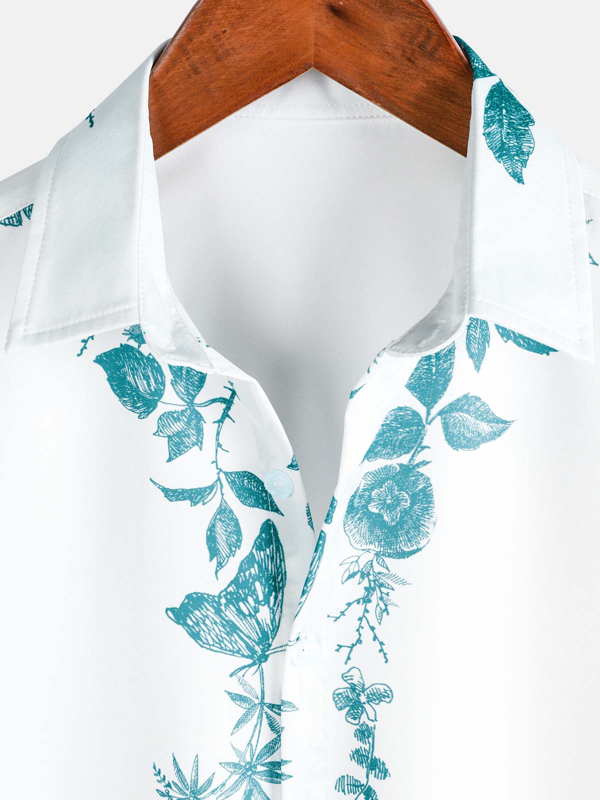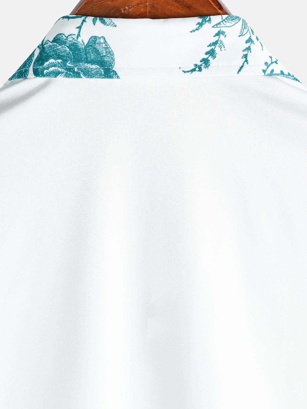 Men's Green Floral Print Hawaiian Button Up Summer Beach Casual Collar Short Sleeve Shirt