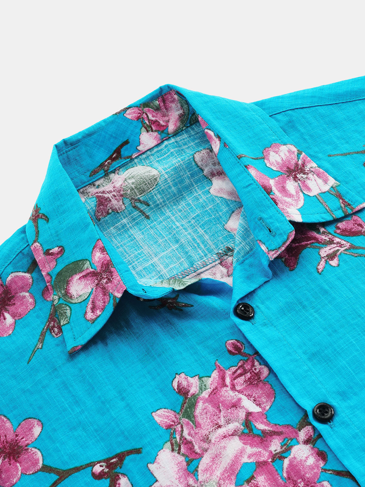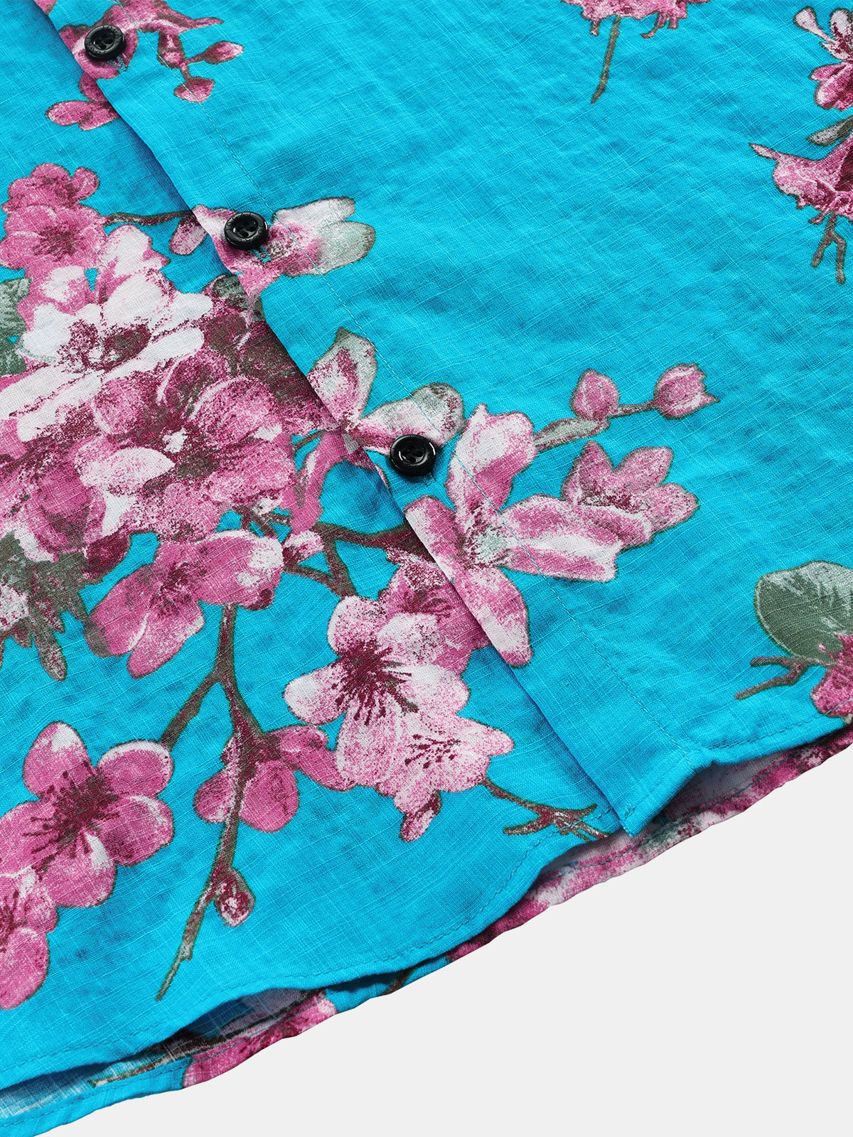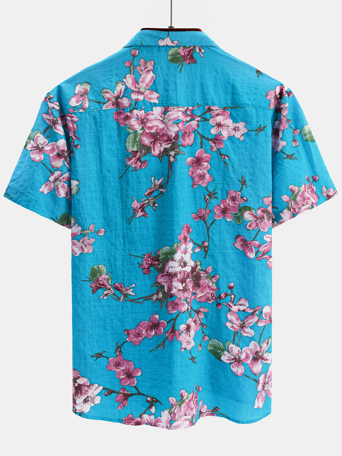 Men's Summer Breathable Cotton Floral Holiday Short Sleeve Hawaiian Shirt