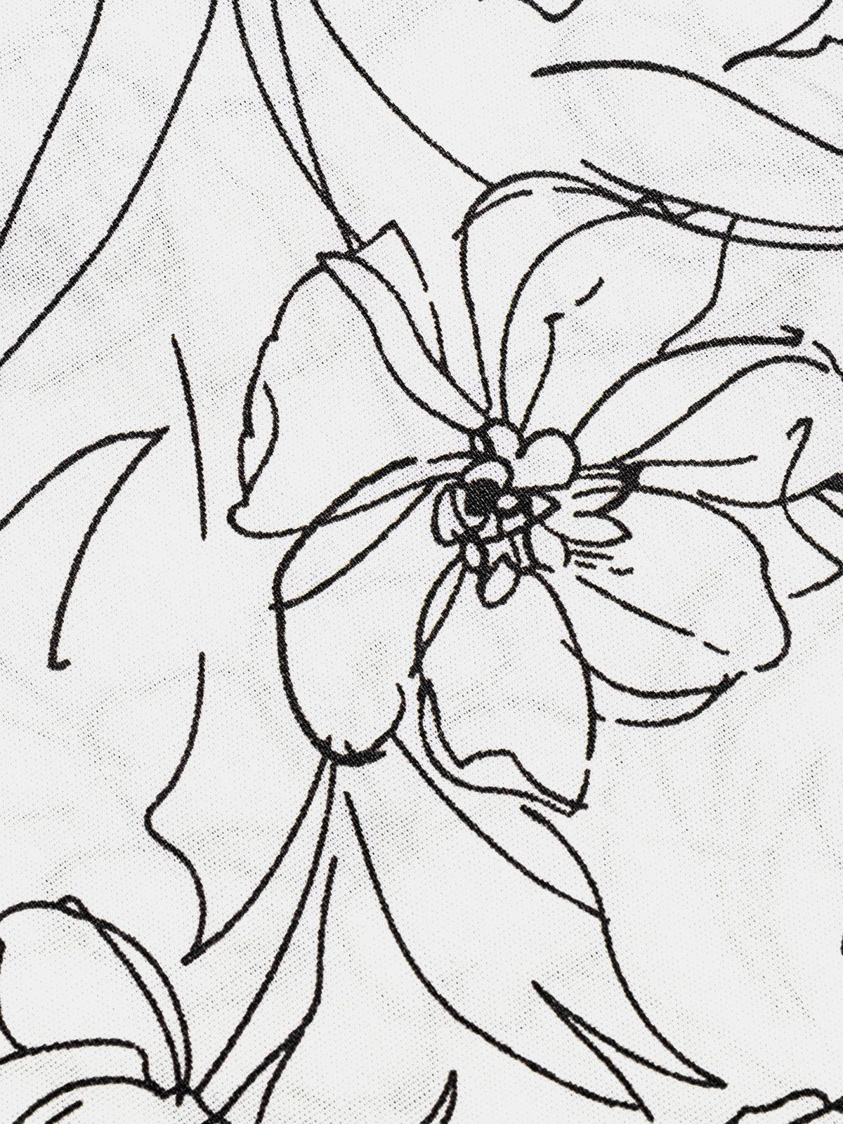 Men's Summer Casual Line Floral Print White Cotton Short Sleeve Shirt