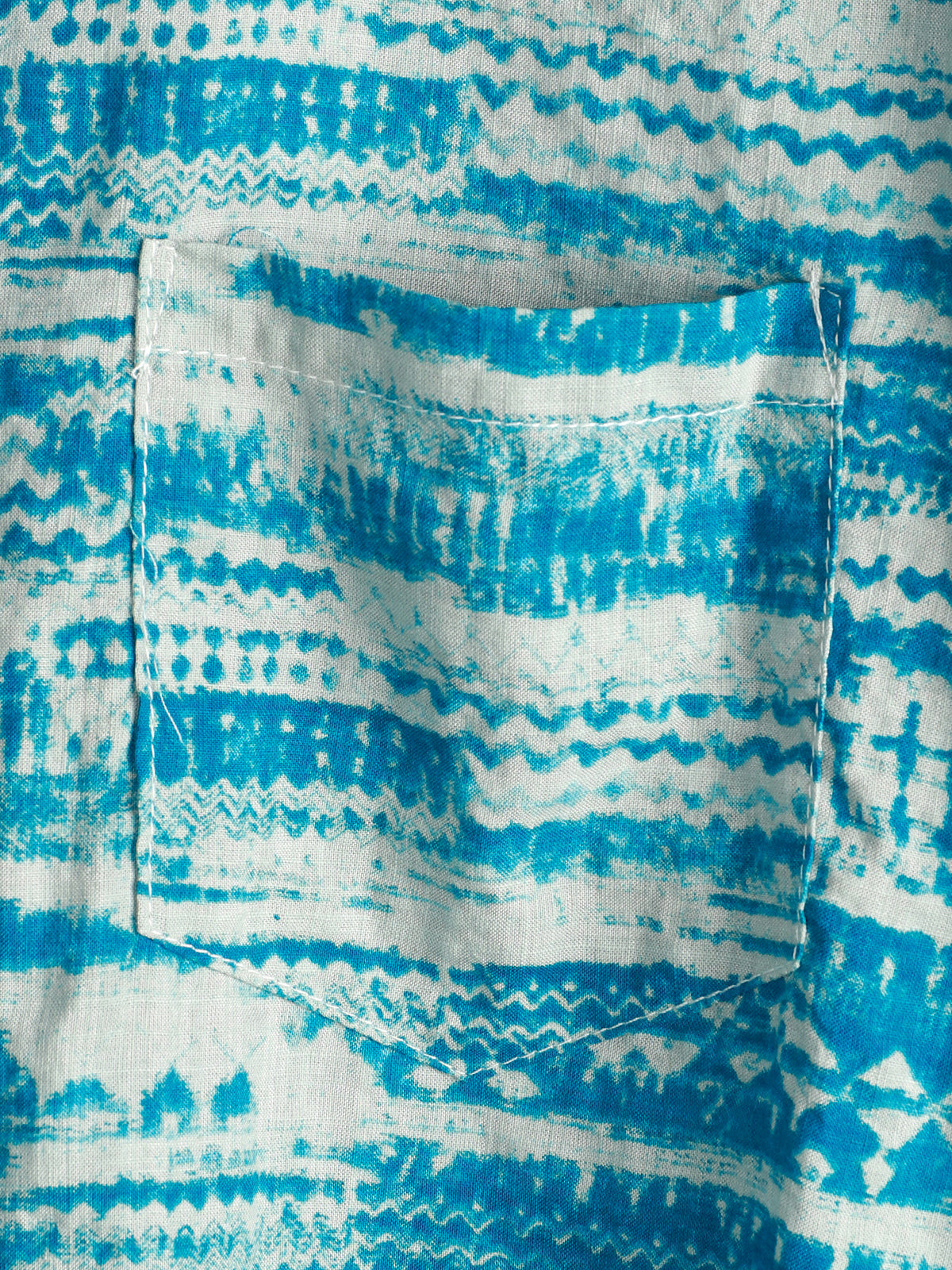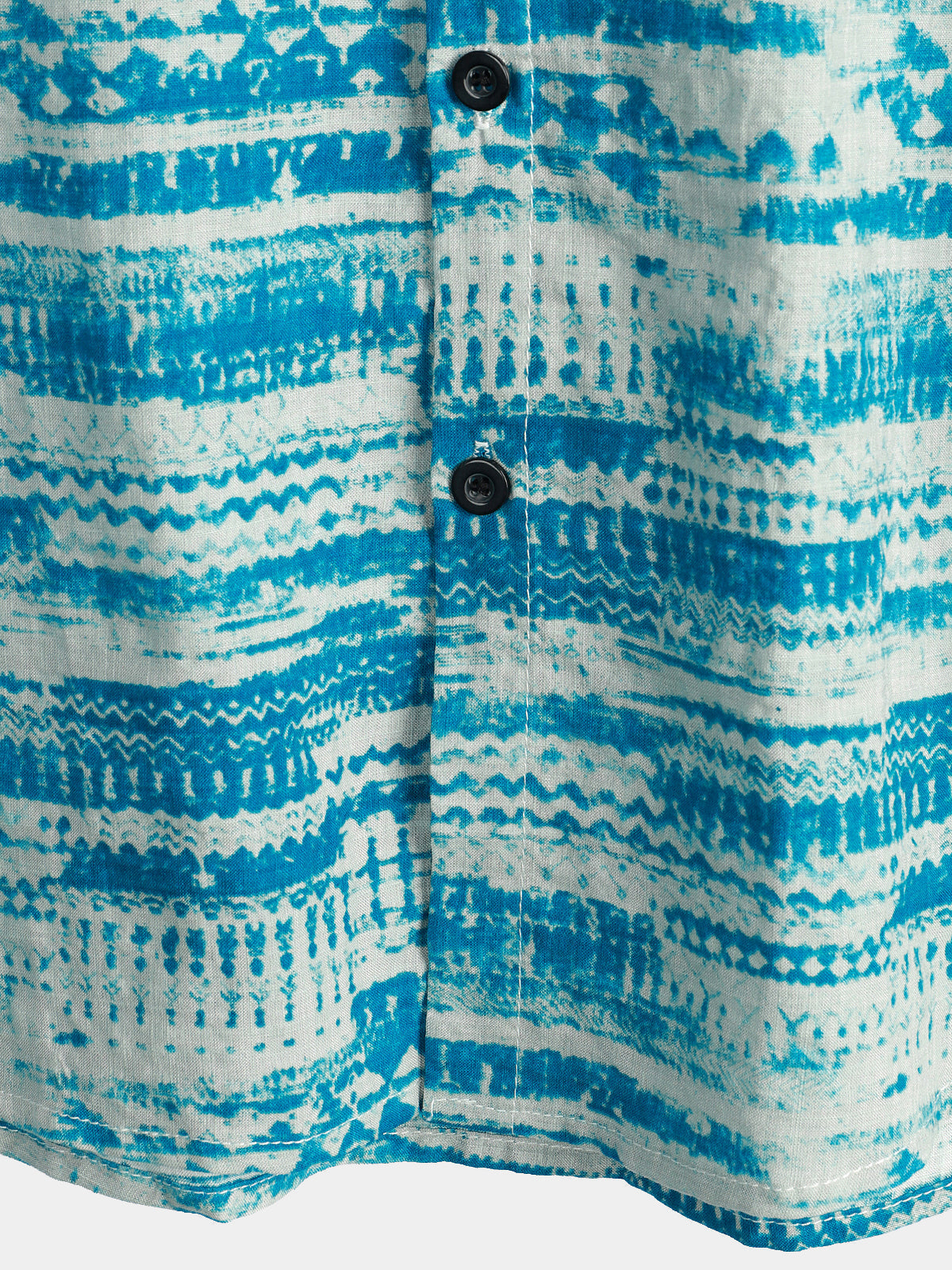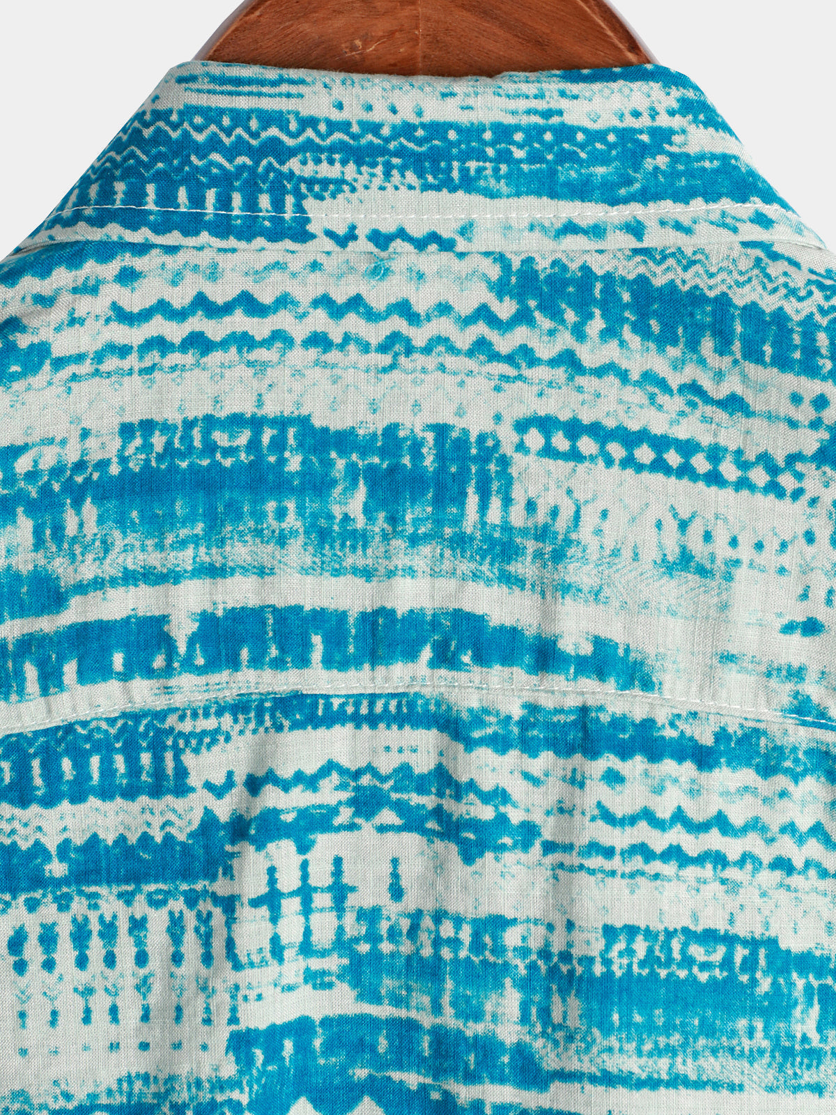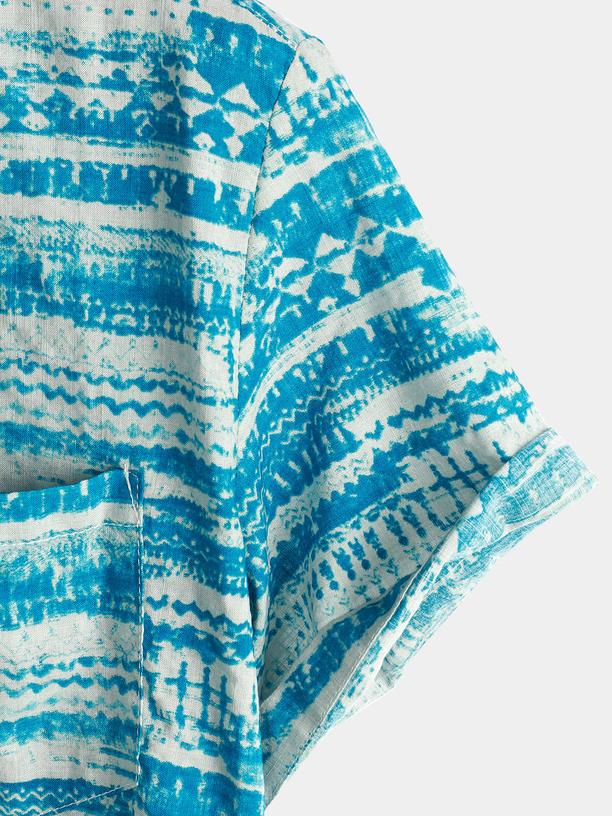 Men's Blue Vintage Holiday Beach Cruise Summer Pocket Short Sleeve Shirt