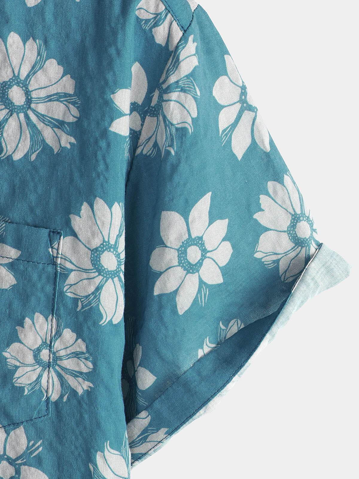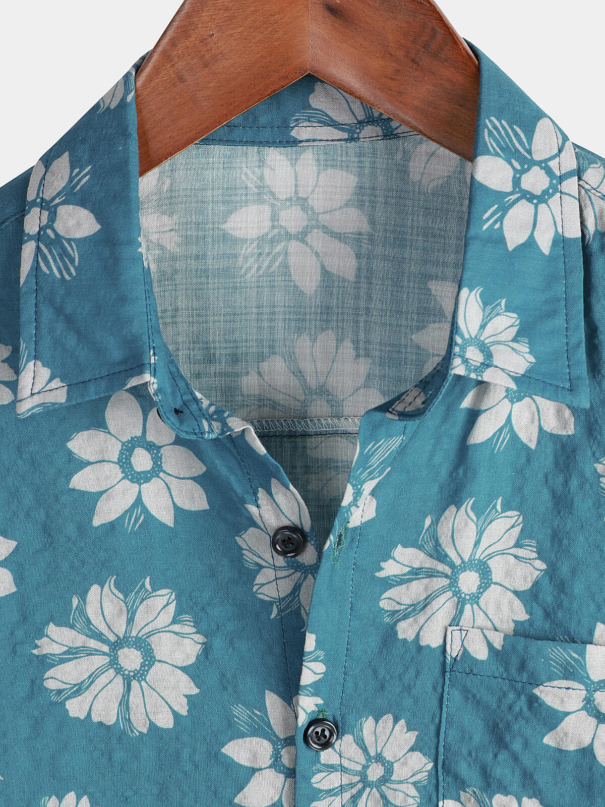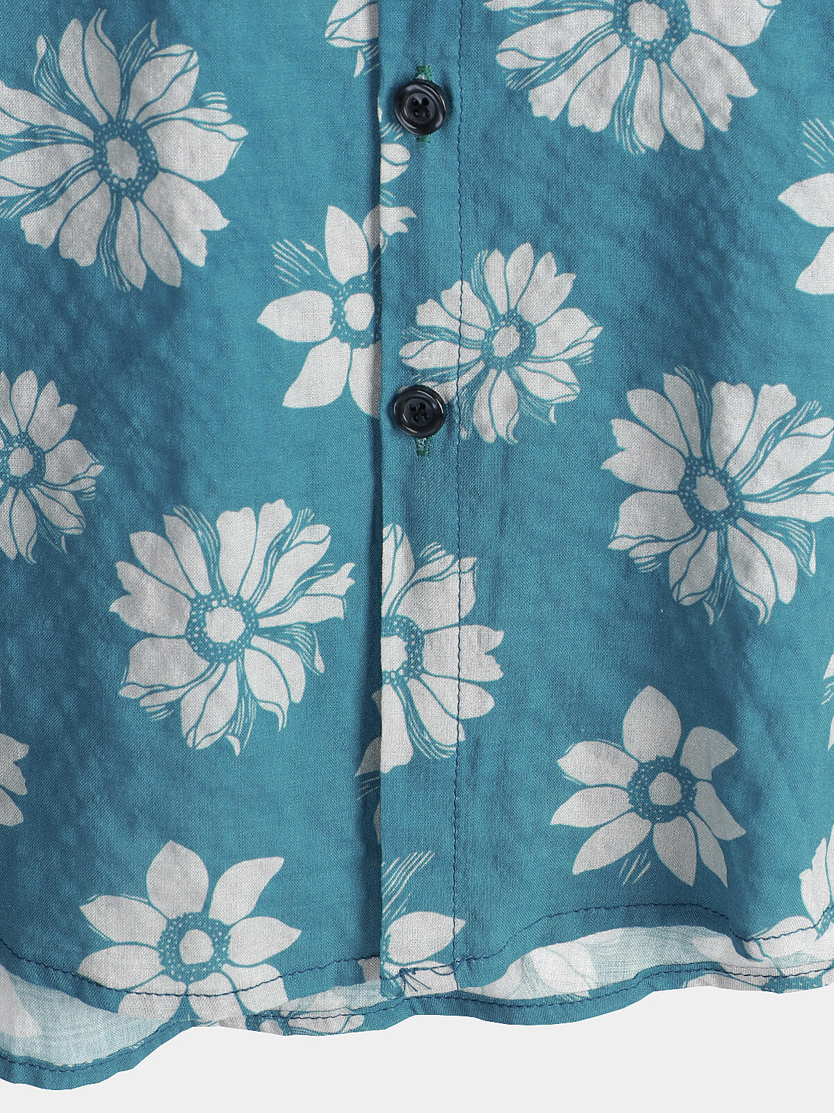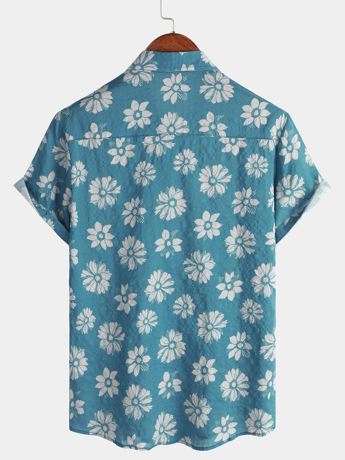Men's Blue Floral Short Sleeve Summer Cotton Hawaiian Button Up Shirt