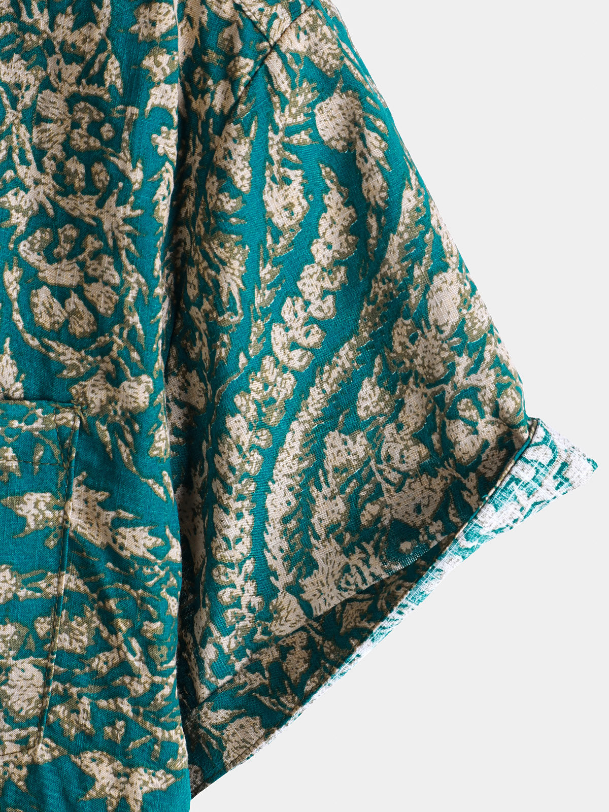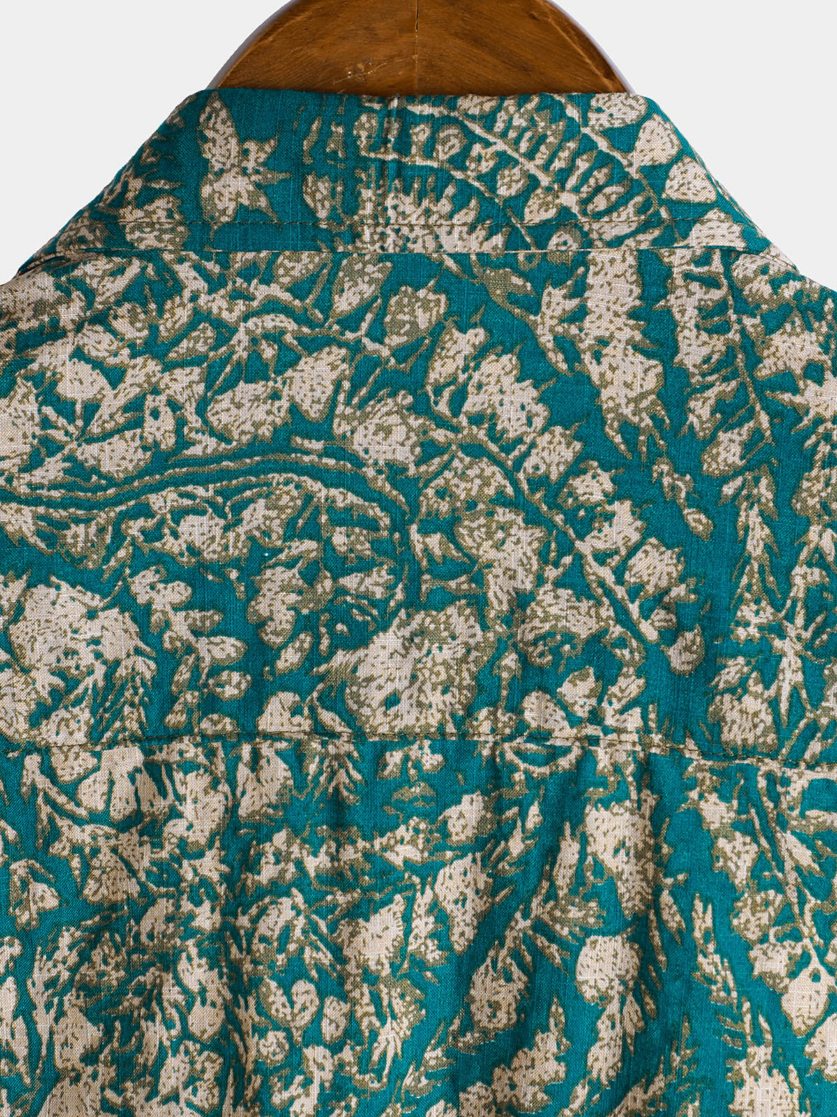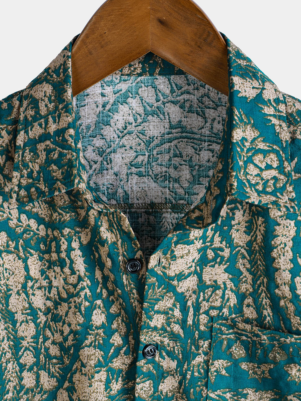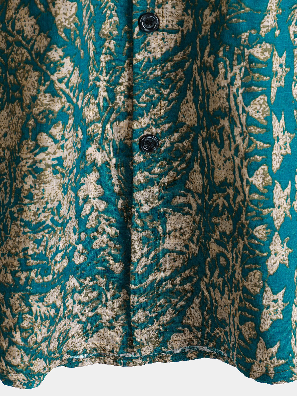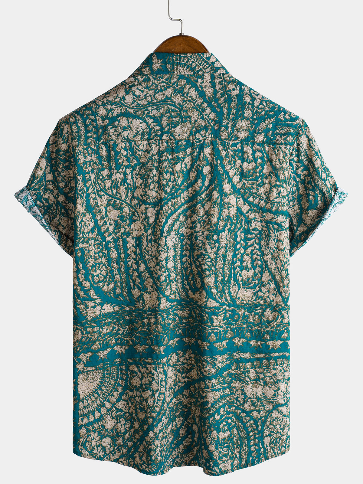 Men's Breathable Art Print Holiday Button Up Short Sleeve Shirt