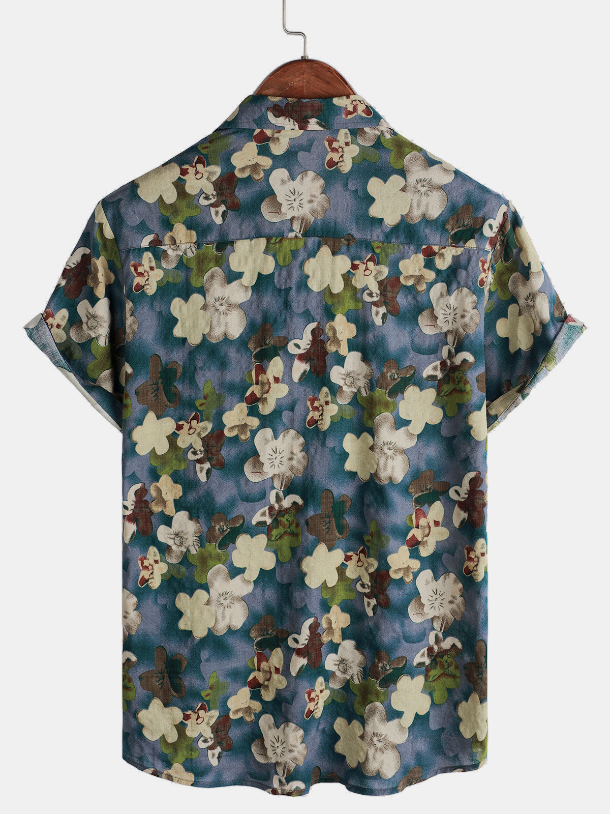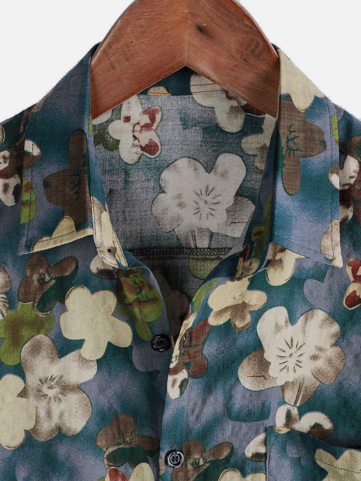 Men's Casual Floral Print Holiday Hawaiian Short Sleeve Shirt