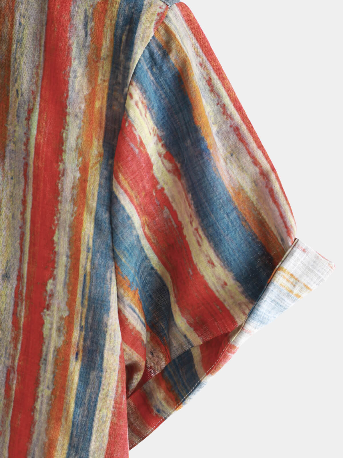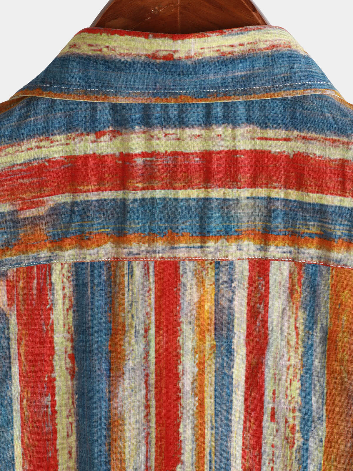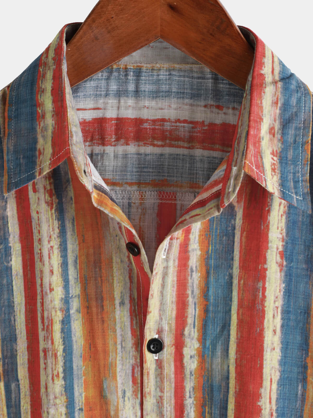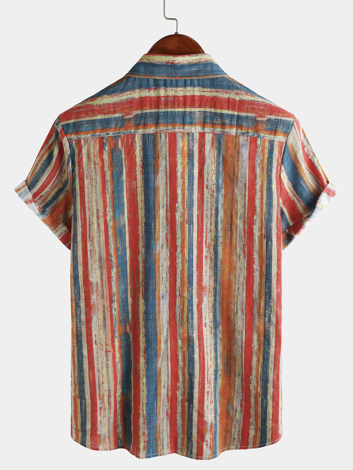Men's Casual Retro Multicolor Striped Holiday Button Up Short Sleeve Shirt