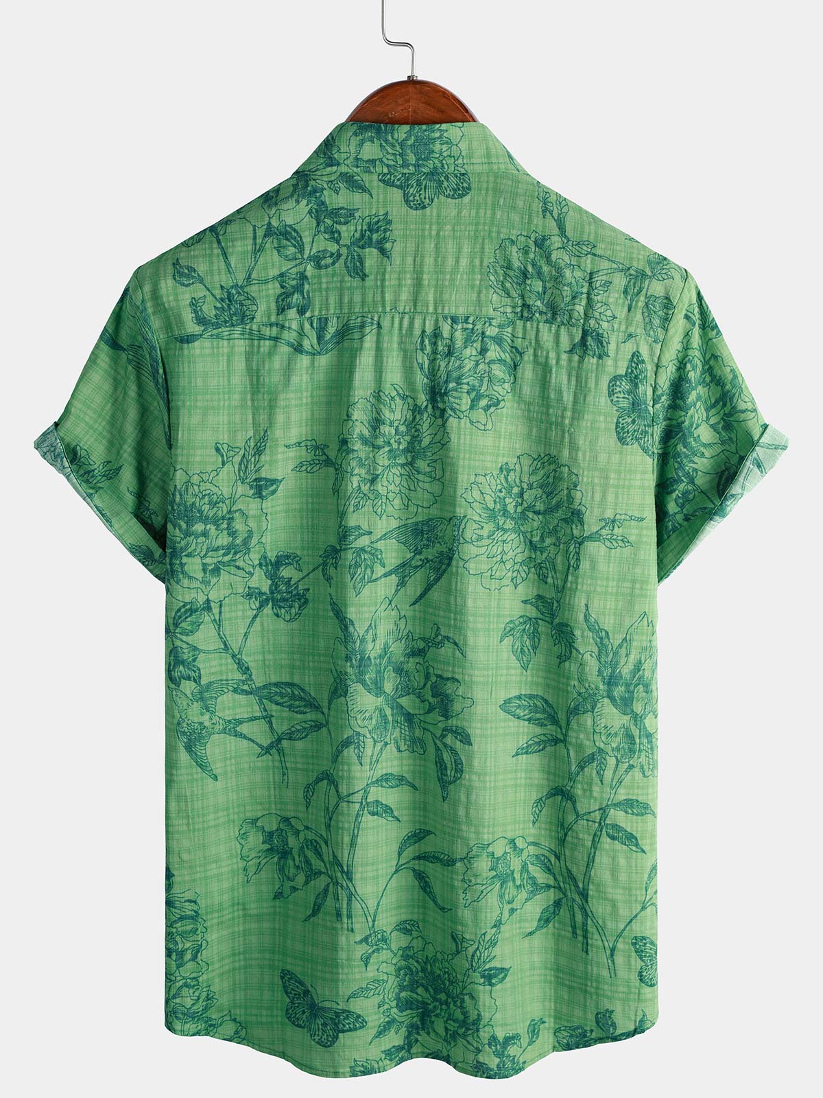 Men's Floral Print Breathable Short Sleeve Hawaiian Shirt